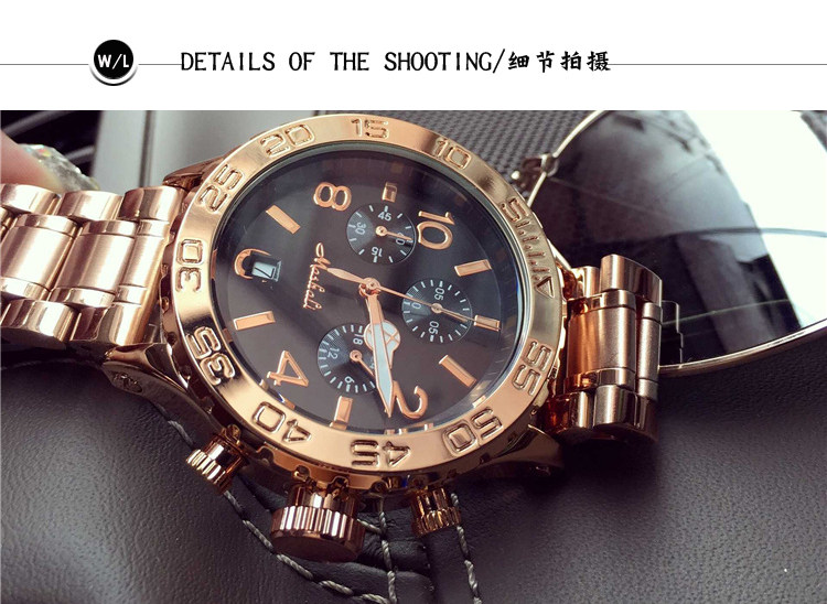 大表盘六针设计,带日历显示,很有特色,三色选择!