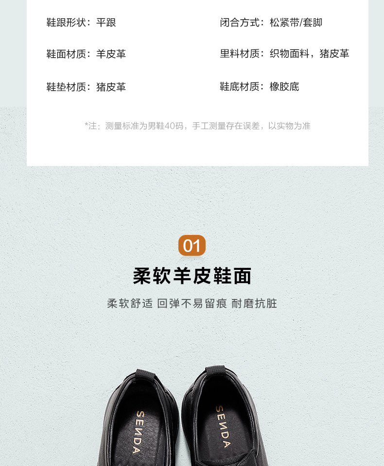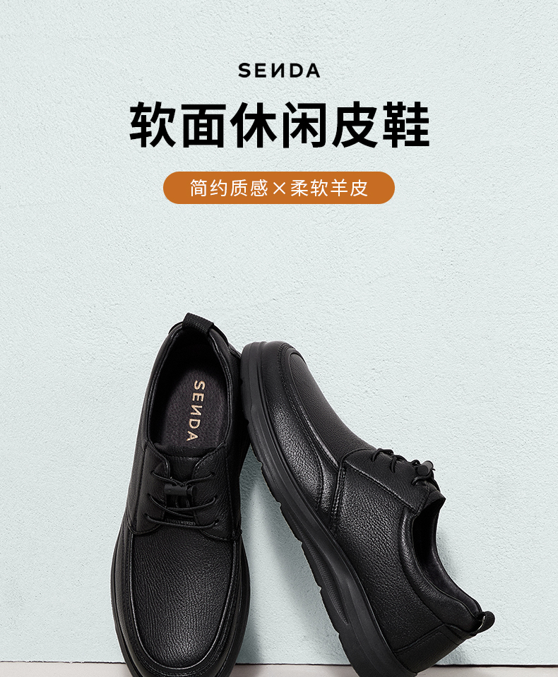 Senda Men's Casual Leather Shoes 2025 Soft Sheepskin Commuter Shoes Same Style as in the Mall Height-Increasing Genuine Leather Shoes 1Vd01Am5