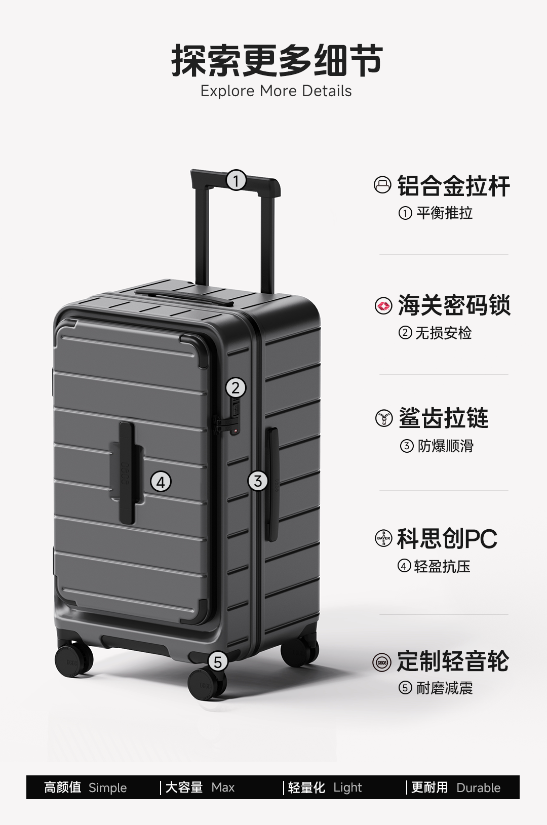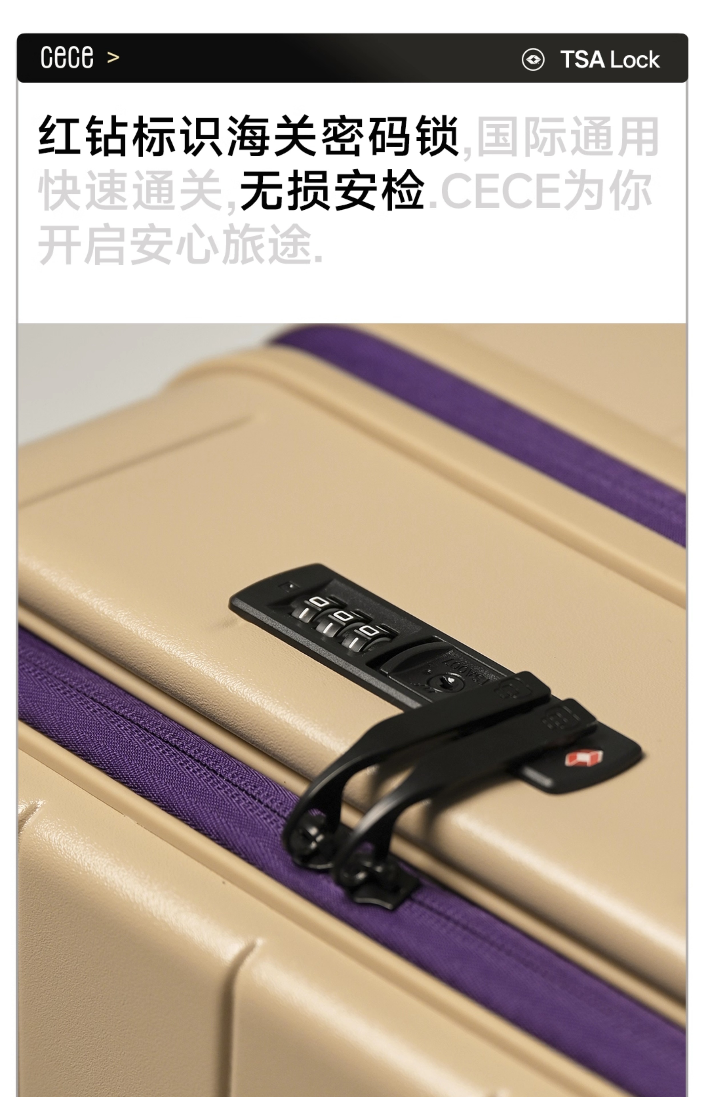 Cece Side-Opening Large-Capacity Deep Compartment Suitcase Trolley Case Travel Case Multifunctional Password Box Sturdy and Durable
