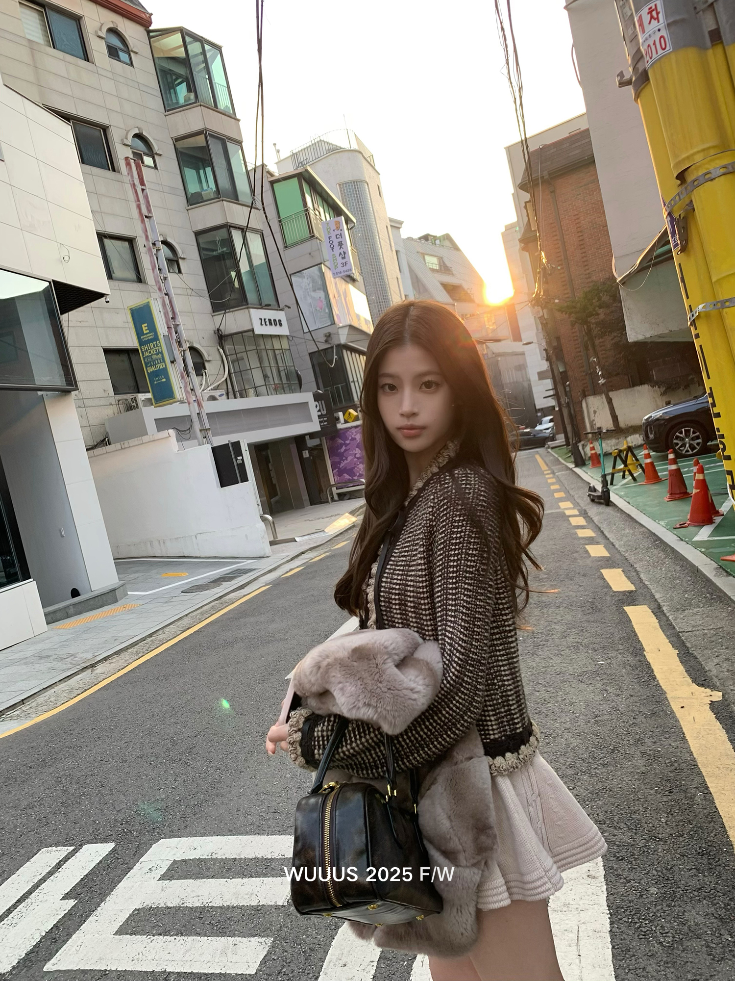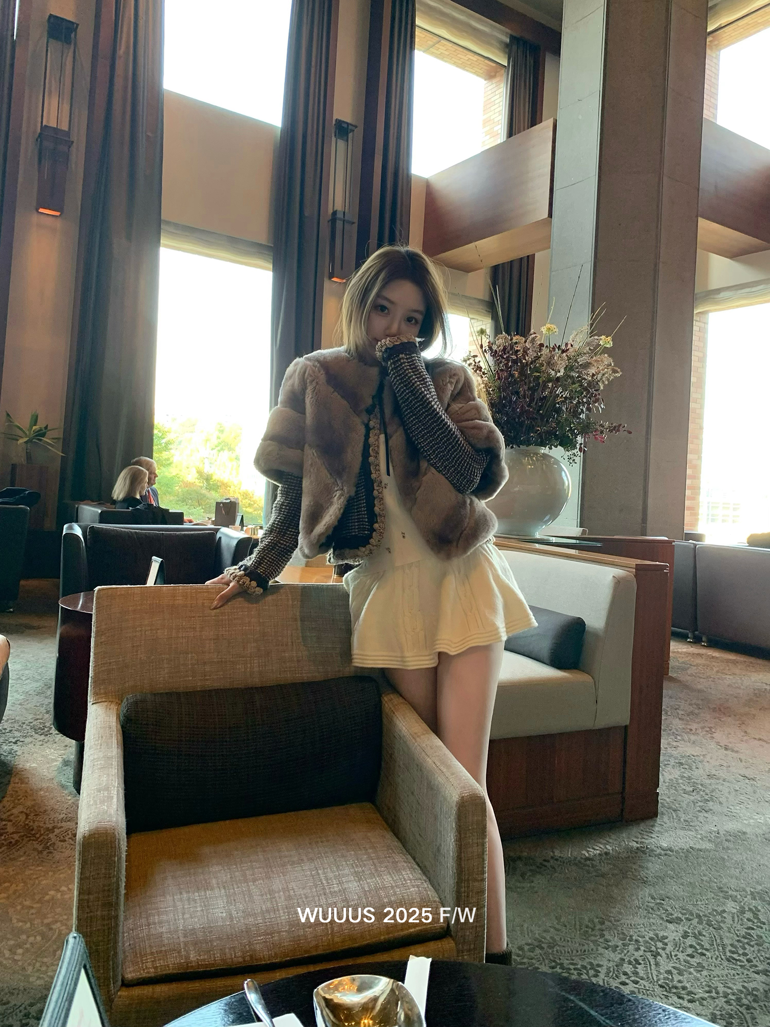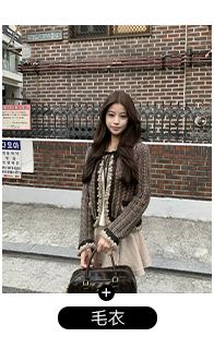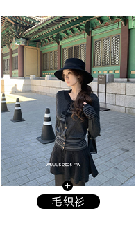 裙摆边缘采用多横条毛织纹理收边 上身灵动又轻盈