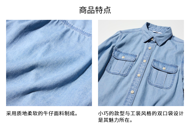 Uniqlo Women's Denim Work Shirt/Long-Sleeved Washed Product Jacket for Commuting and Casual Wear 480004
