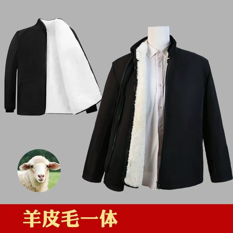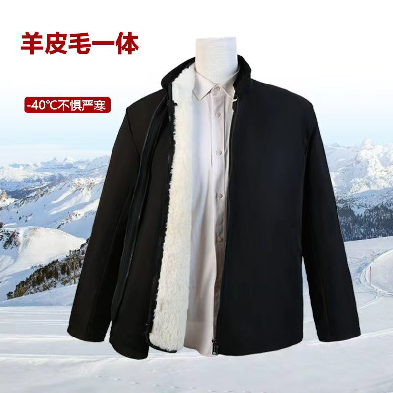 Sheepskin Coat with Integrated Fur, Shearling Leather Jacket, Thickened and Warm for Winter, Unisex Wool Lining, Whole Sheepskin Cotton Coat
