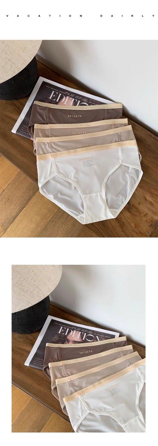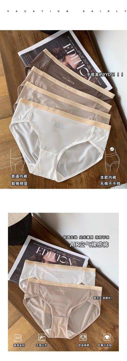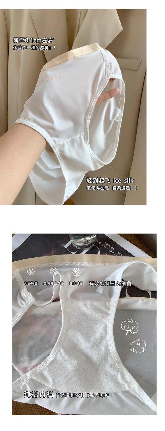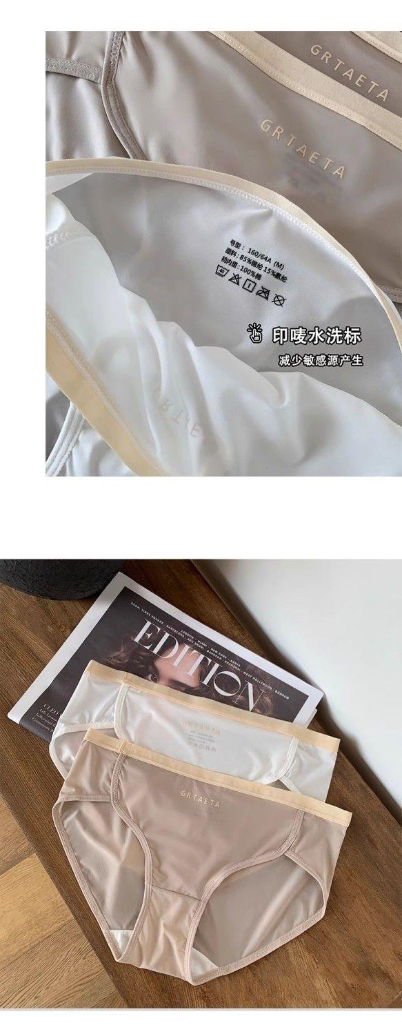 Girls' High-Cut Ice Silk Women's Panties, Nude-Feel Triangle Briefs, Mid-Waist, Youthful, Sexy, Simple Style, Popular Item
