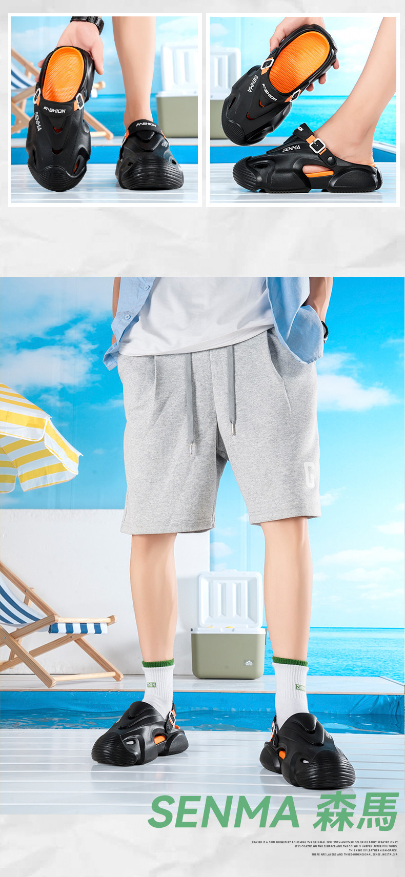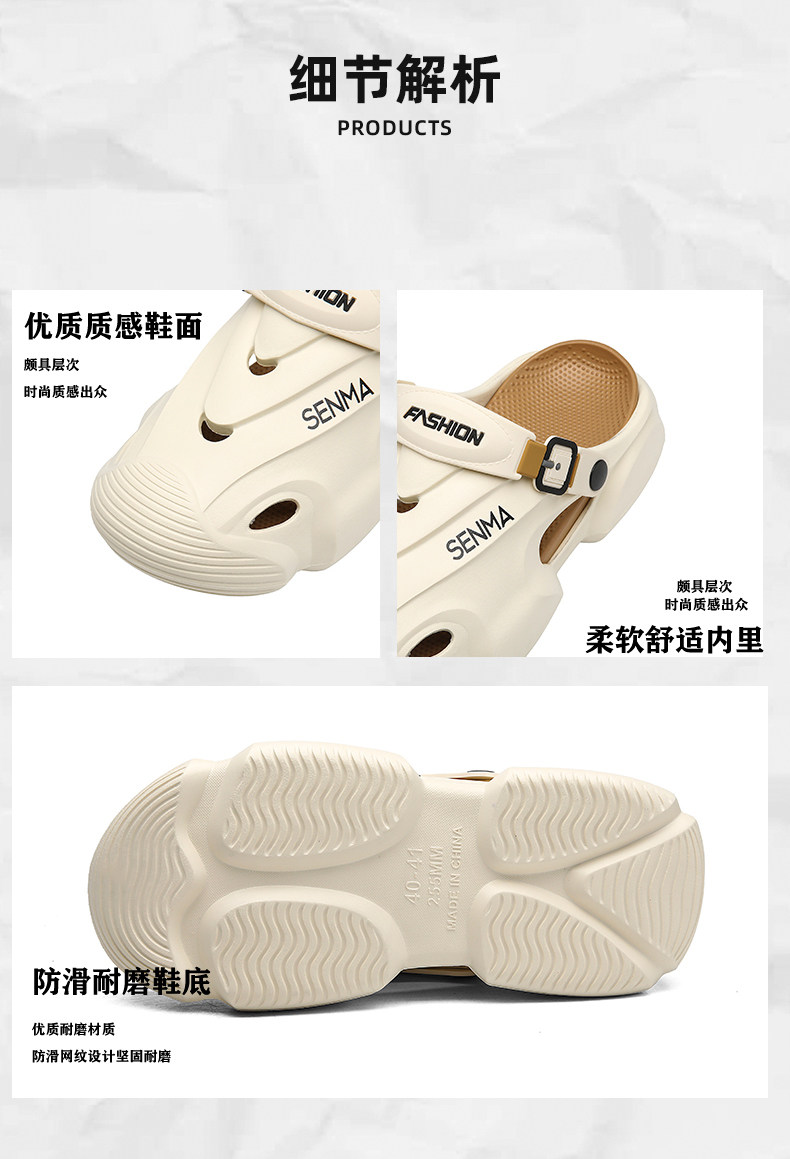 Semir Men's Summer Sports Soft-Soled Clogs soft sole Thick-Soled Non-Slip Anti-Odor Sandals Dual-Use Closed-Toe Beach Shoes