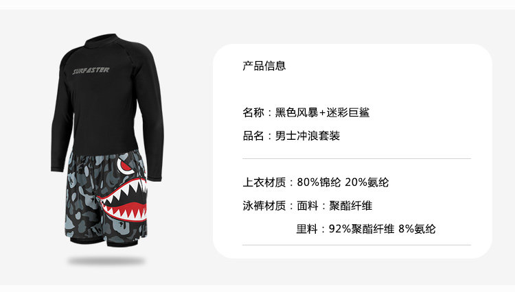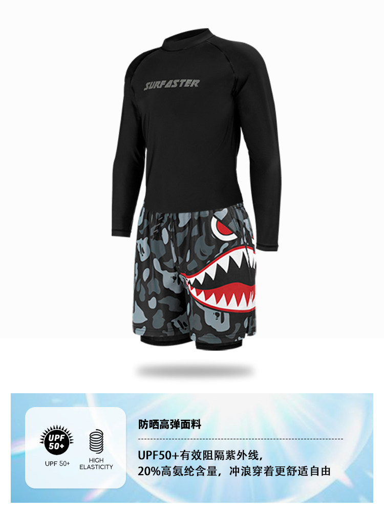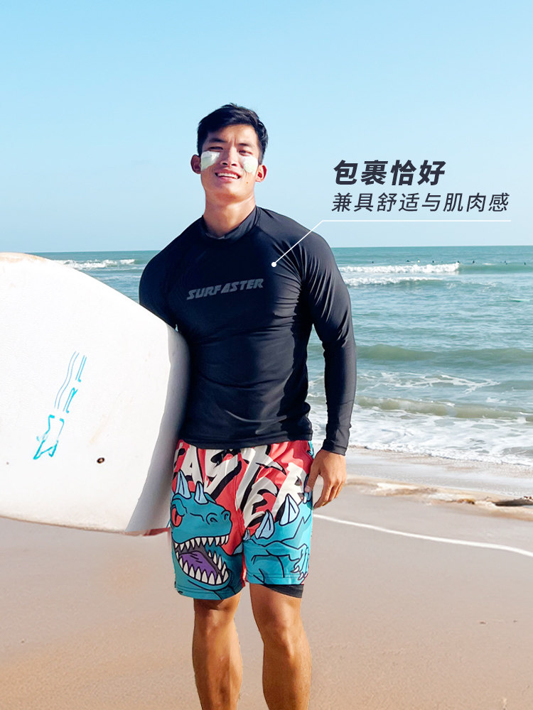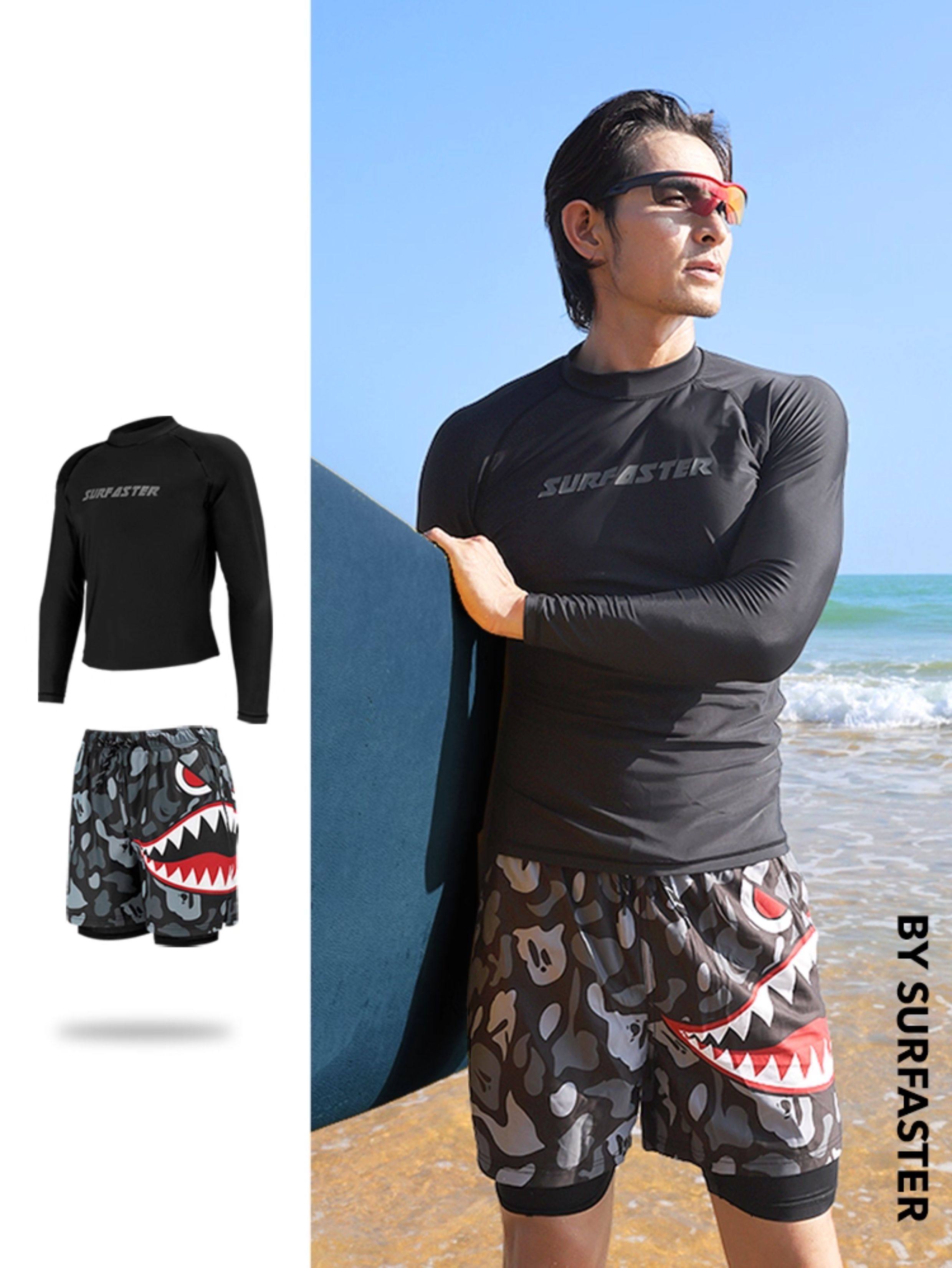 Speedwave Men's Swimsuit, Sun Protection Surfing Suit, Swimming Trunks, Quick-Drying Long-Sleeved Top, Beach Suit