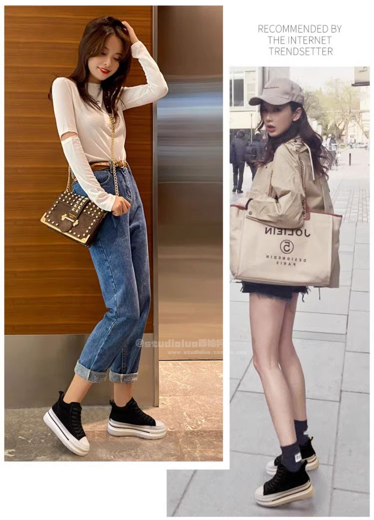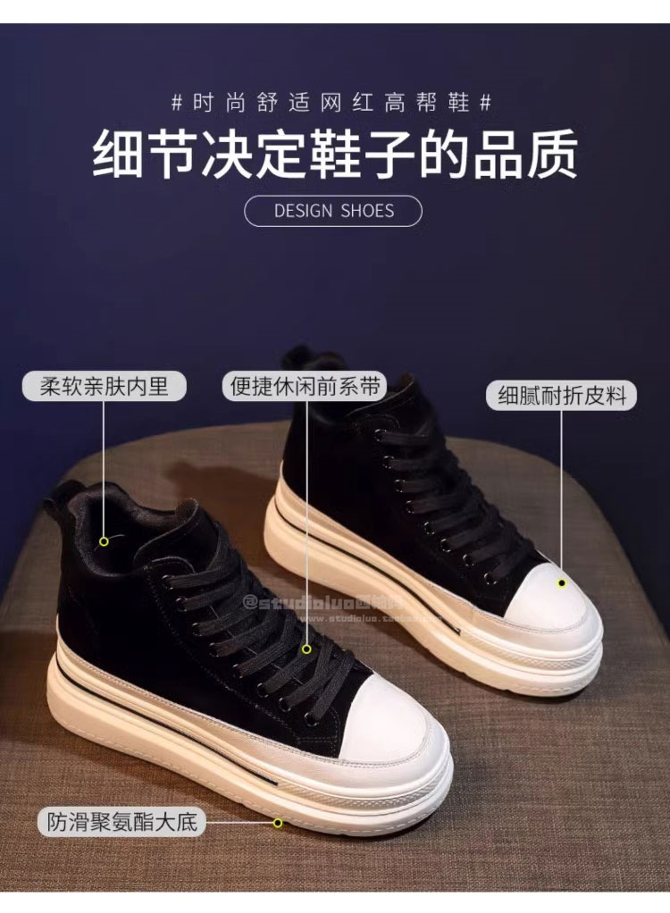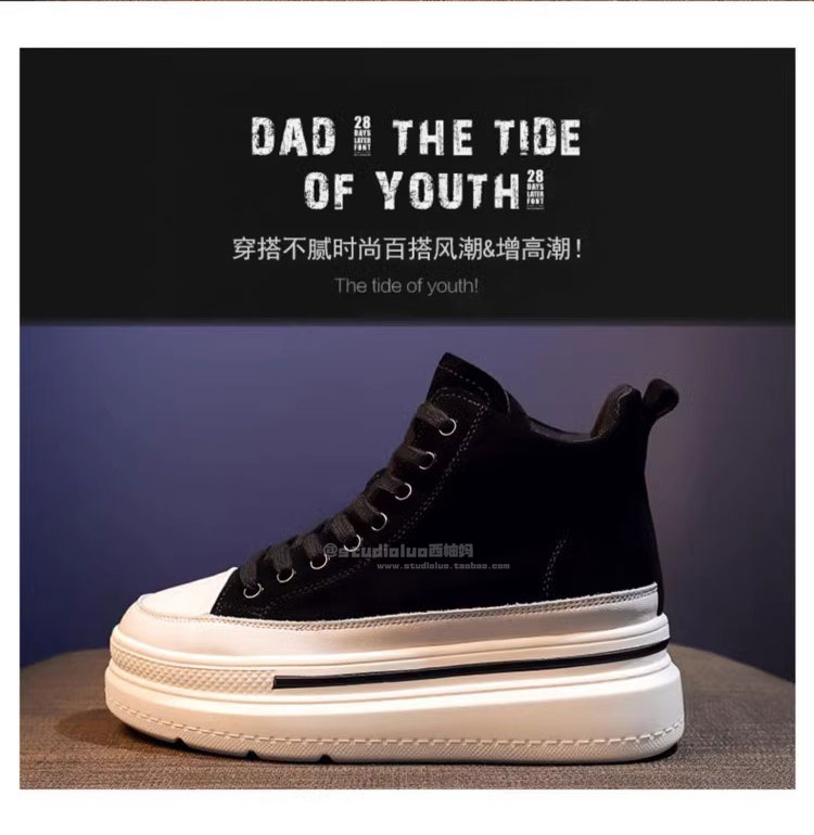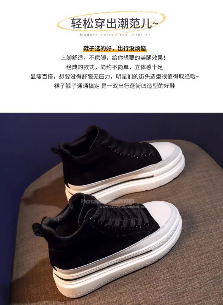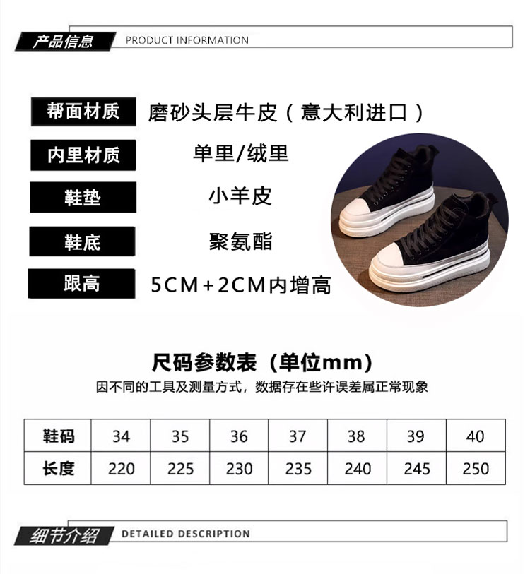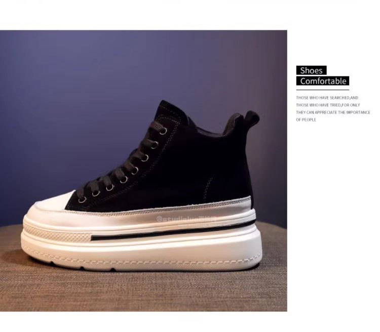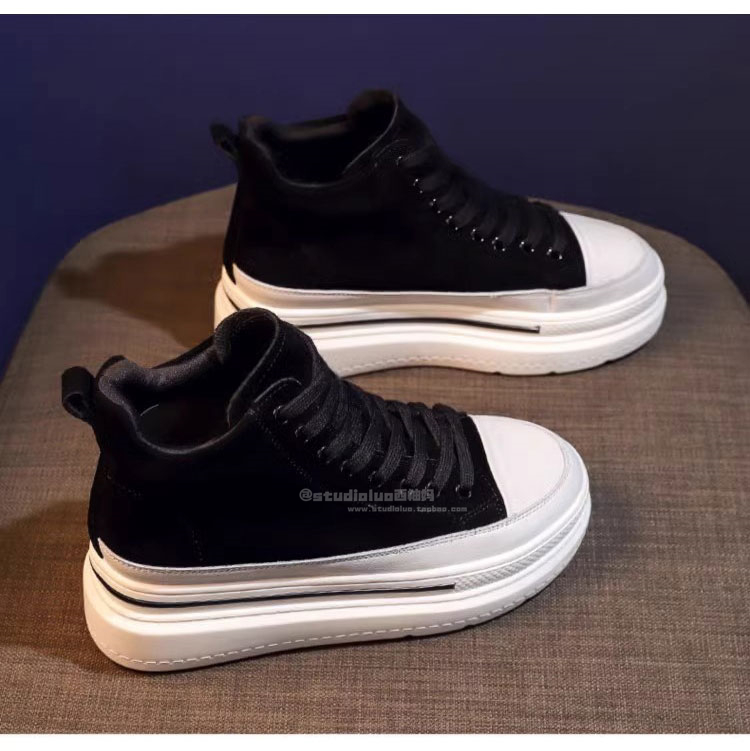 Sanli Fashion High-Top Lace-Up Sneakers for Women 2025 Spring and Autumn New Genuine Leather Korean Style Height-Increasing Casual Shoes Thick-Soled Single Shoes
