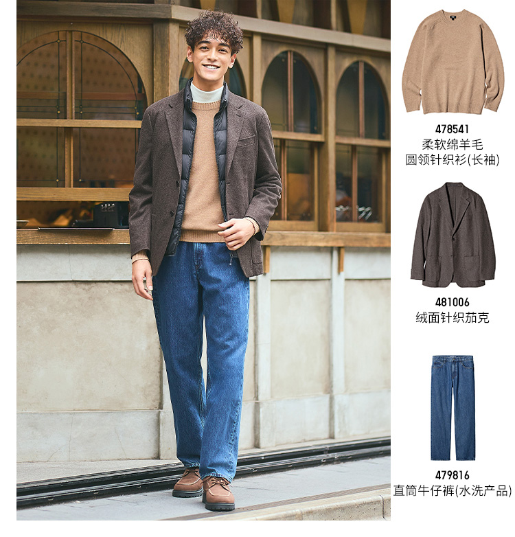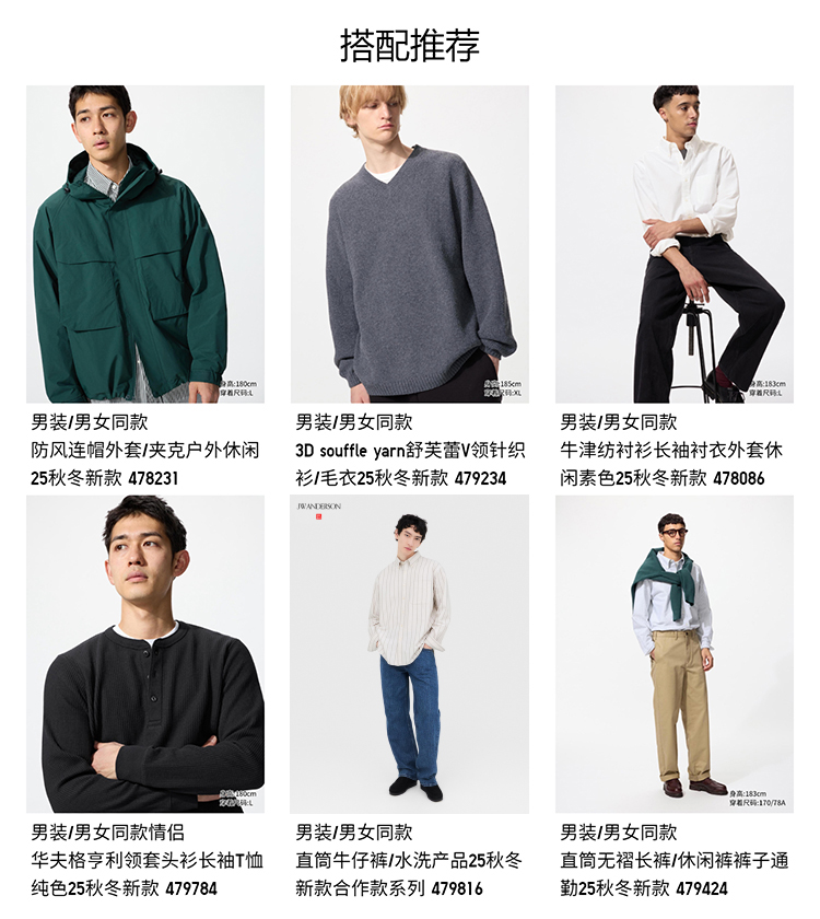 Uniqlo Men's and Women's Soft Sheep Wool Crew Neck Knitwear/Long-Sleeved Sweater 25 New Styles 478541