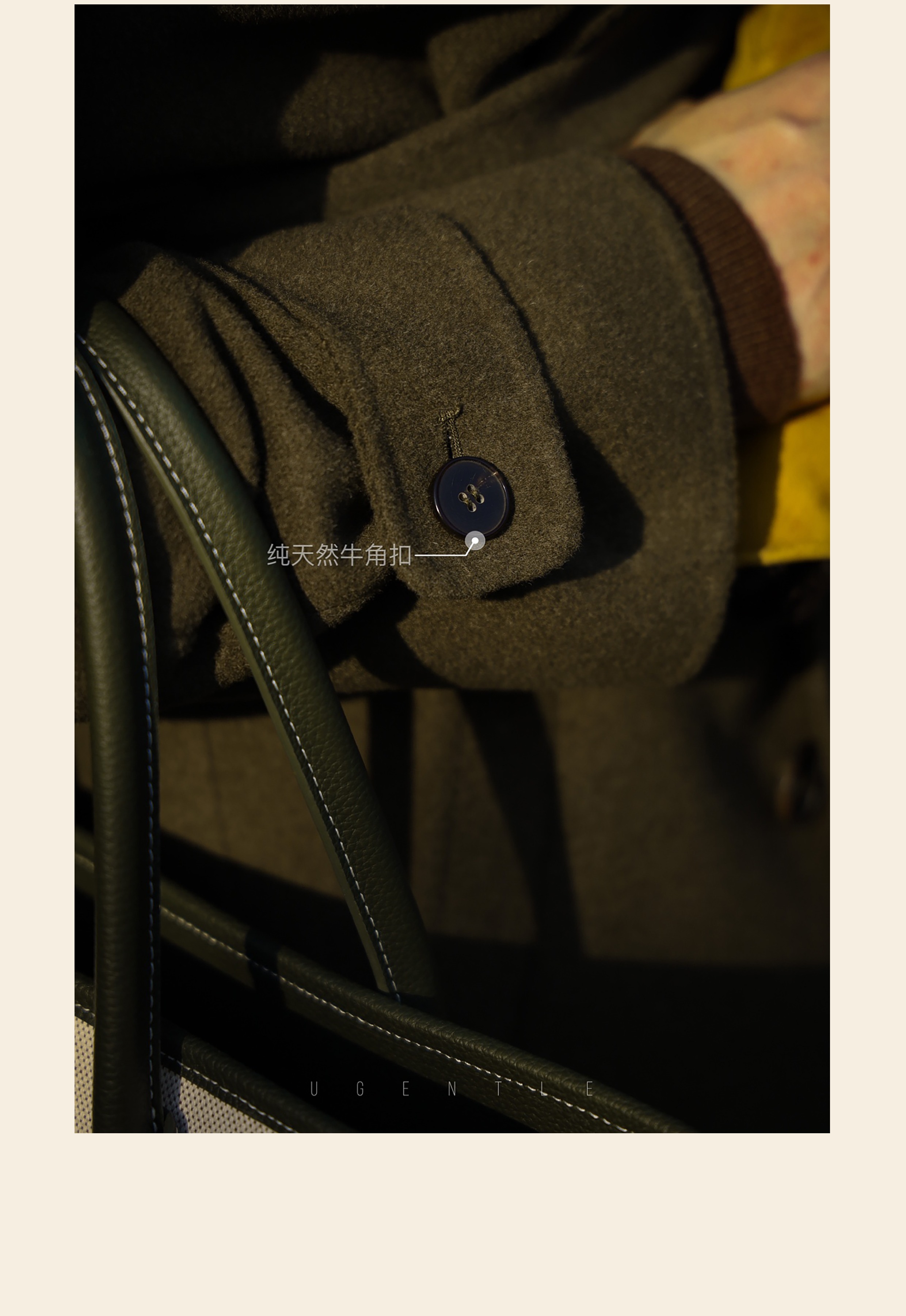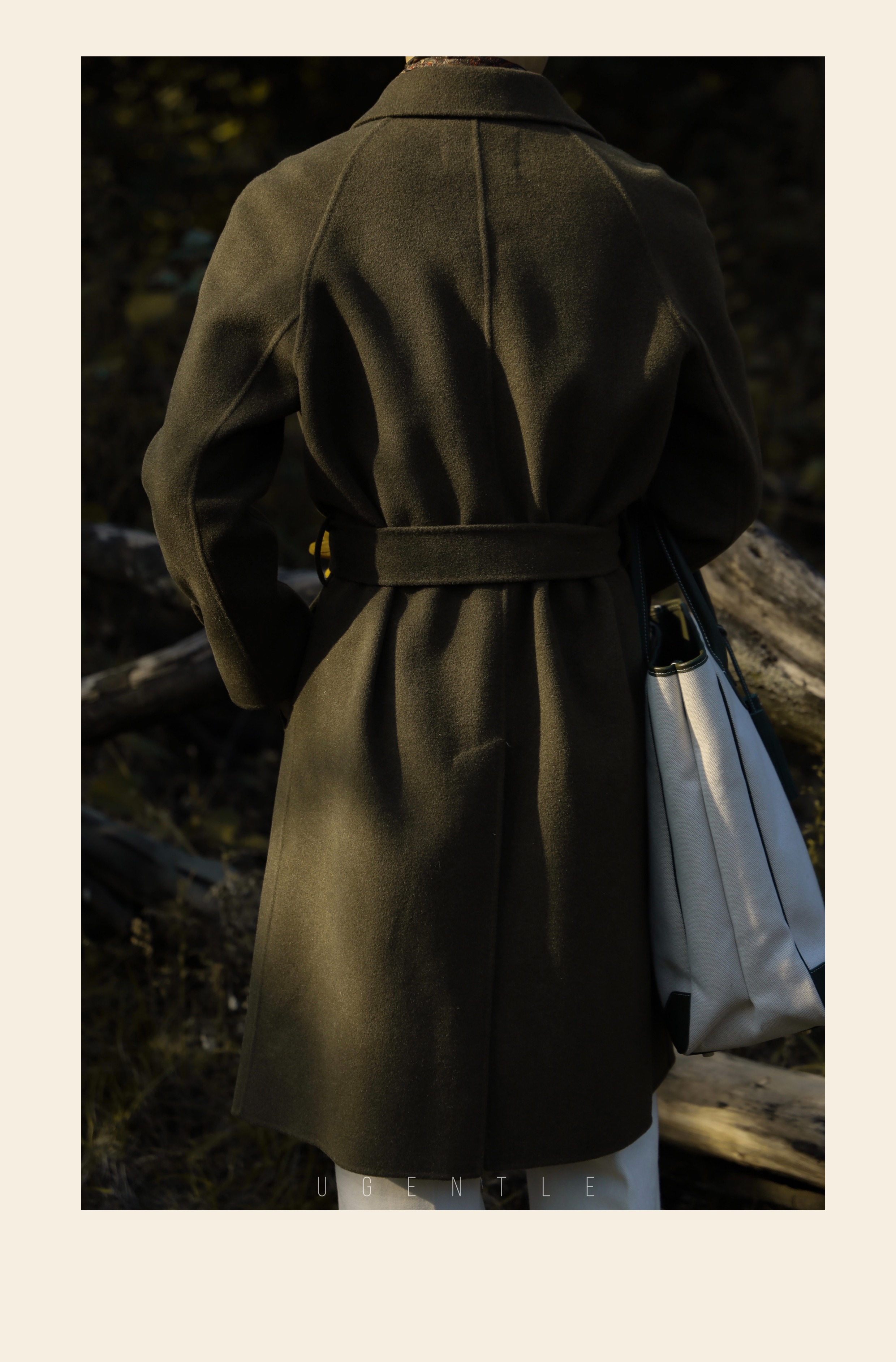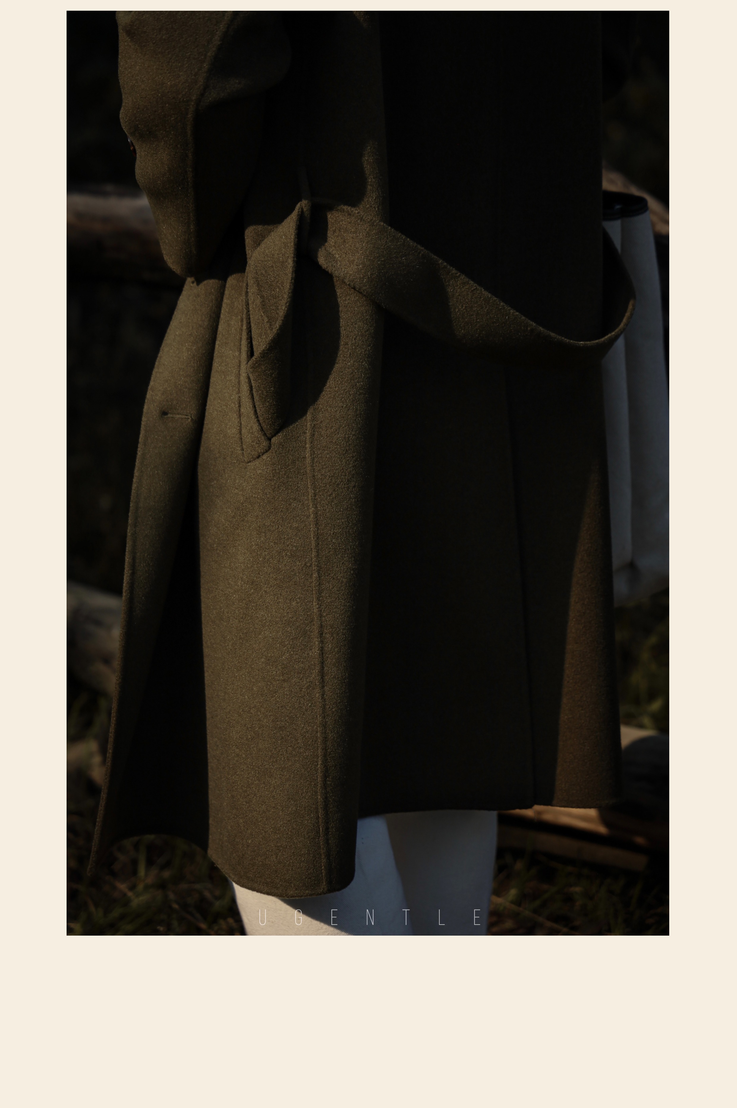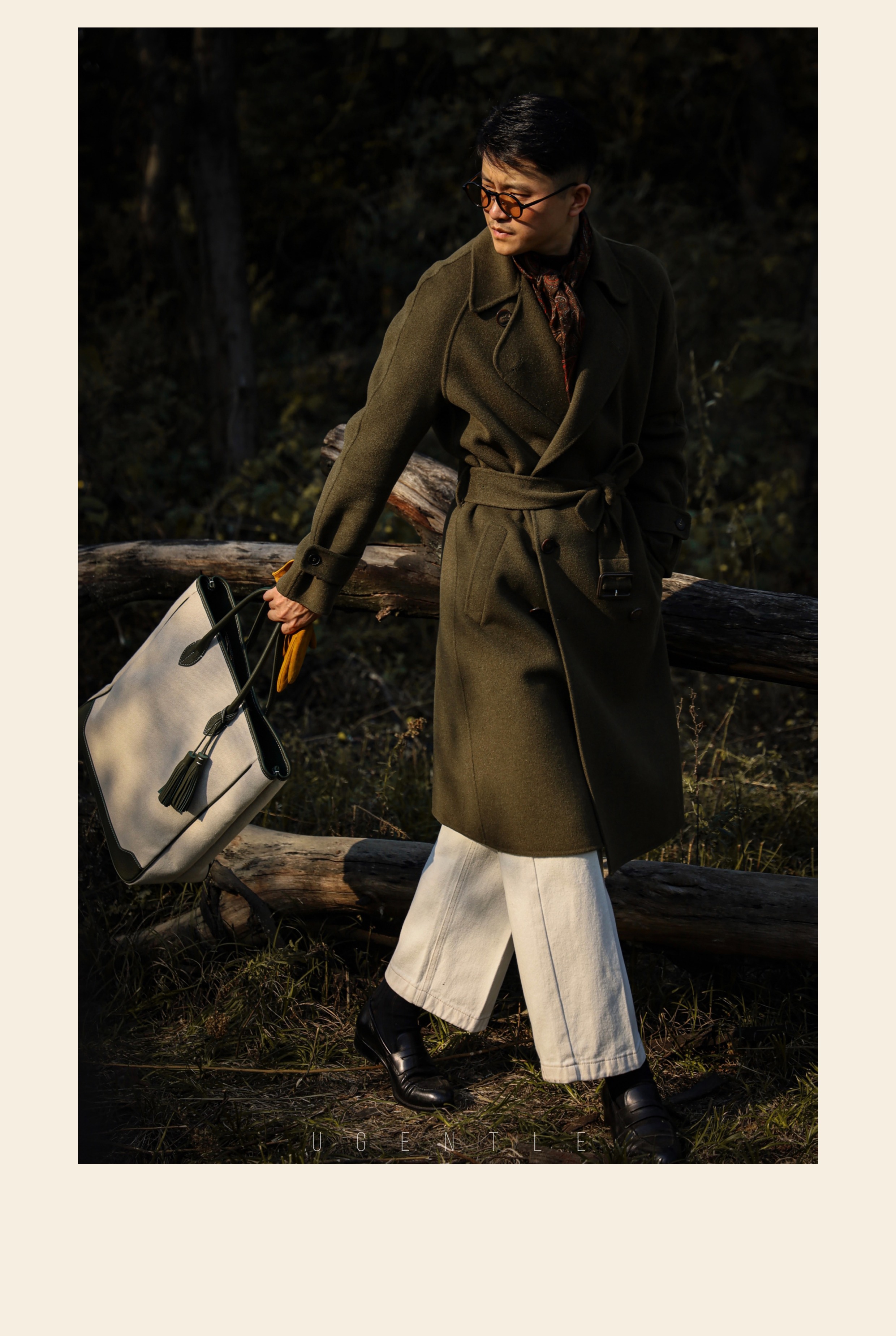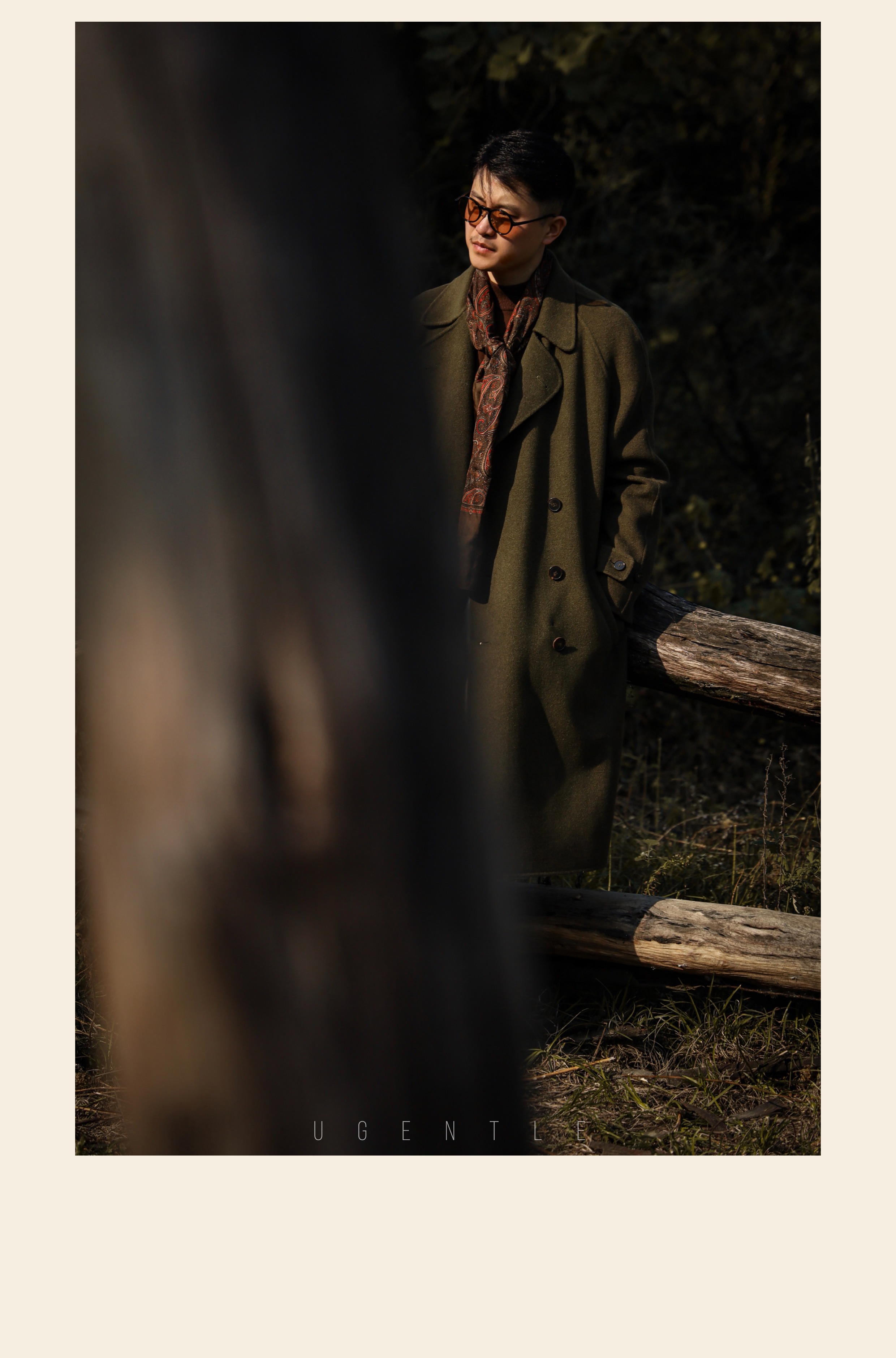 Ugentle Men's Clothing Autumn/Winter Full Wool Double-Sided Fabric'Cedar Green' Godfather Retro Raglan Sleeve Coat