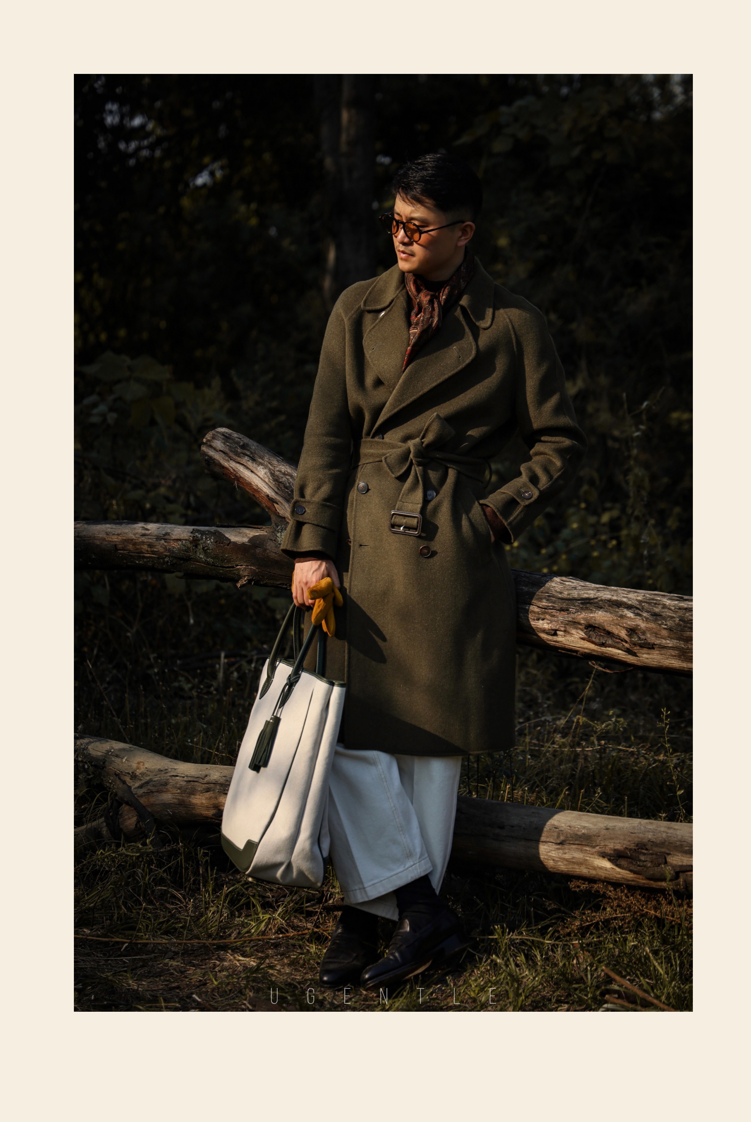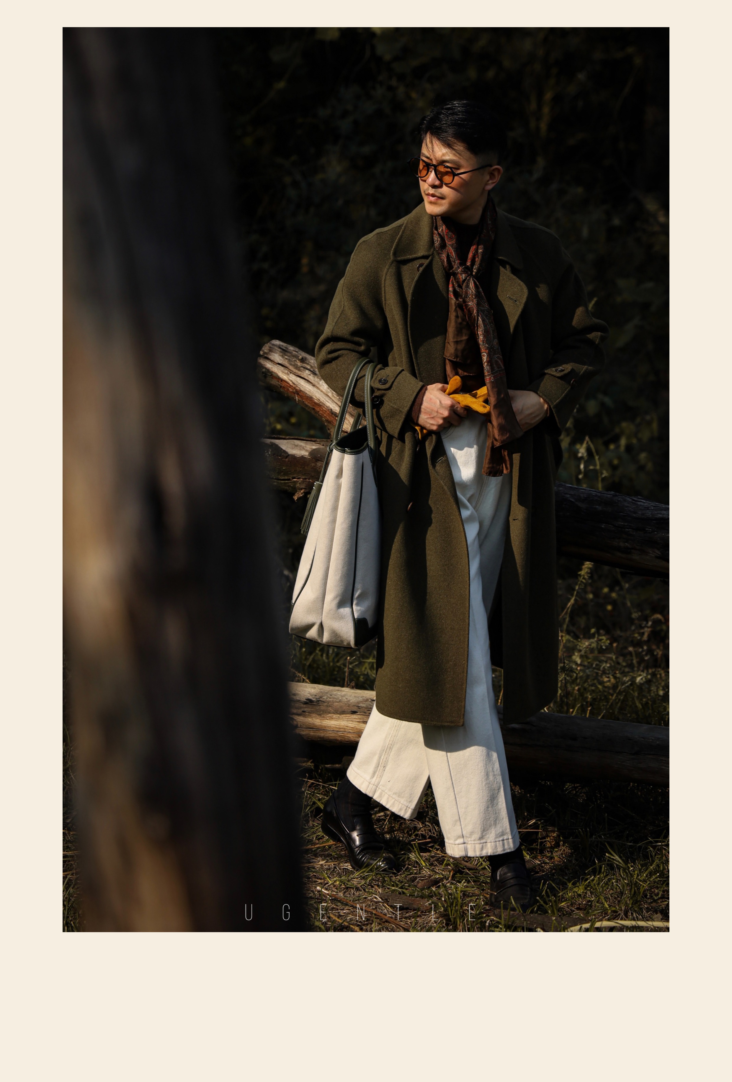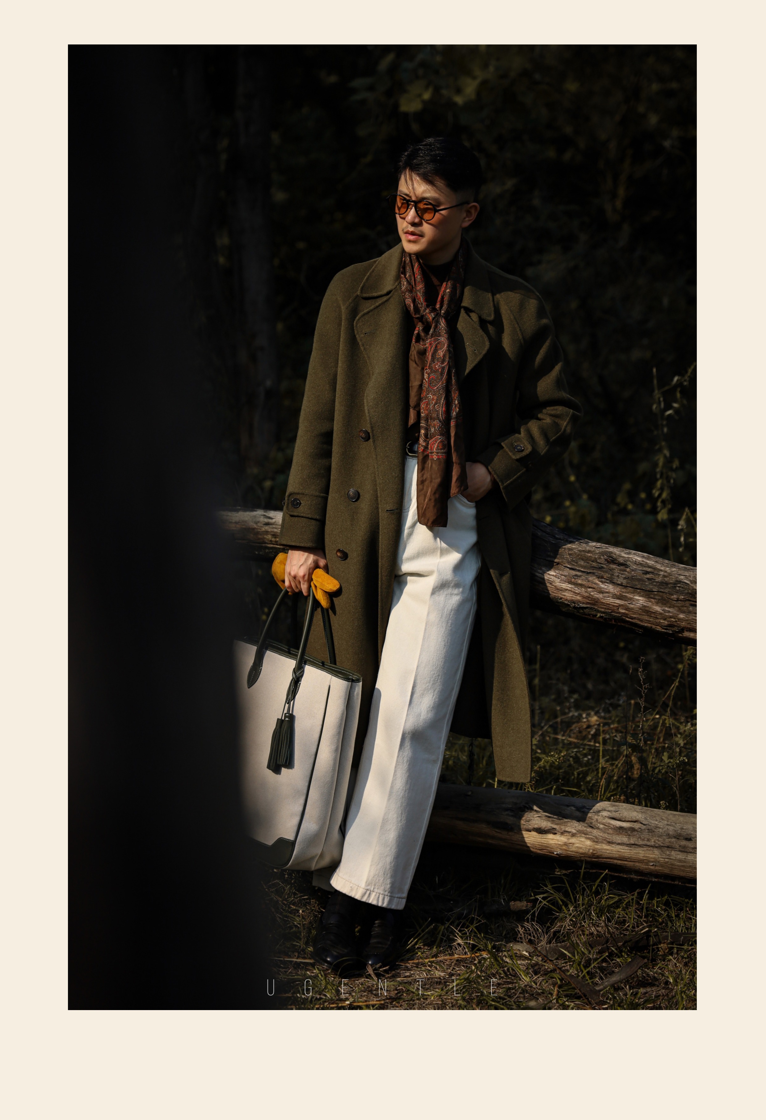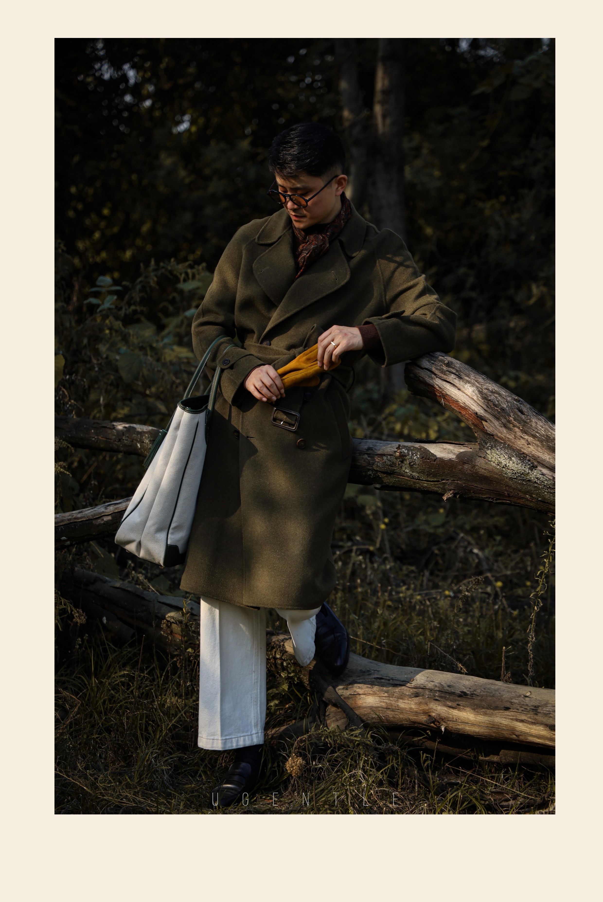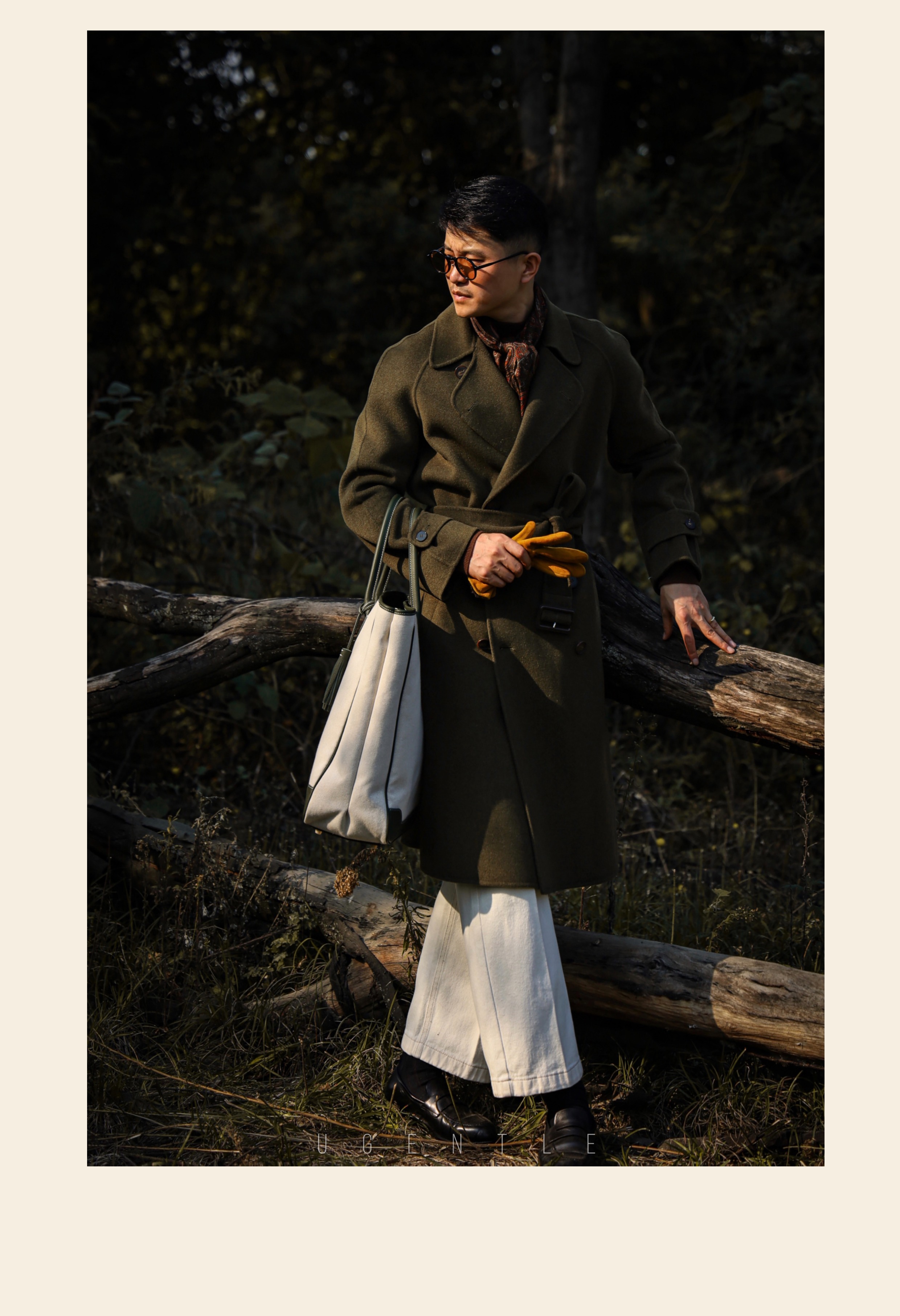 Ugentle Men's Clothing Autumn/Winter Full Wool Double-Sided Fabric'Cedar Green' Godfather Retro Raglan Sleeve Coat