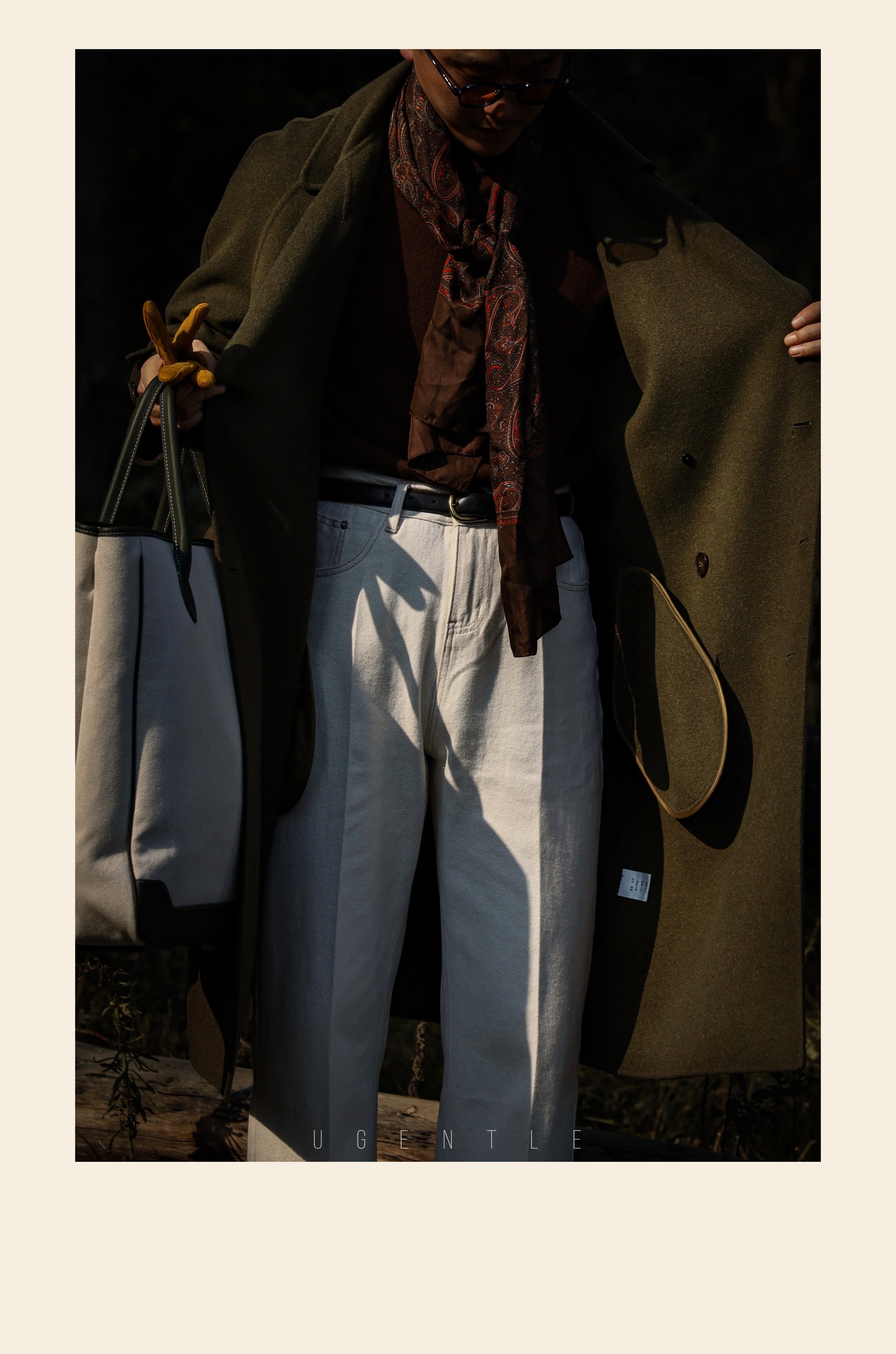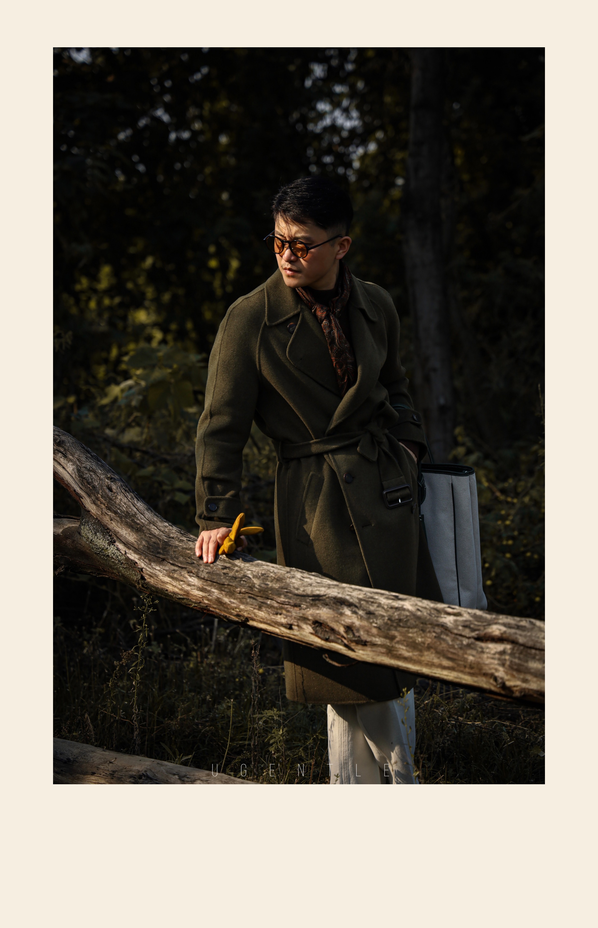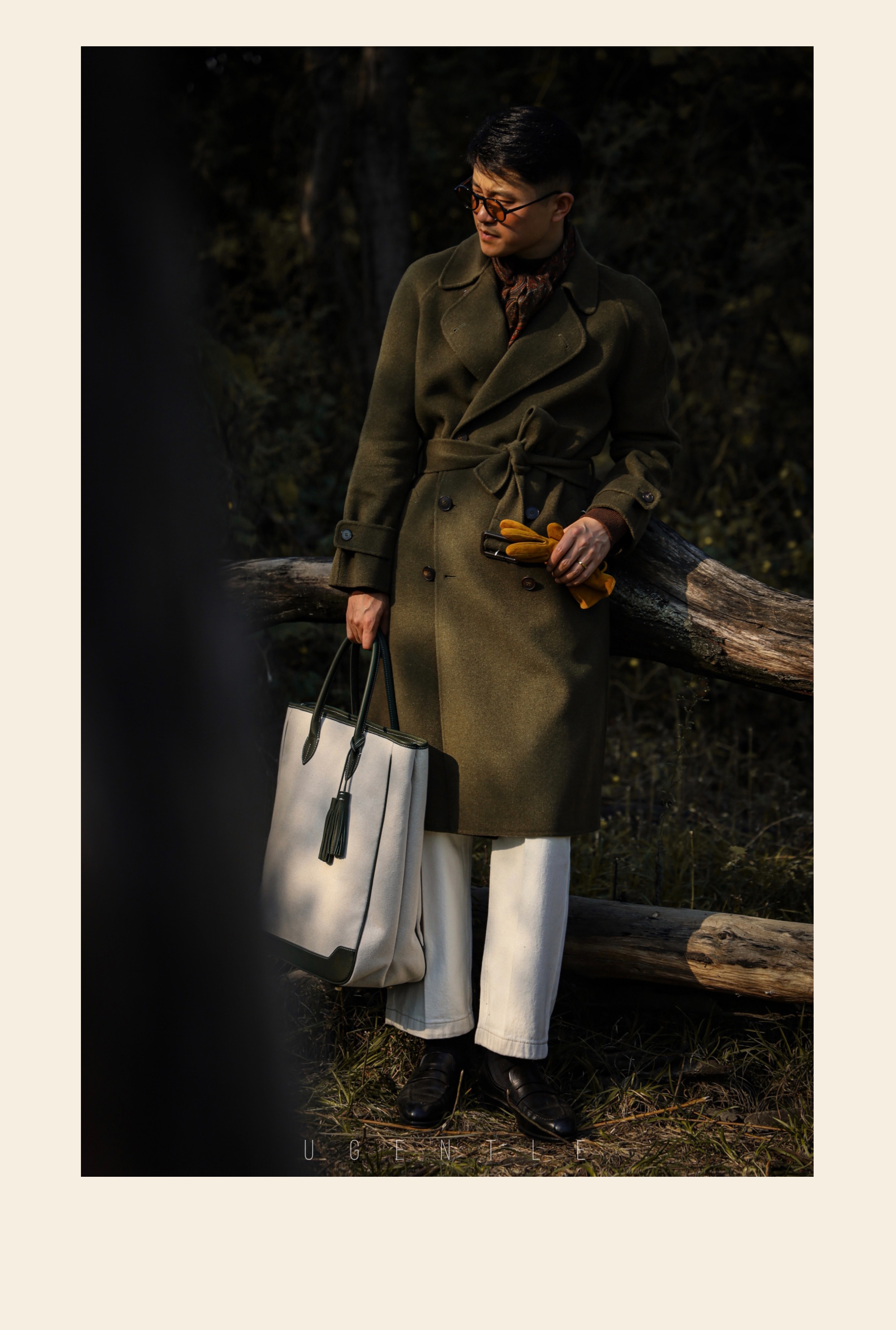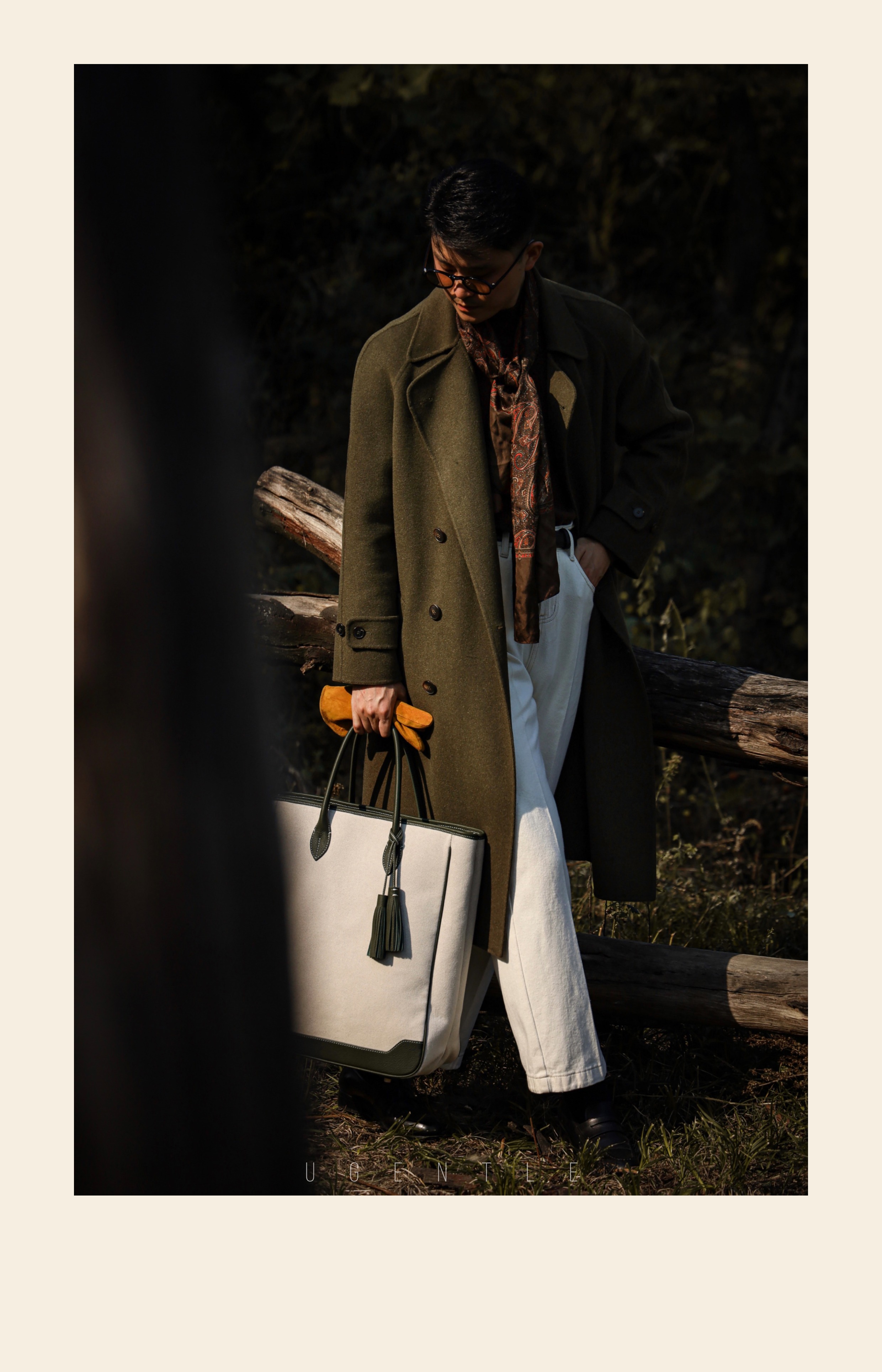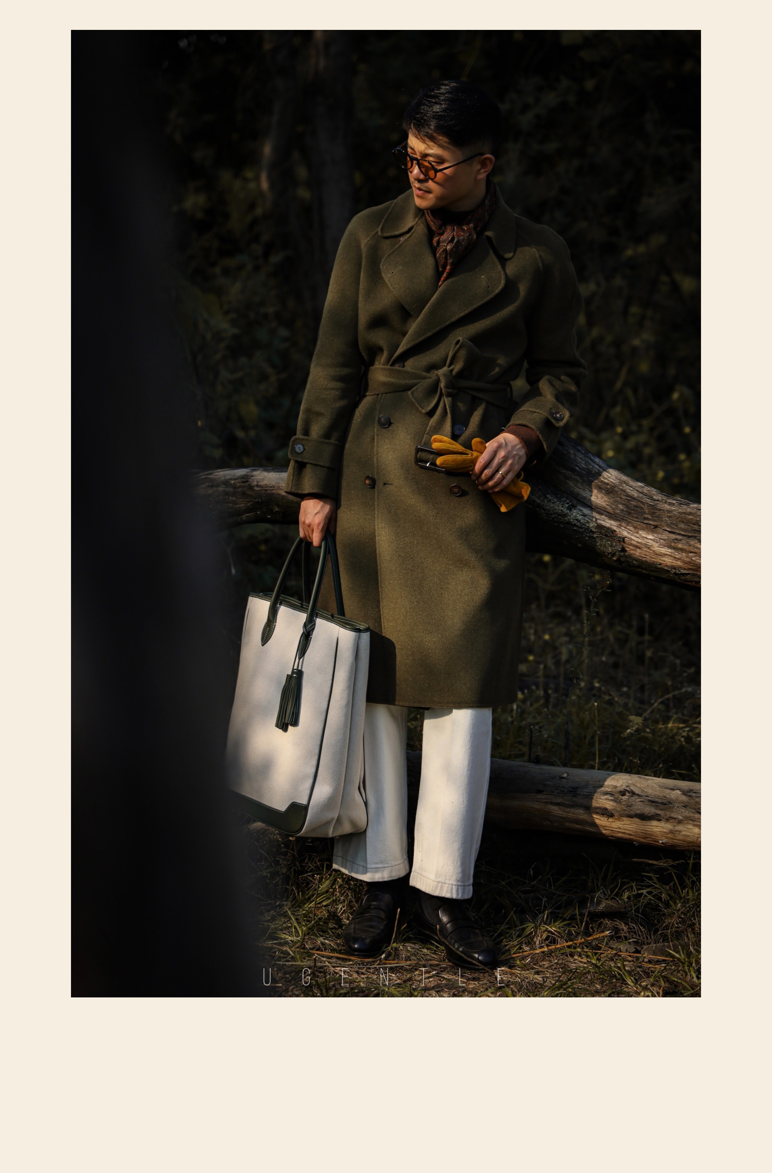 Ugentle Men's Clothing Autumn/Winter Full Wool Double-Sided Fabric'Cedar Green' Godfather Retro Raglan Sleeve Coat