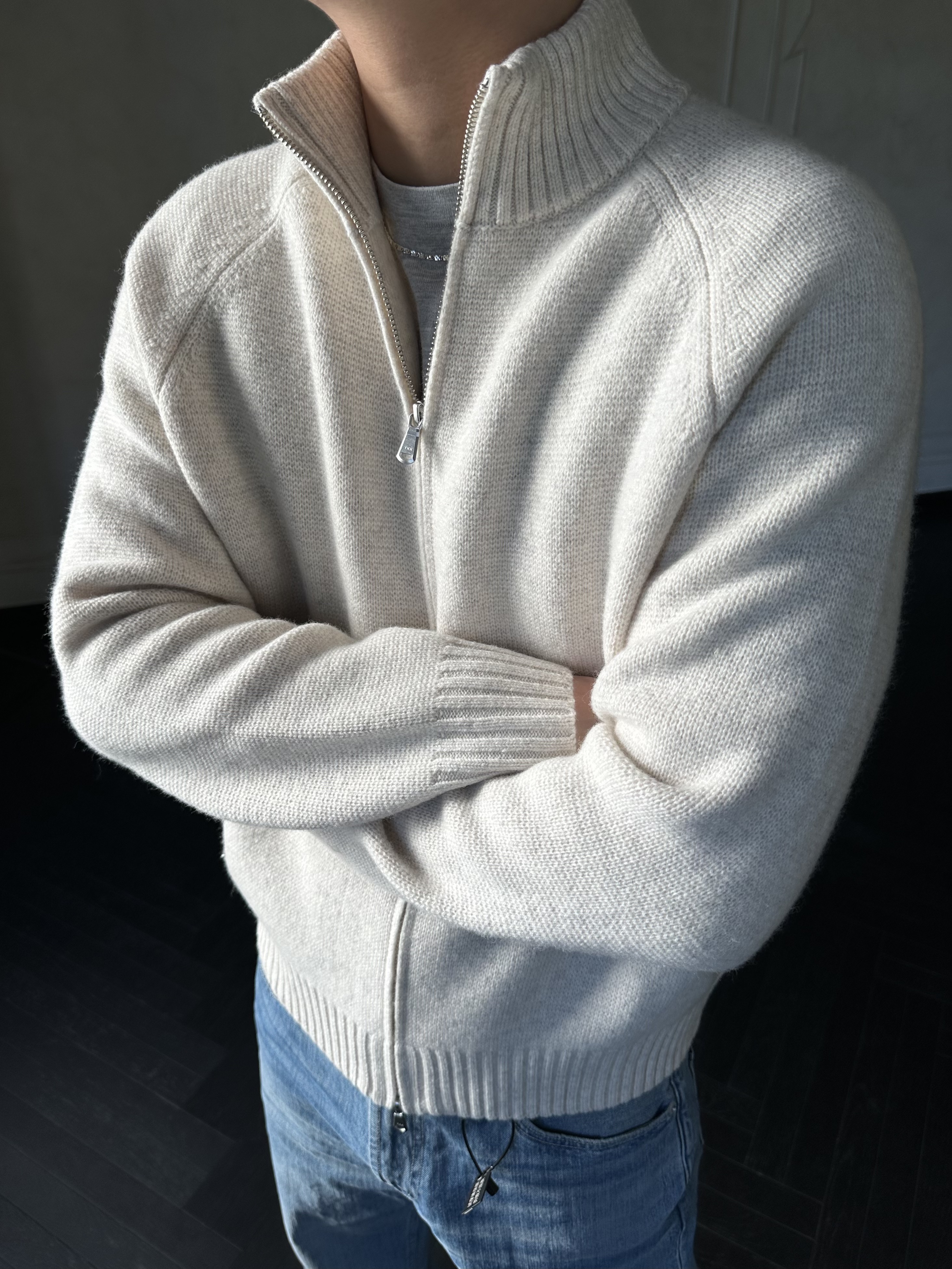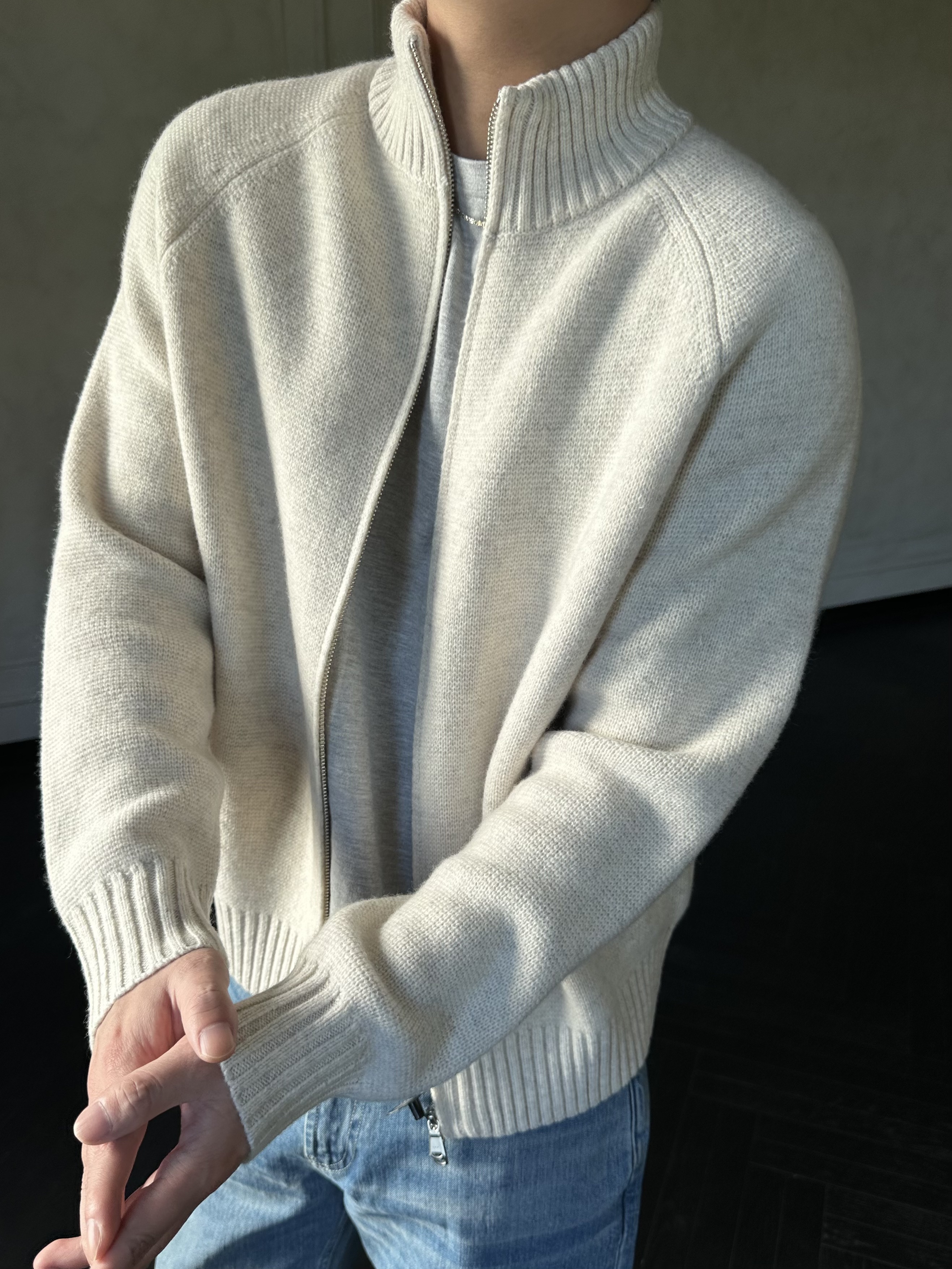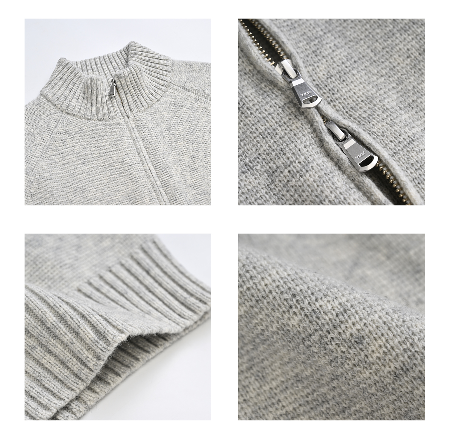 Roolrren 100% Wool Cloud Pattern [Versatile for Commuting and Practical to Wear] Sweater Knit Stand Collar Zipper Cardigan Jacket