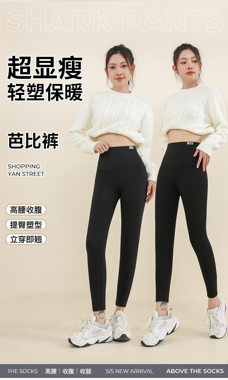 Black Gold Thermal Pants for Women, Autumn and Winter Shark Pants, Fleece-Lined and Thickened, Suitable for Wearing Outside, Plus-Size Leggings, Upgraded Cold-Proof and Warm, Tummy Control