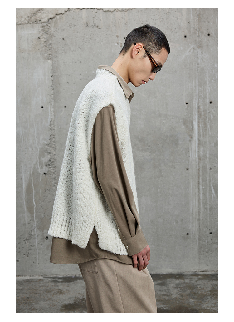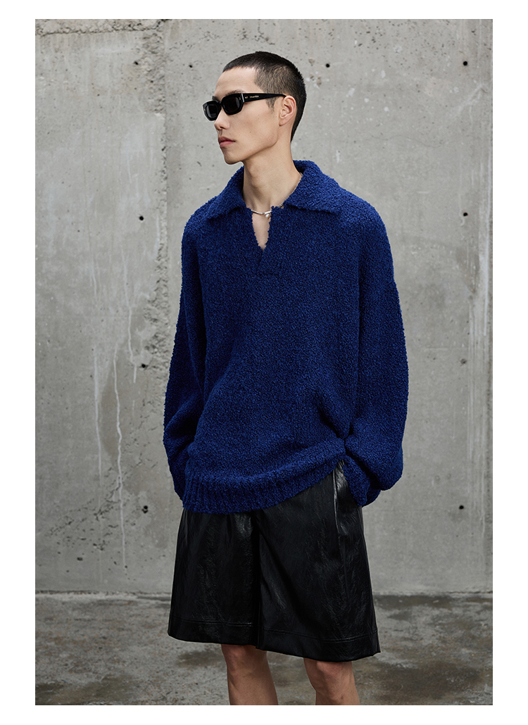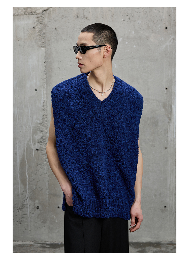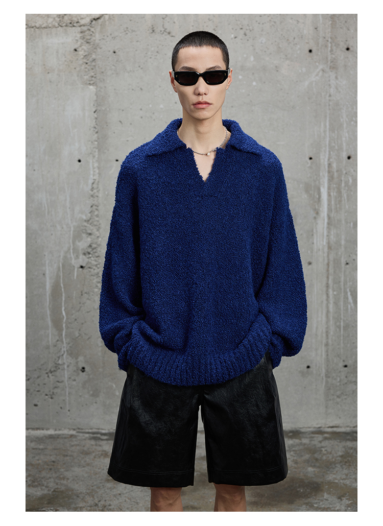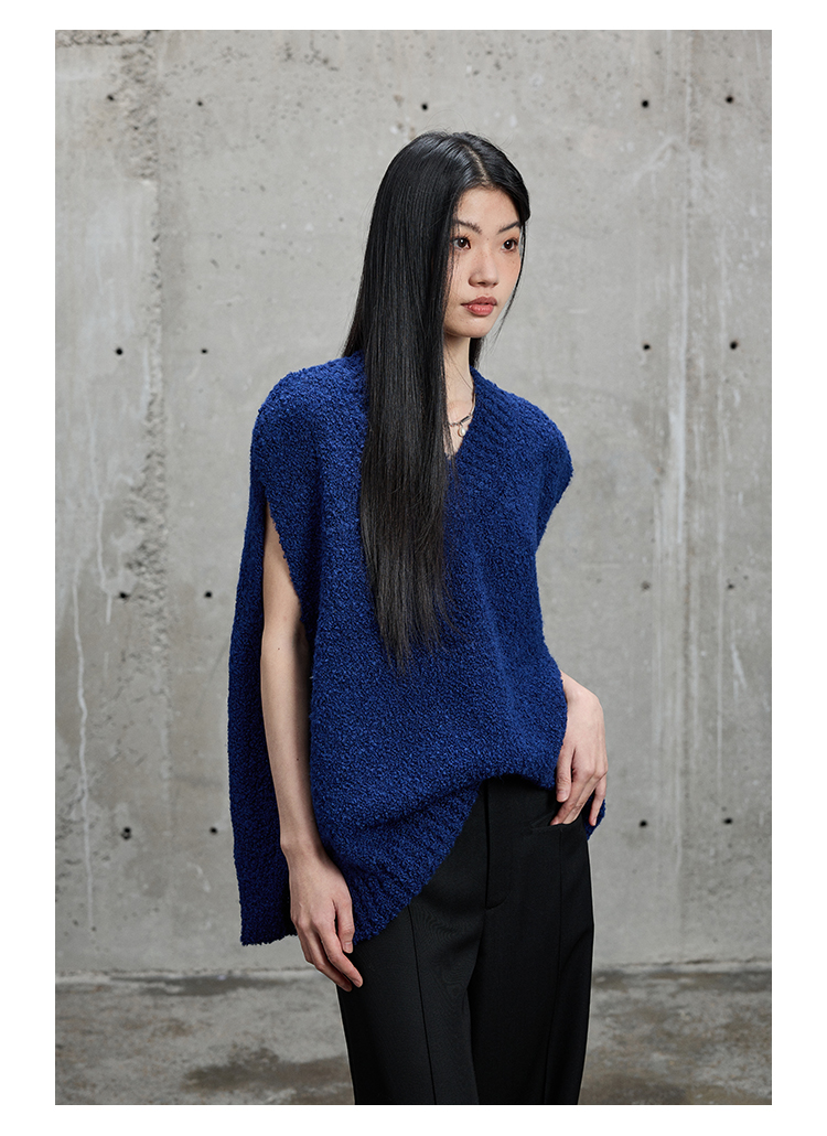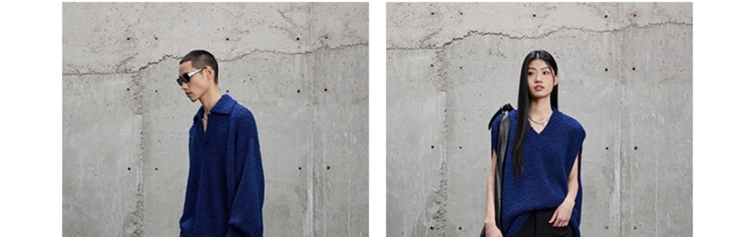 【Nans】Suli Alpaca Wool Blend Soft Chunky Loop Yarn Basic Silhouette Long-Sleeve Polo/V-Neck Vest
