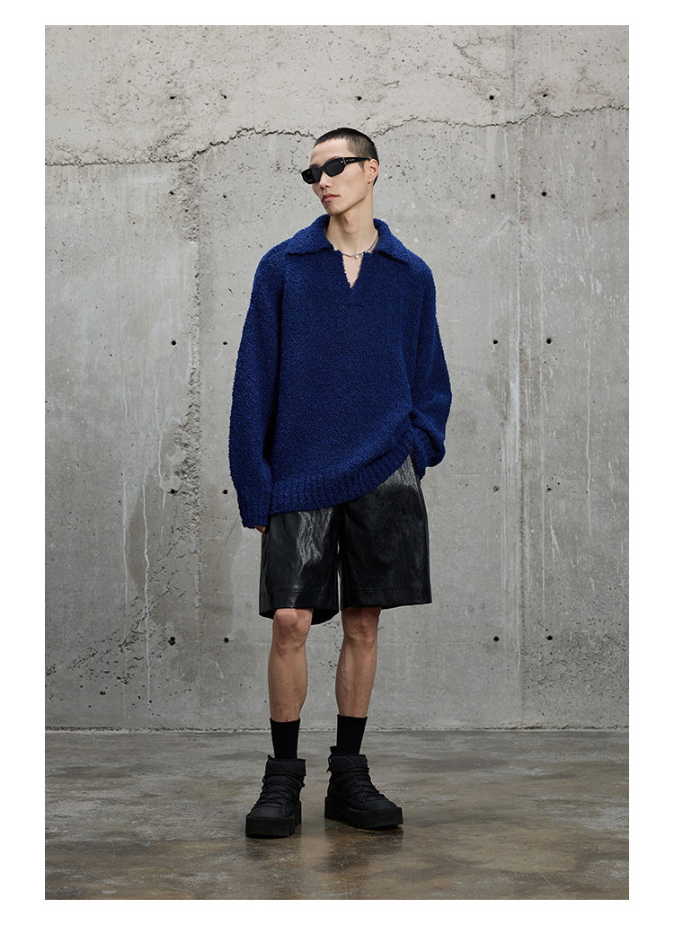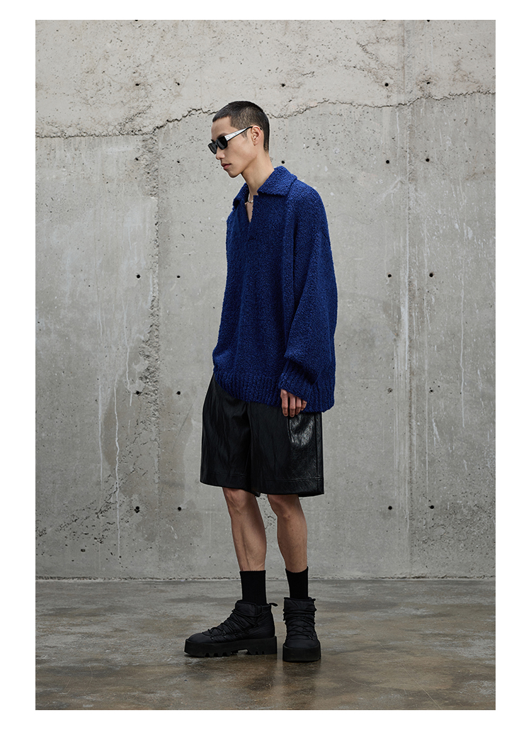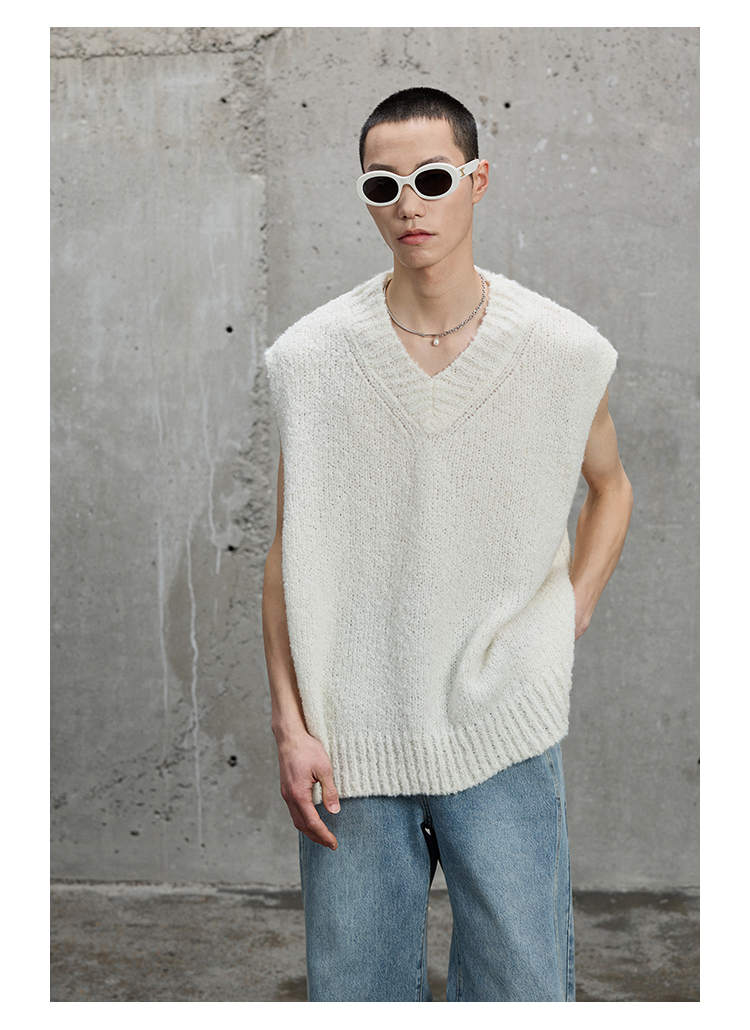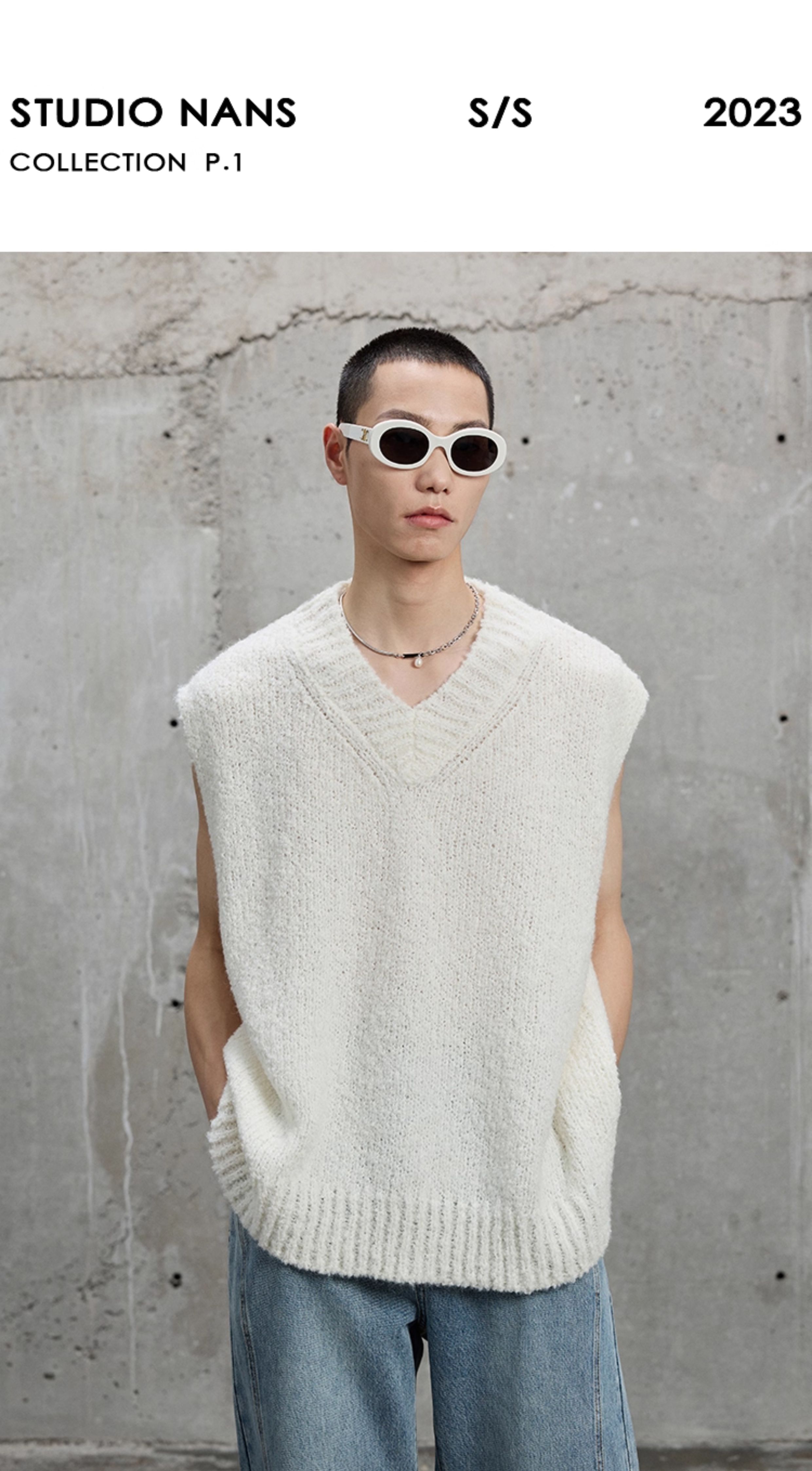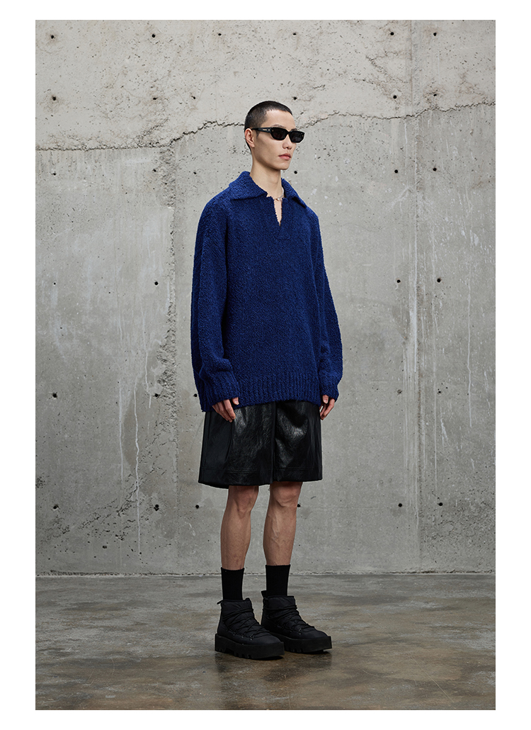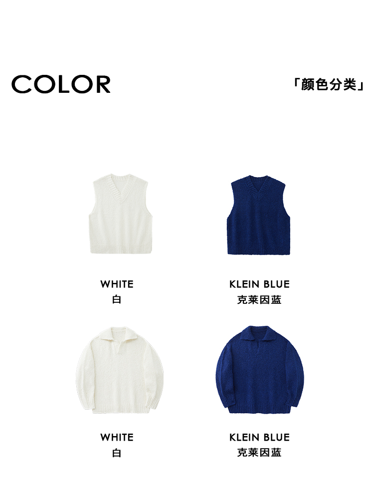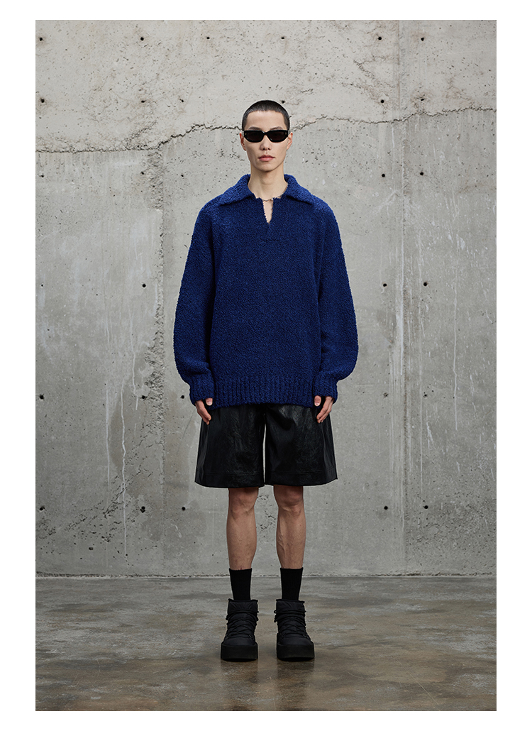 【Nans】Suli Alpaca Wool Blend Soft Chunky Loop Yarn Basic Silhouette Long-Sleeve Polo/V-Neck Vest