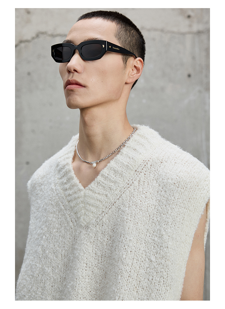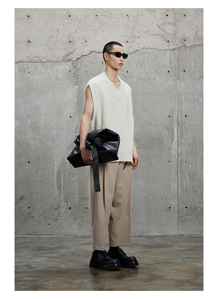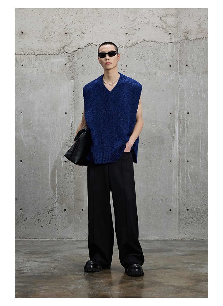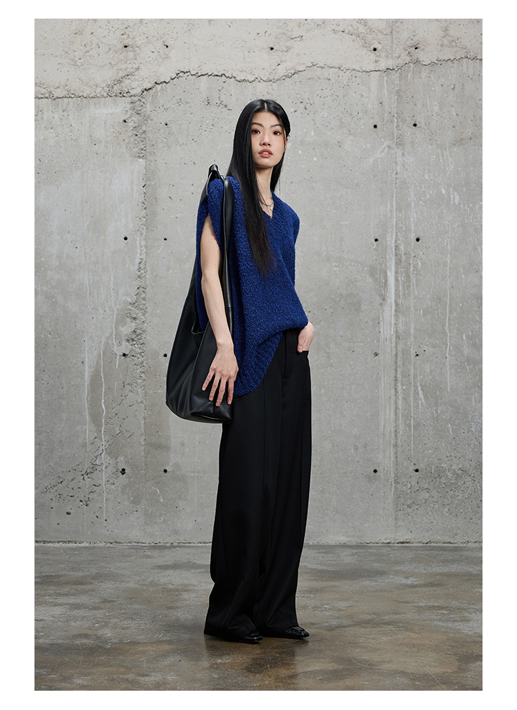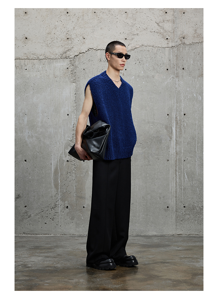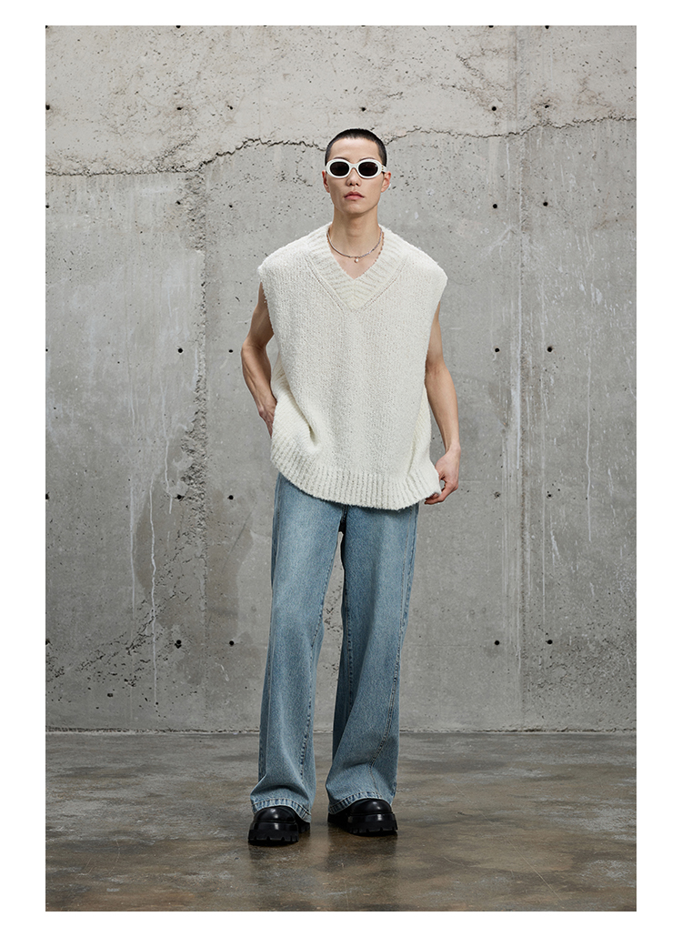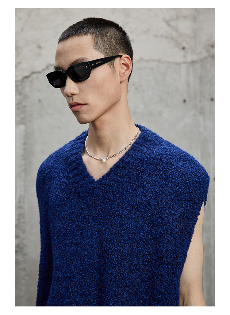 【Nans】Suli Alpaca Wool Blend Soft Chunky Loop Yarn Basic Silhouette Long-Sleeve Polo/V-Neck Vest