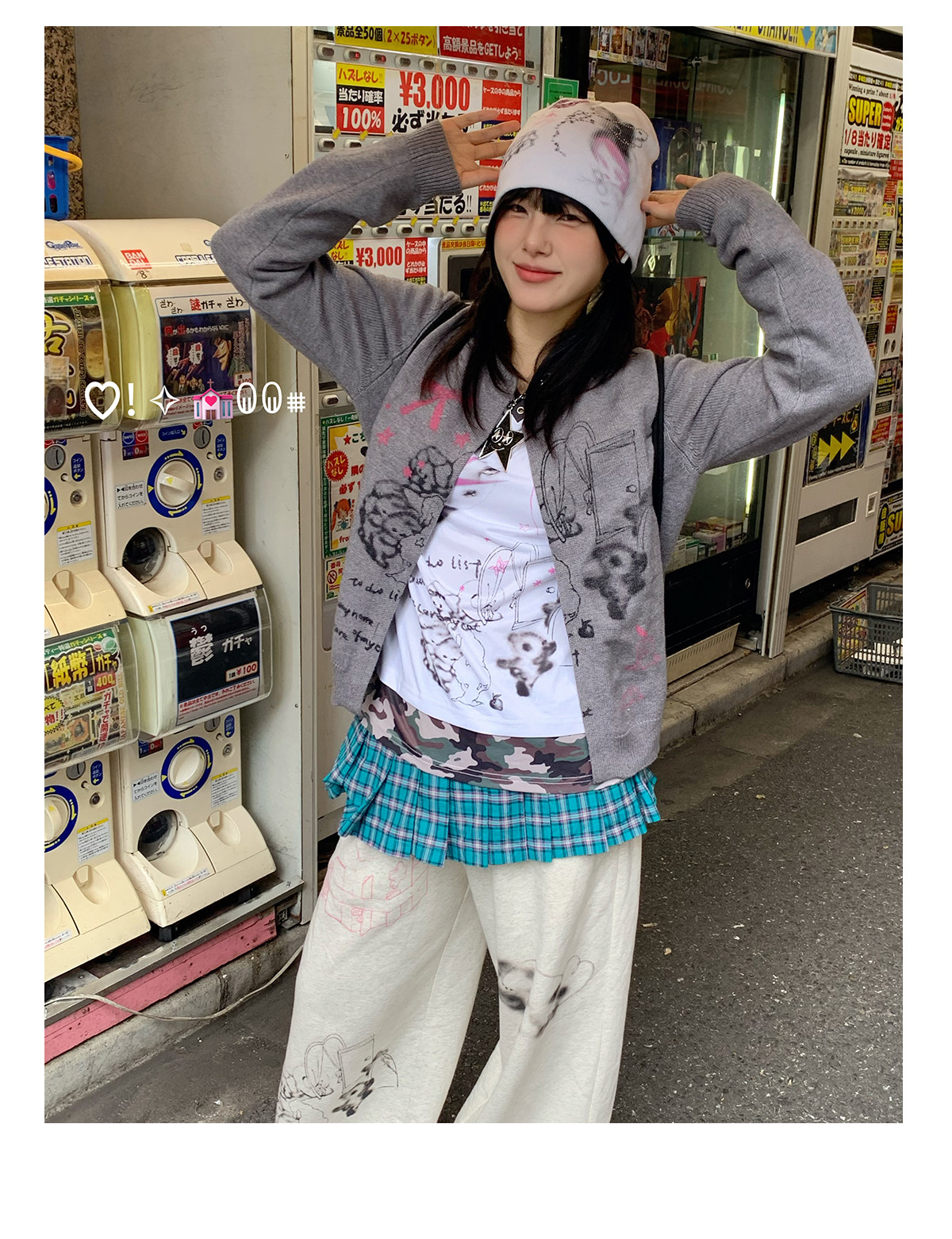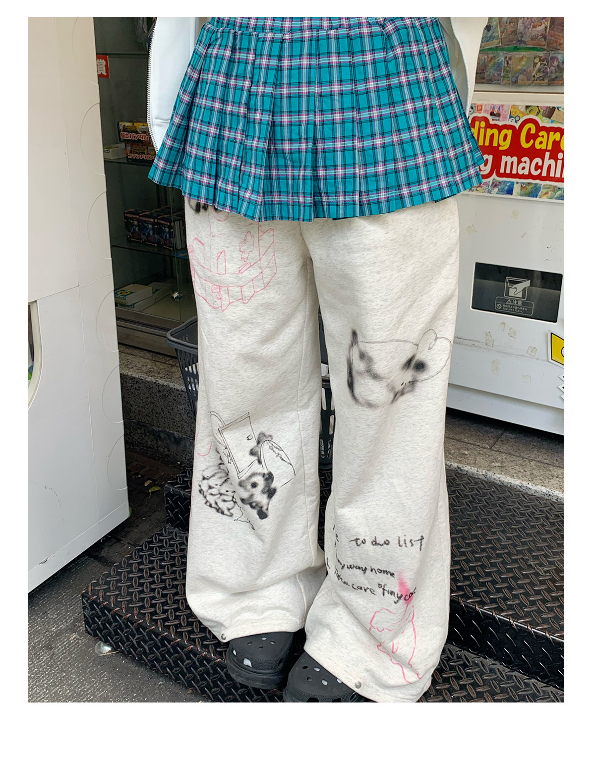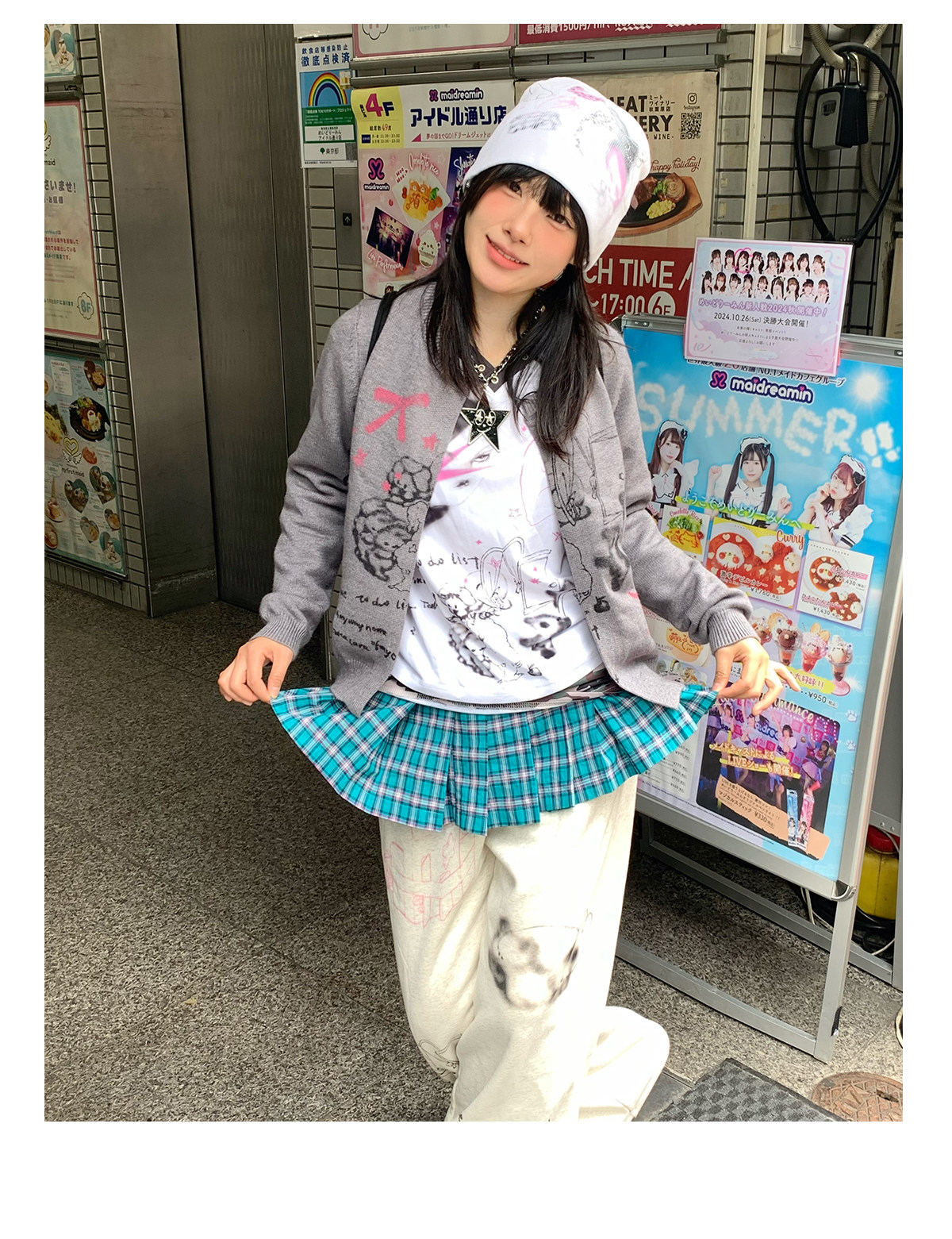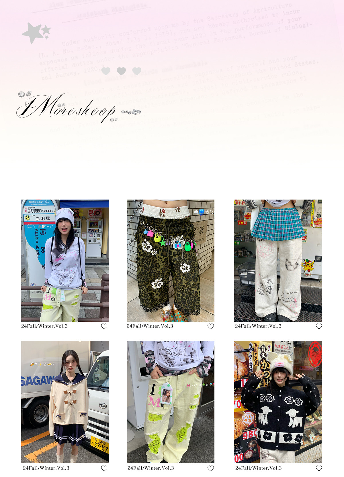 1Moresheep×Li Zilin "Animal Paradise Gray Casual Sweatpants" Green Plaid Butt Flap Is Very Cute!!