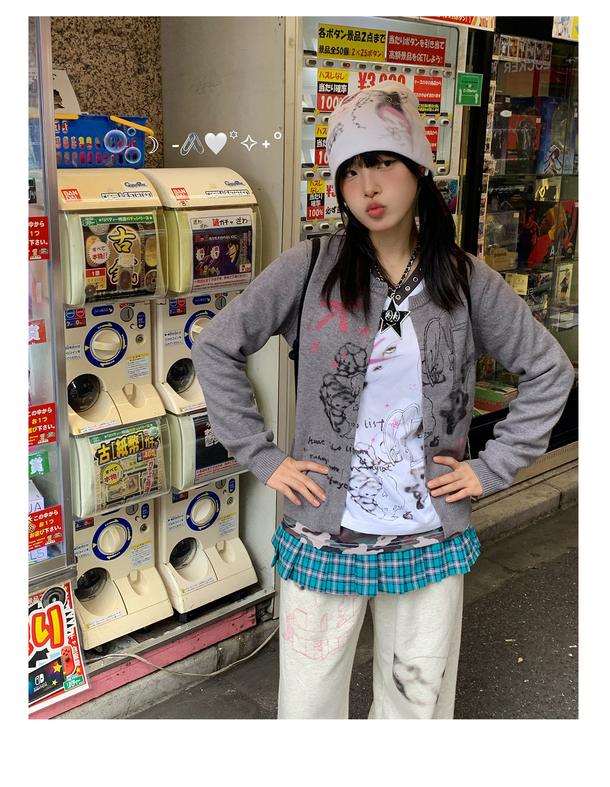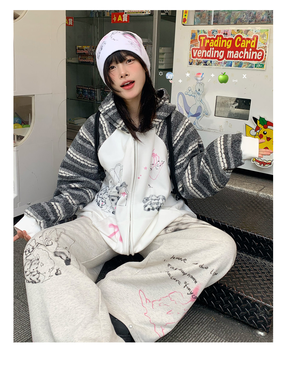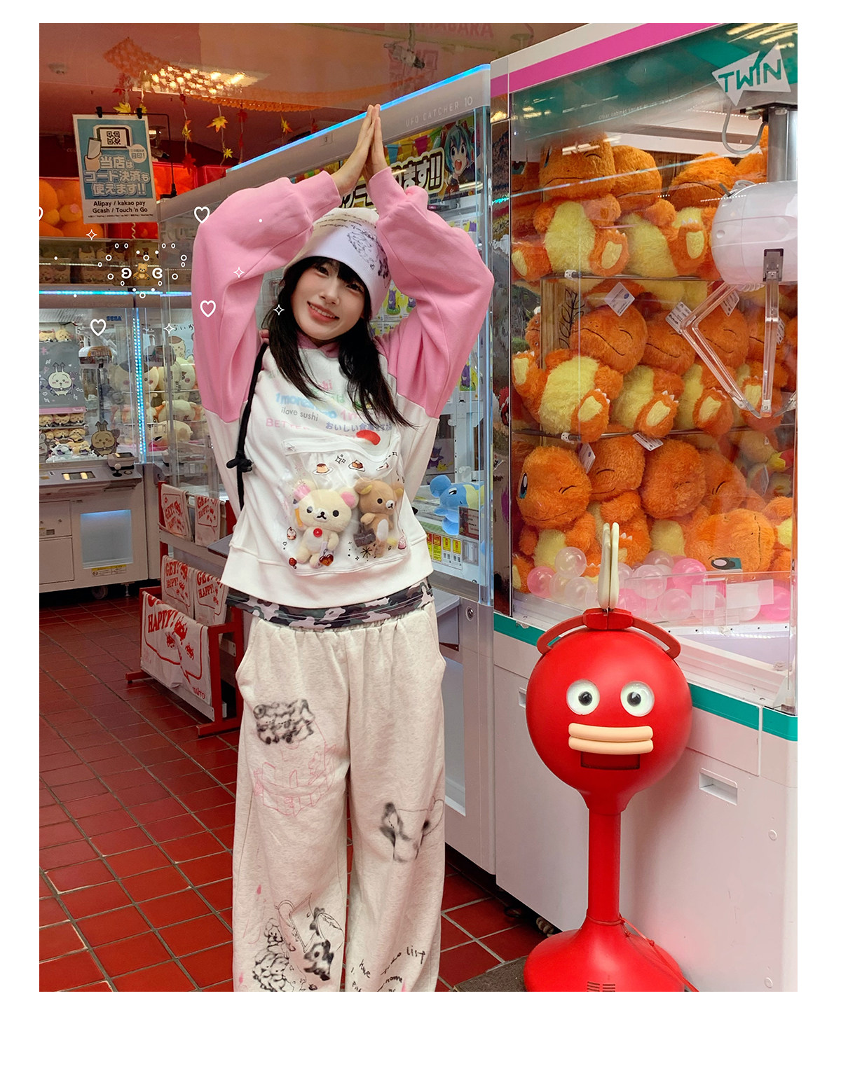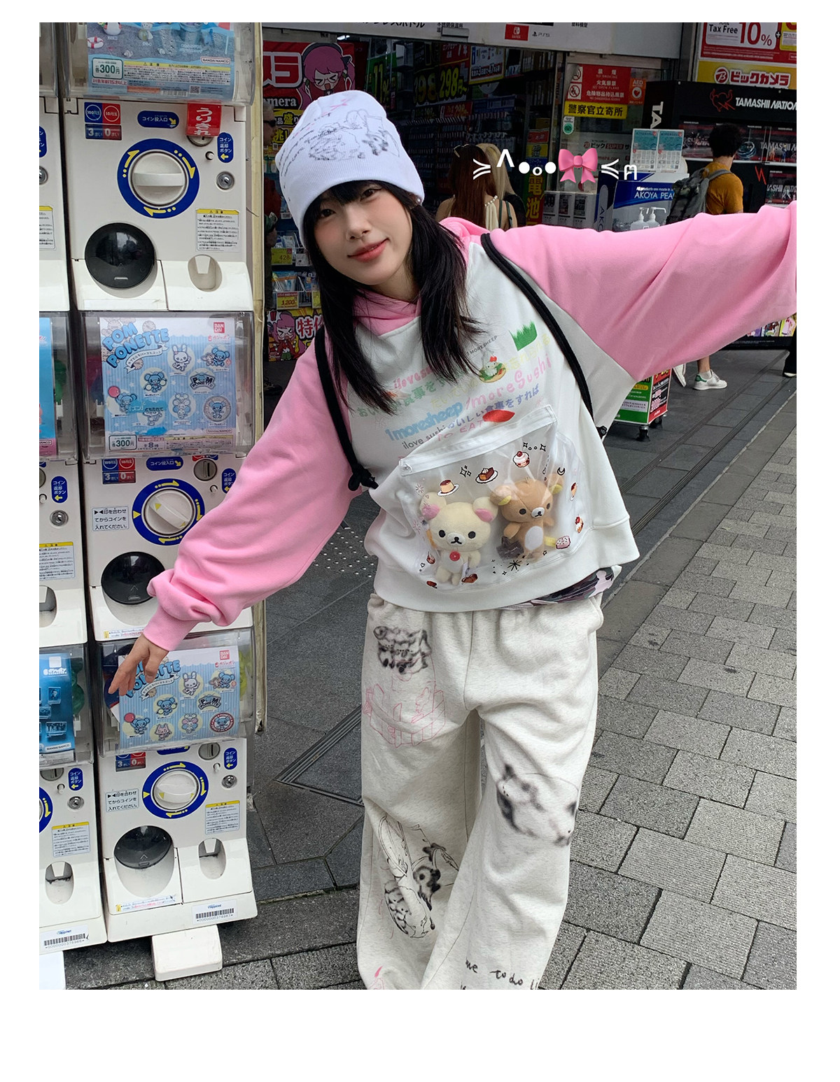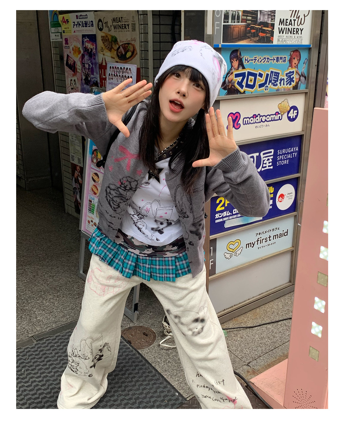 1Moresheep×Li Zilin "Animal Paradise Gray Casual Sweatpants" Green Plaid Butt Flap Is Very Cute!!