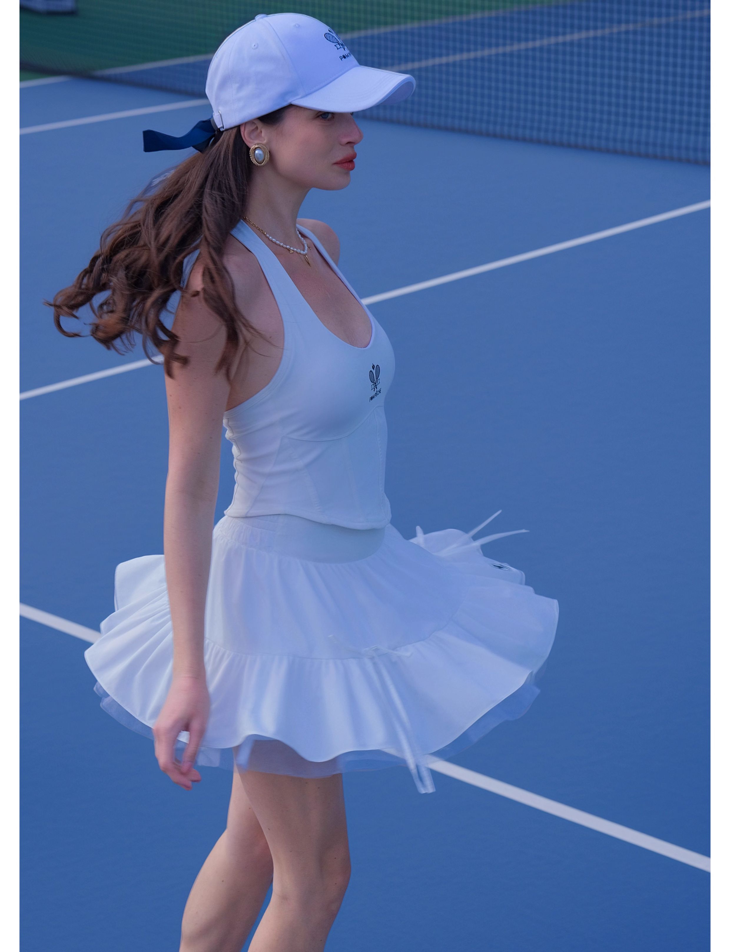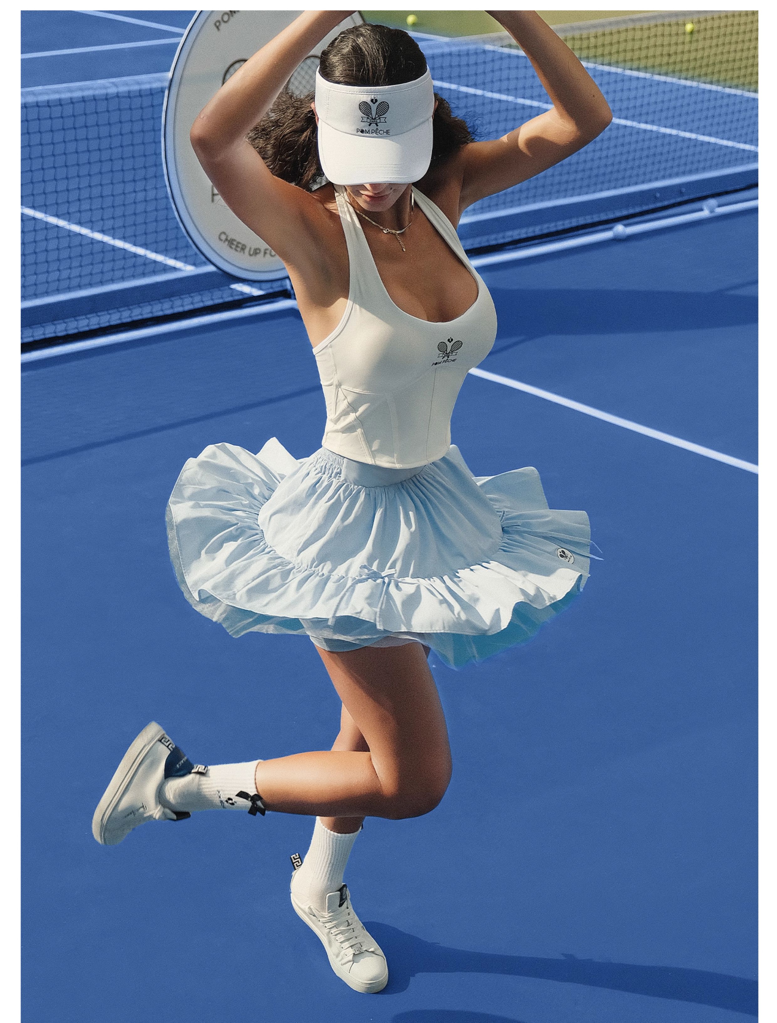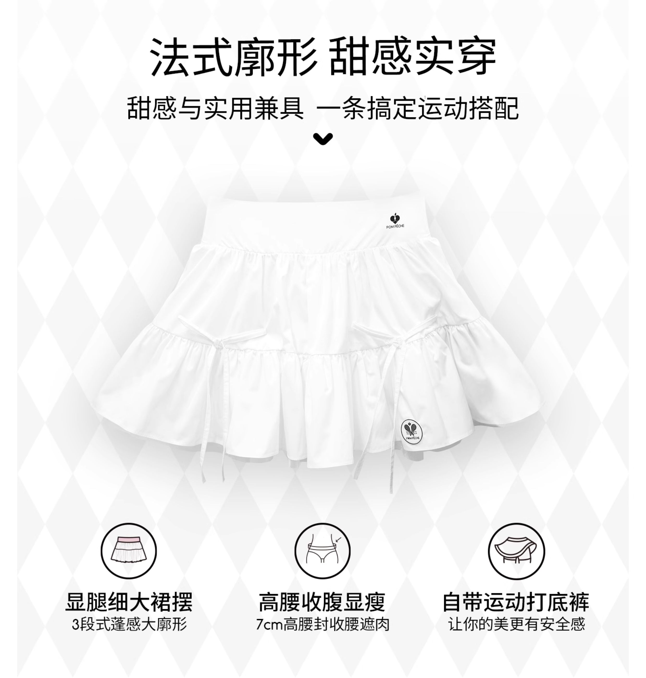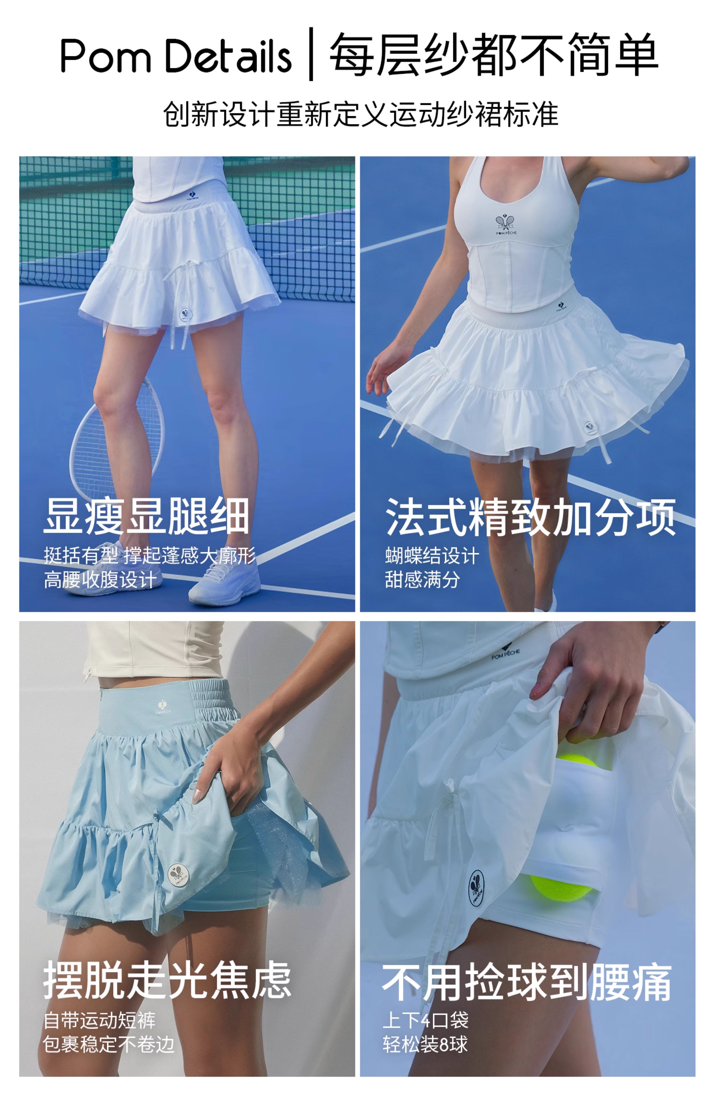 [Leg Slimming] Pompeche Tennis Skirt for Women, White Badminton Tennis Wear, Sports Half Skirt