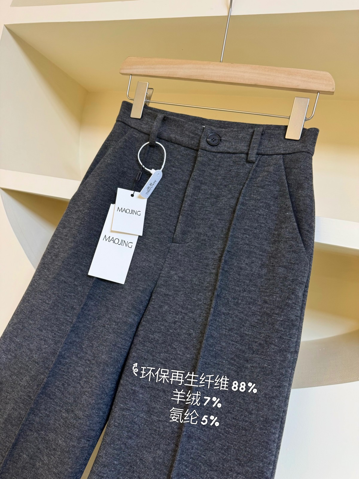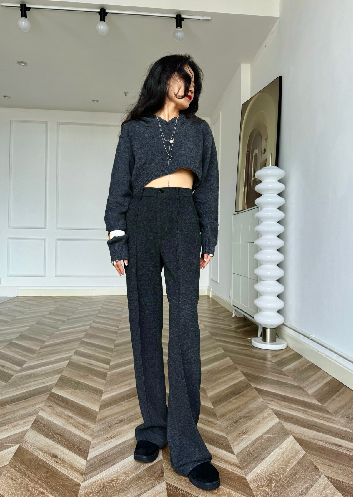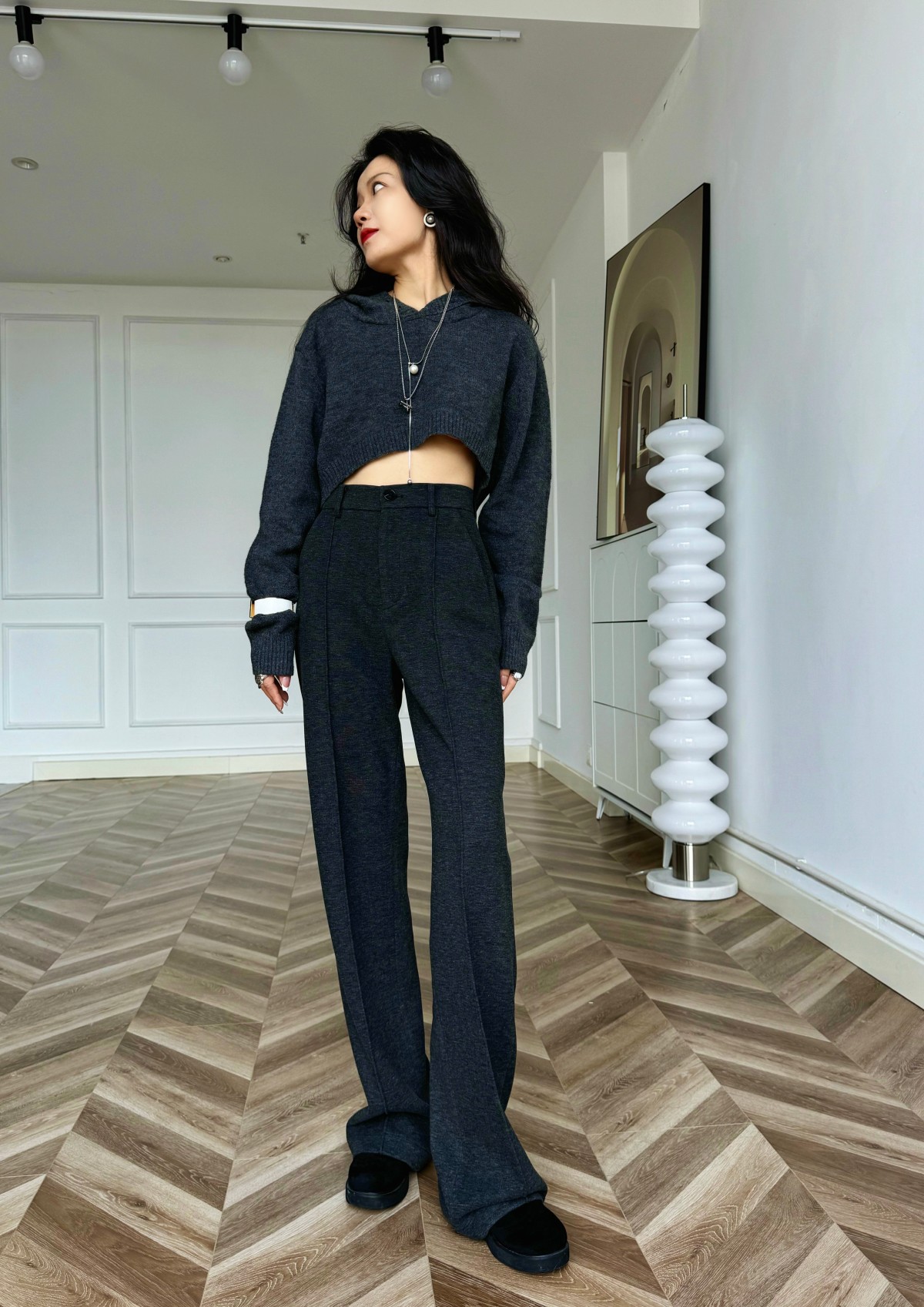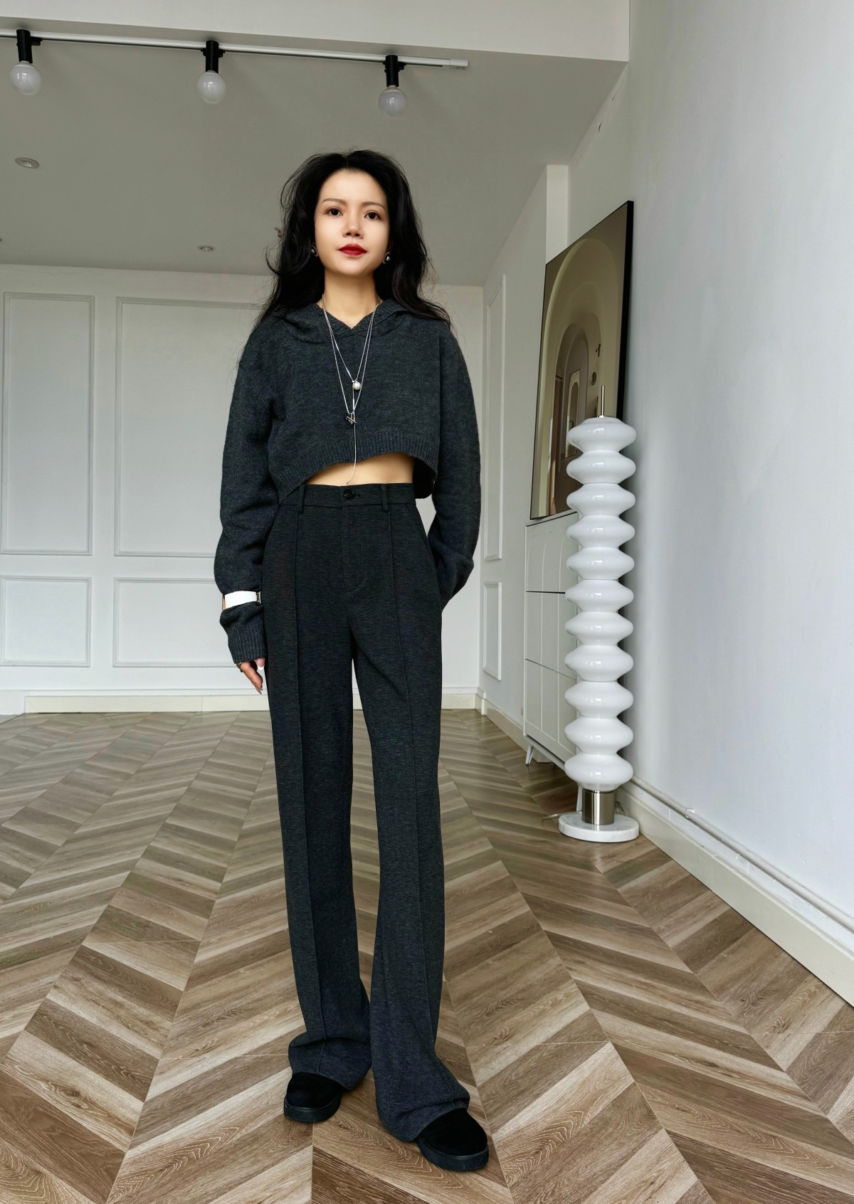 It's a Pair of Slim-Fit, No-Maintenance, Thickened Cashmere-Blend, High-Waisted, Gray, Toothpick-Striped, Warm, Stylish, Straight-Leg Long Trousers