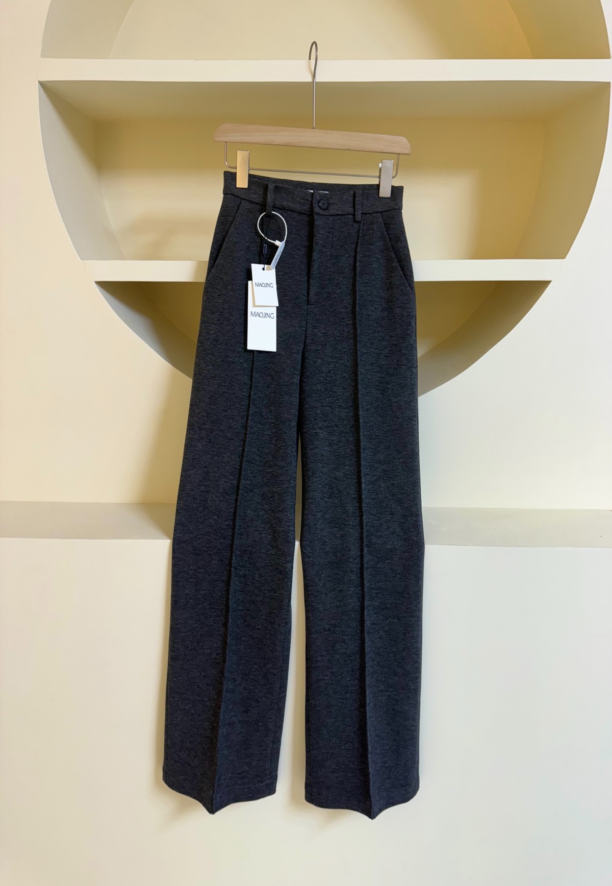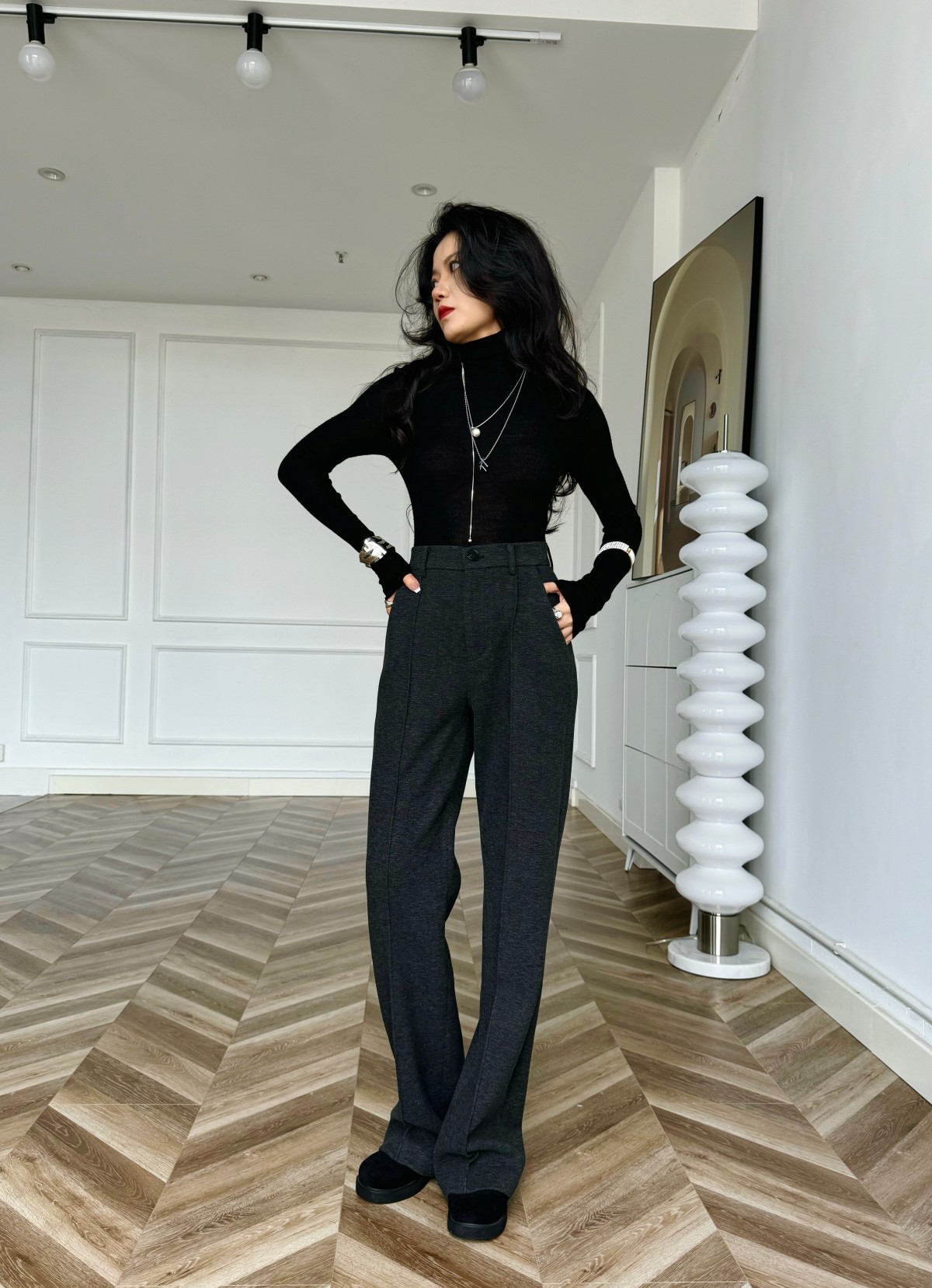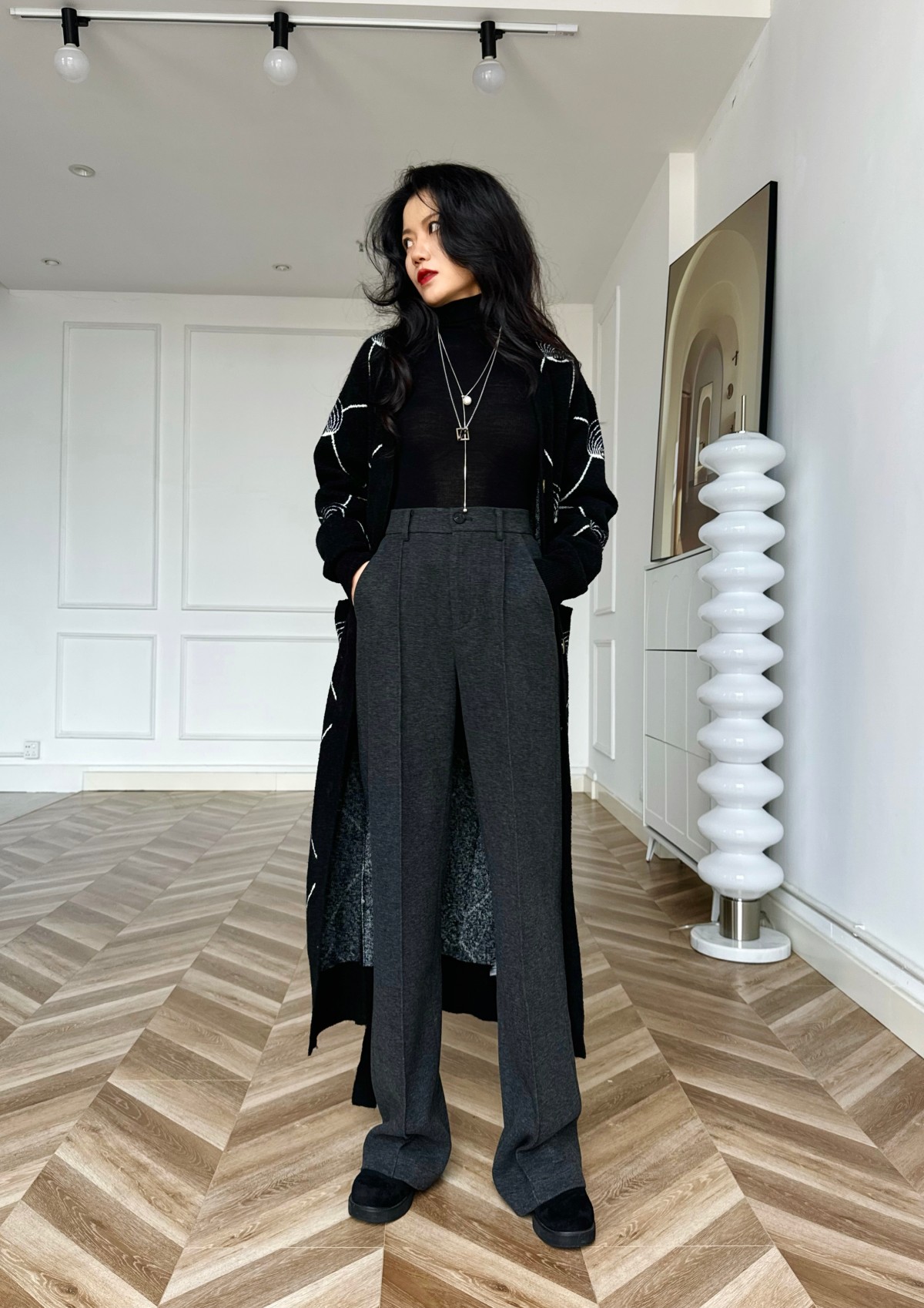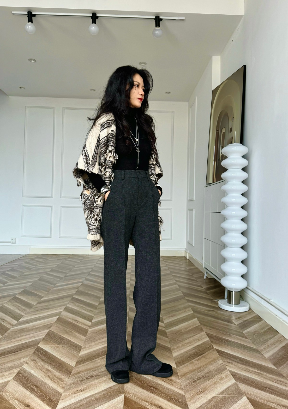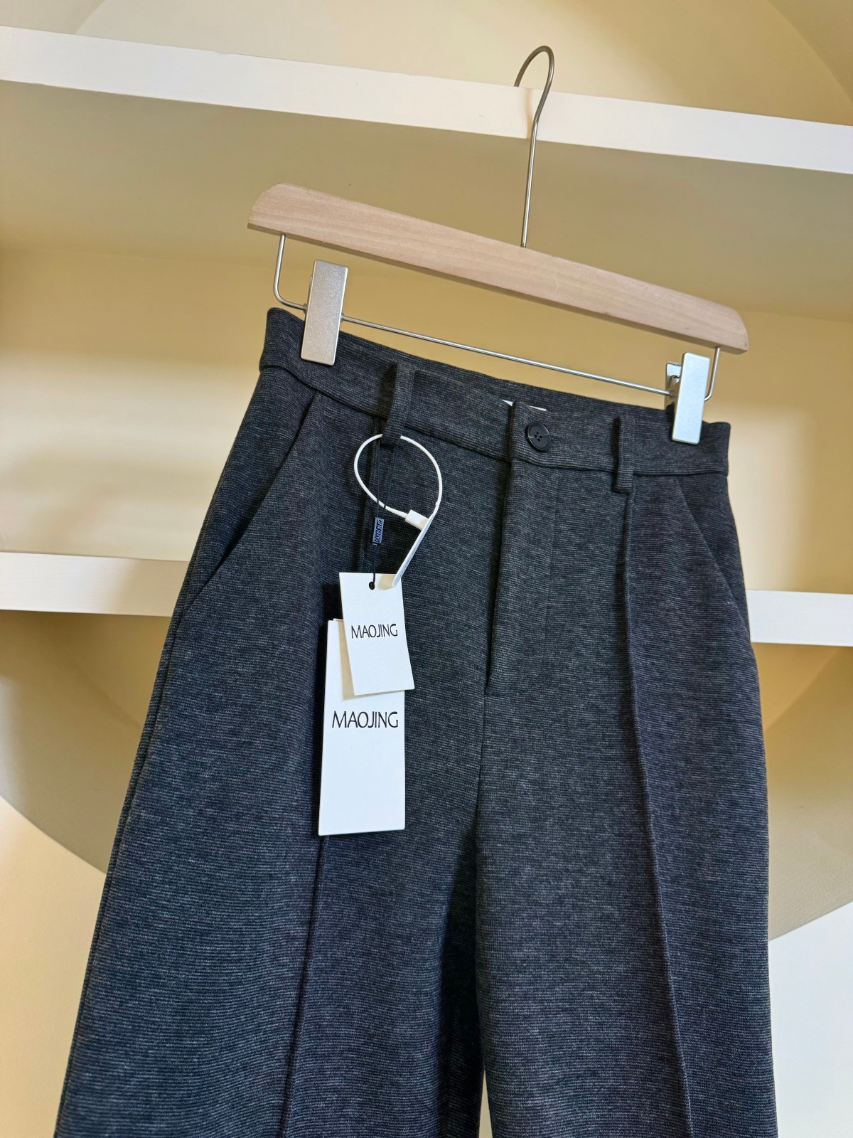 It's a Pair of Slim-Fit, No-Maintenance, Thickened Cashmere-Blend, High-Waisted, Gray, Toothpick-Striped, Warm, Stylish, Straight-Leg Long Trousers