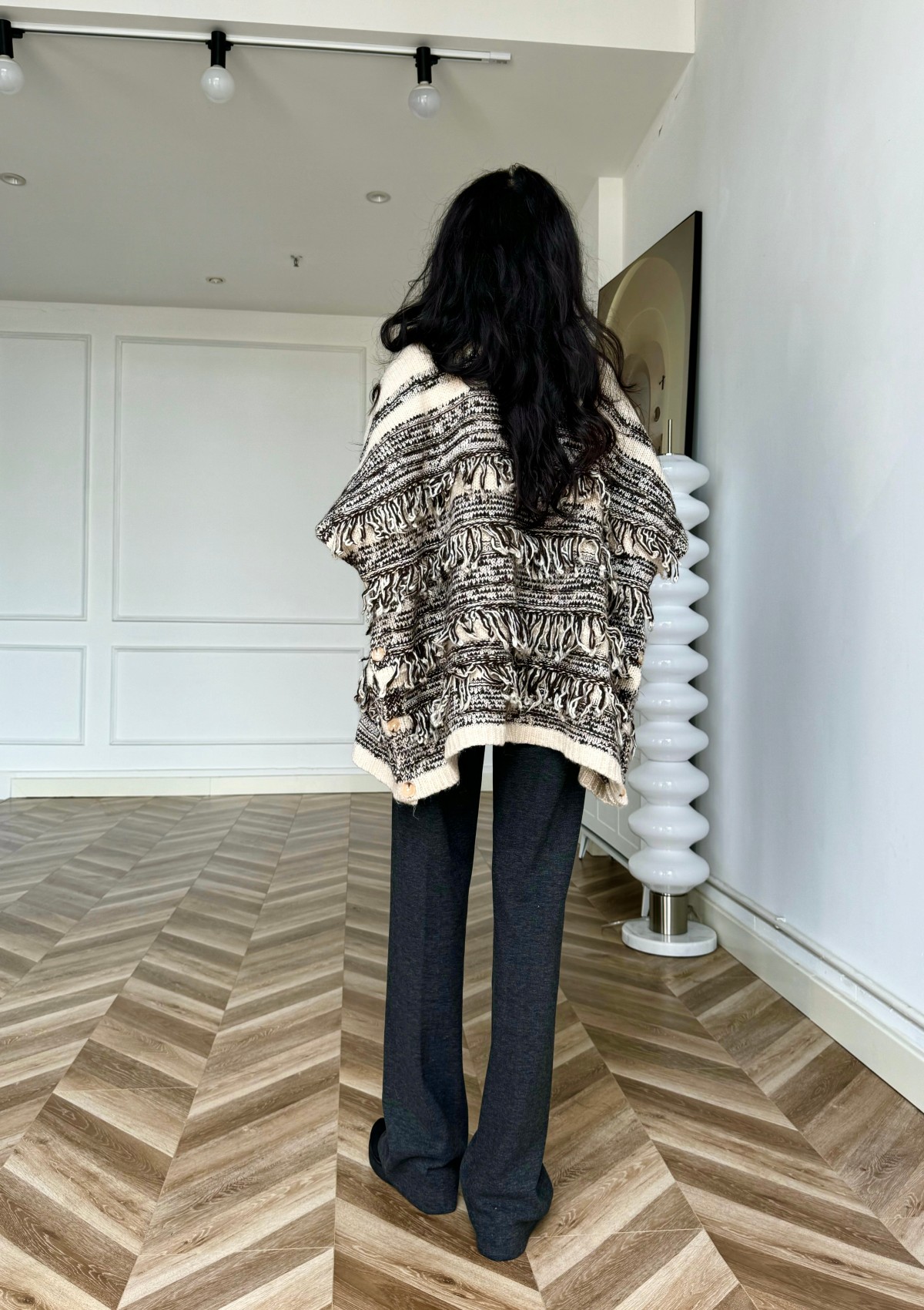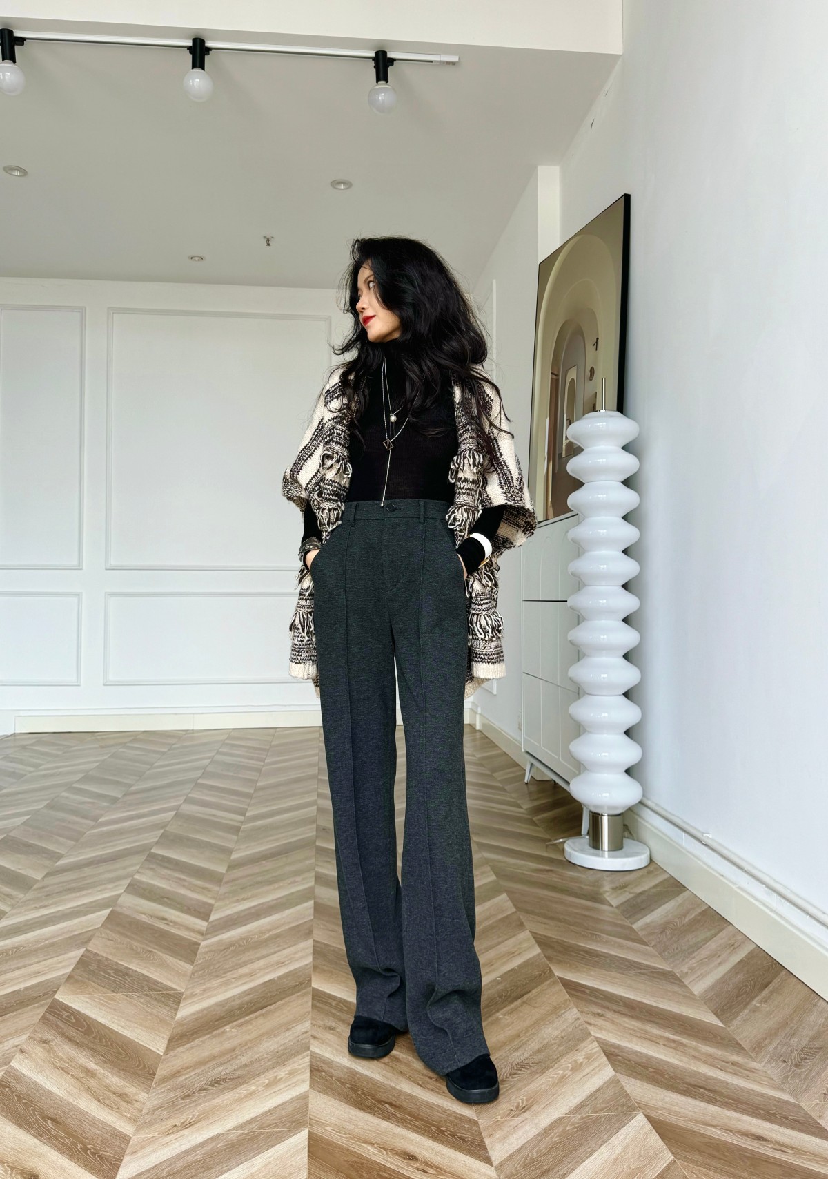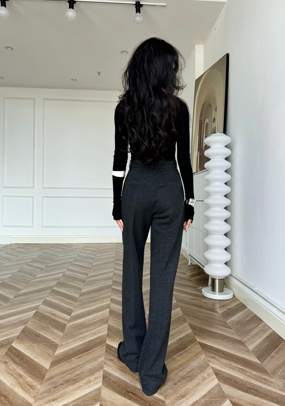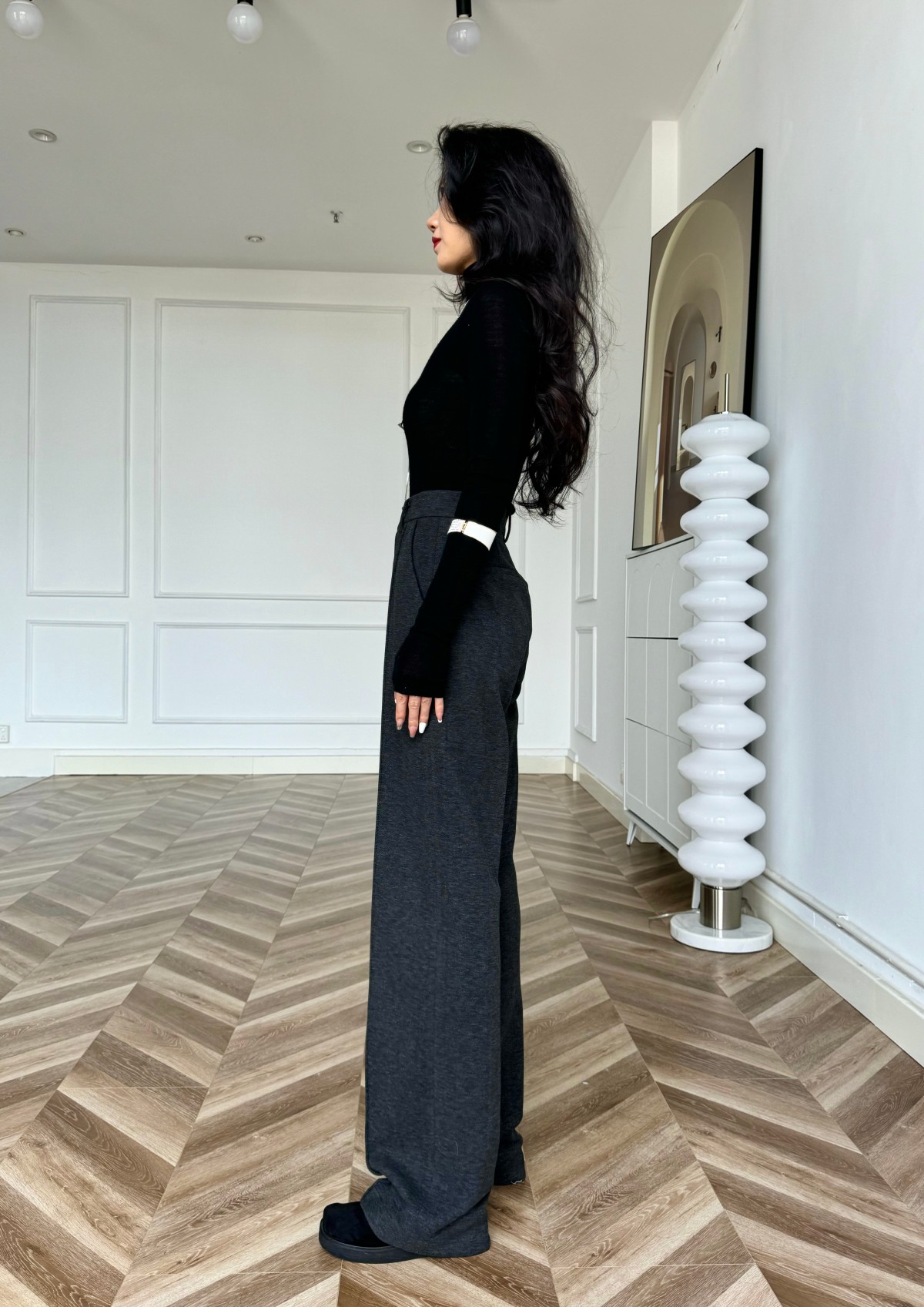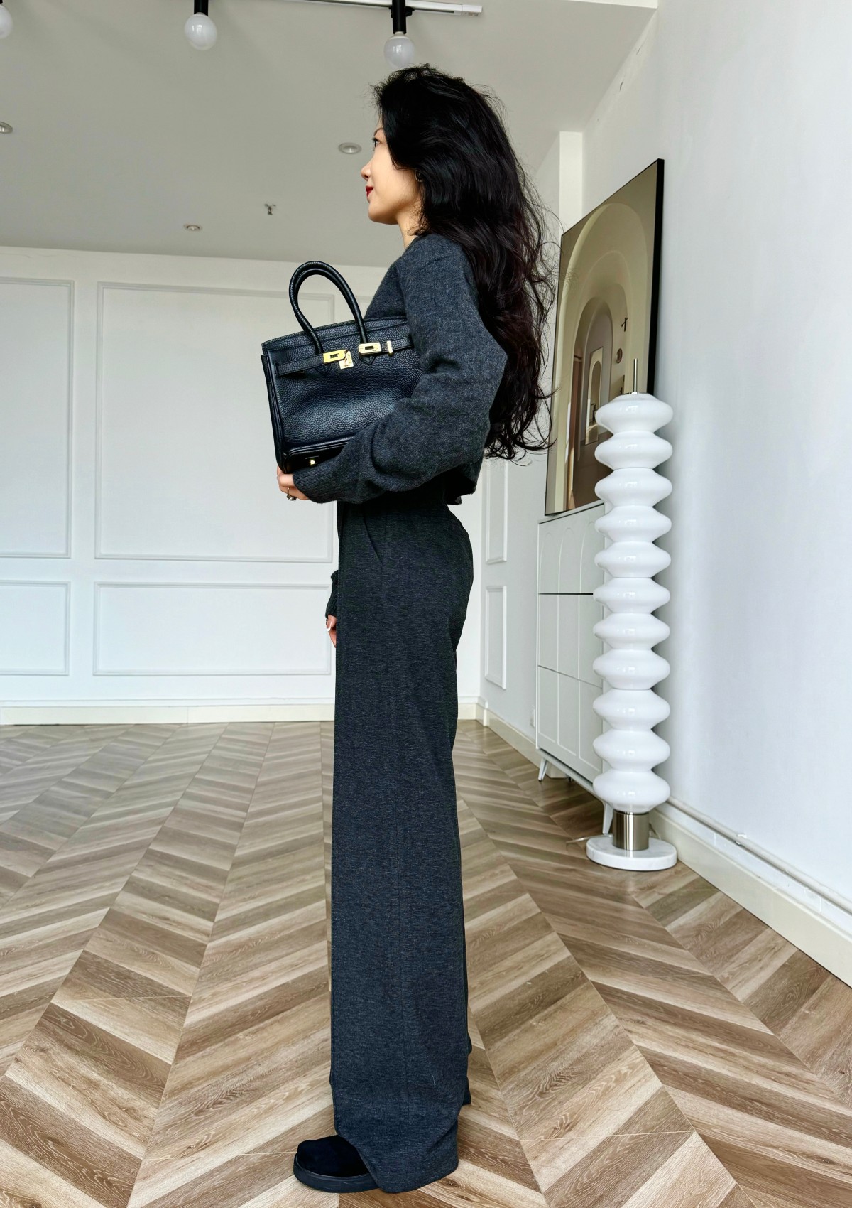 It's a Pair of Slim-Fit, No-Maintenance, Thickened Cashmere-Blend, High-Waisted, Gray, Toothpick-Striped, Warm, Stylish, Straight-Leg Long Trousers