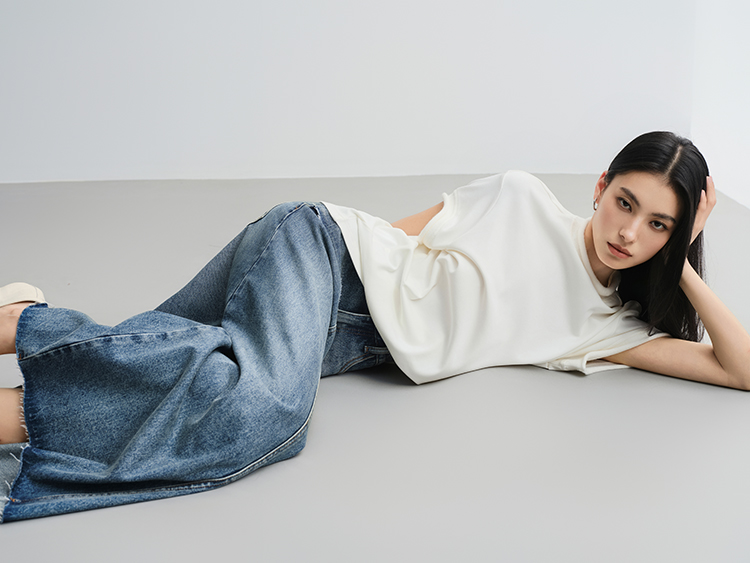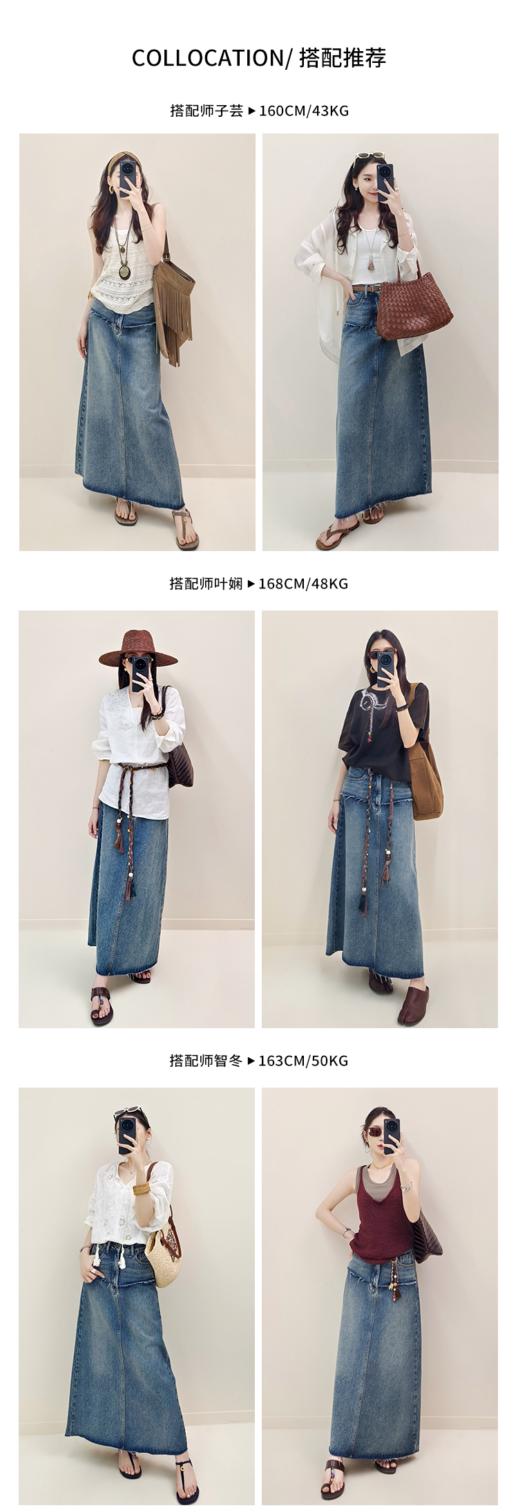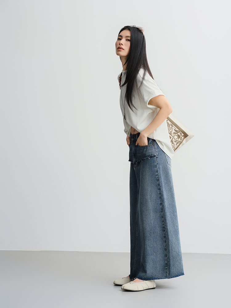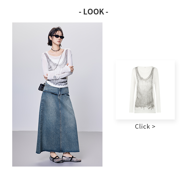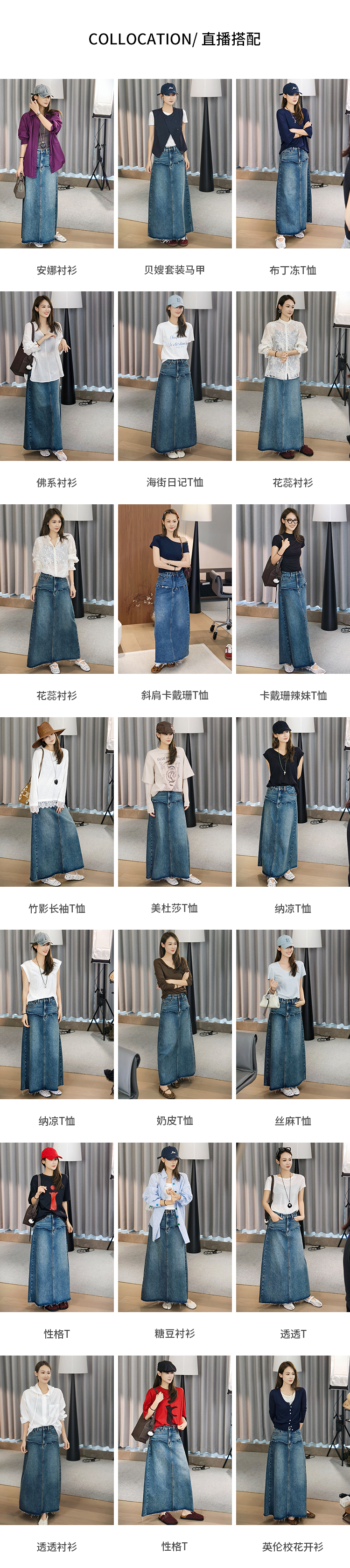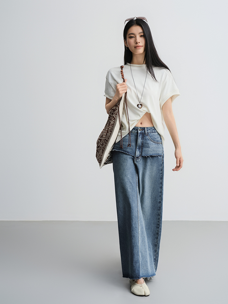 Meiyang【In Stock】Blue Denim Skirt Denim Faux Two-Piece Frayed Hem Slit Mid-Length - Thursday