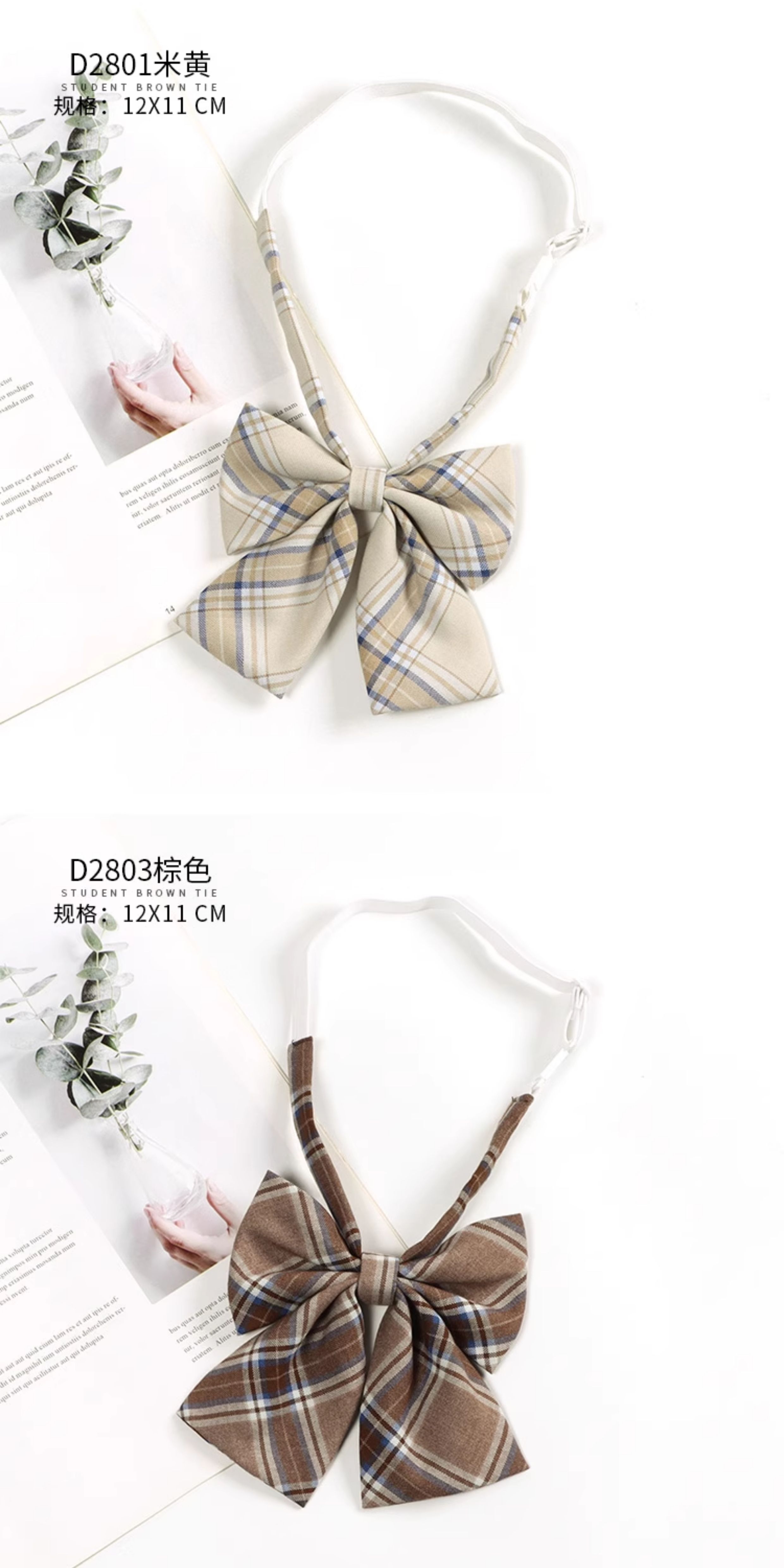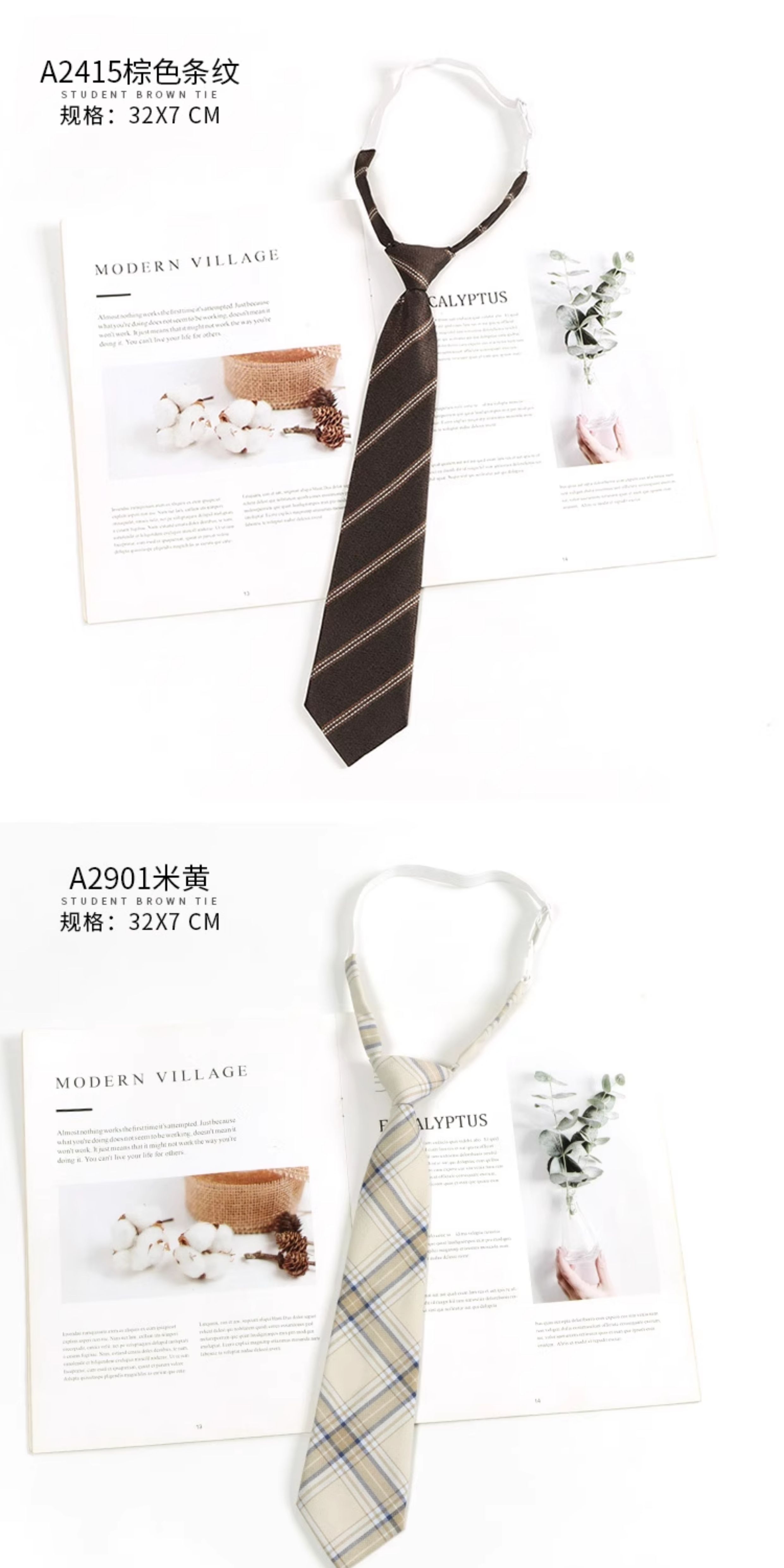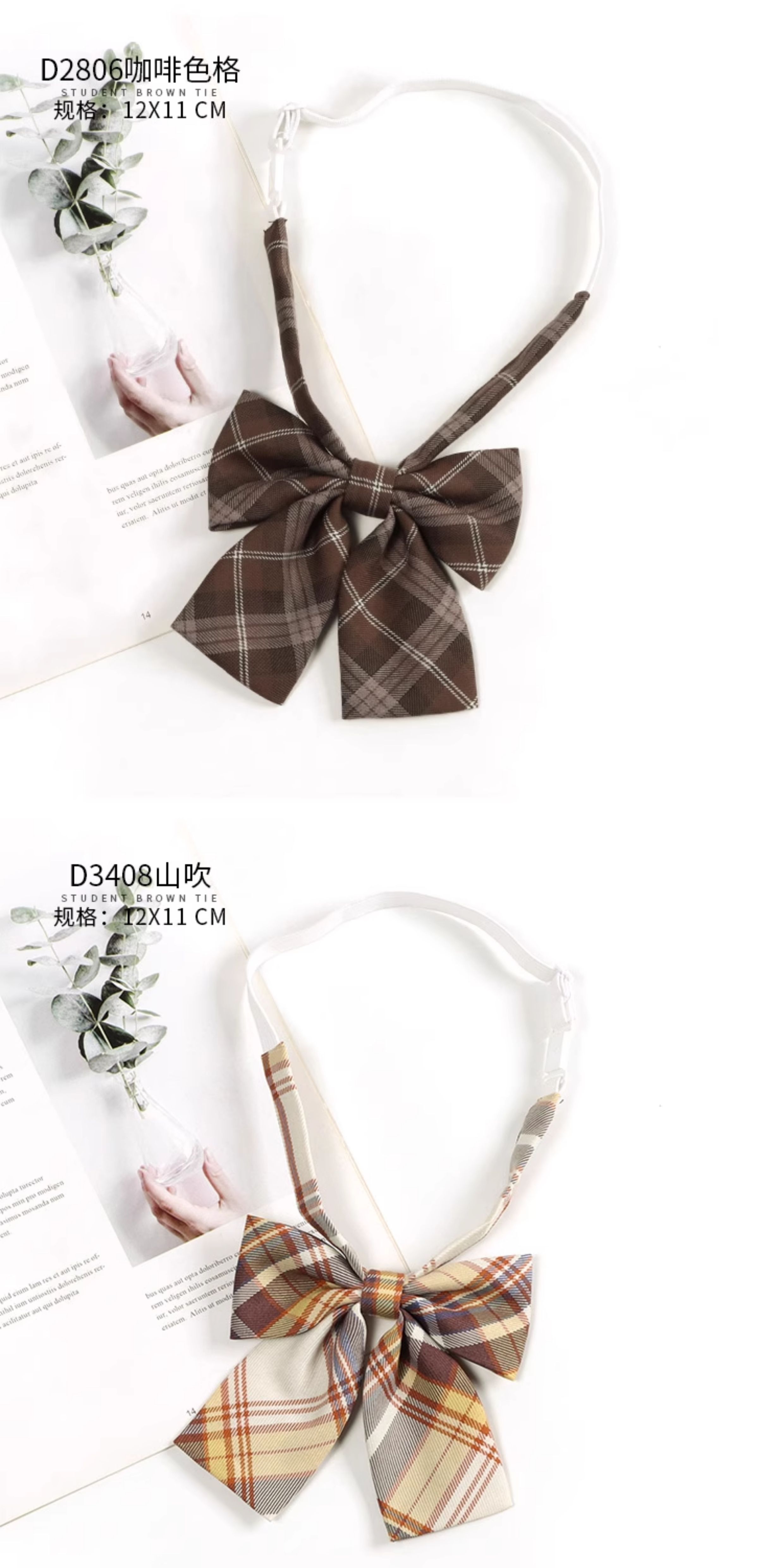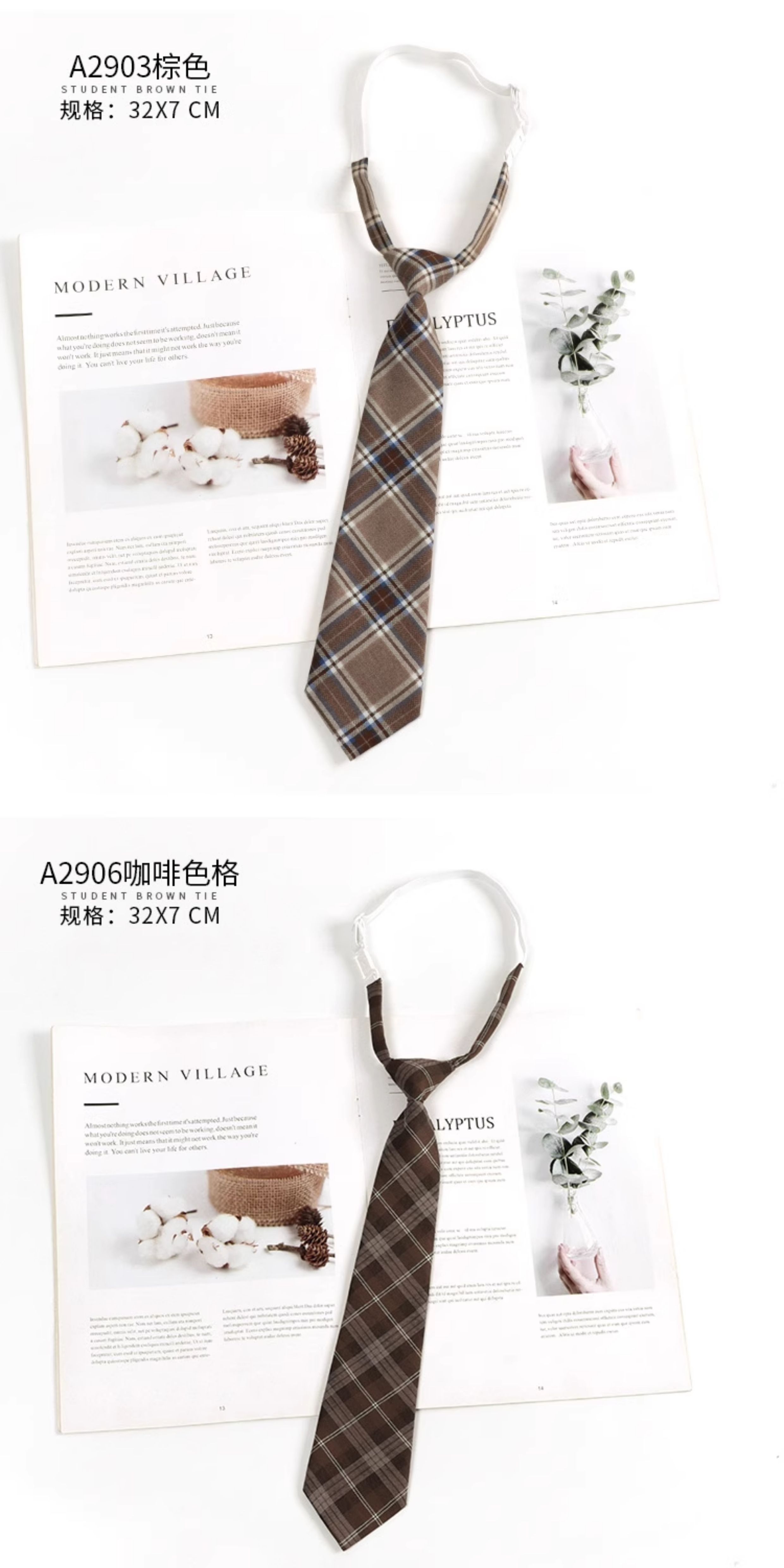 Brown Jk Plaid Striped Lazy Tie-Free College Style Tie for Women, Retro Academic Uniform Bow Tie Accessory