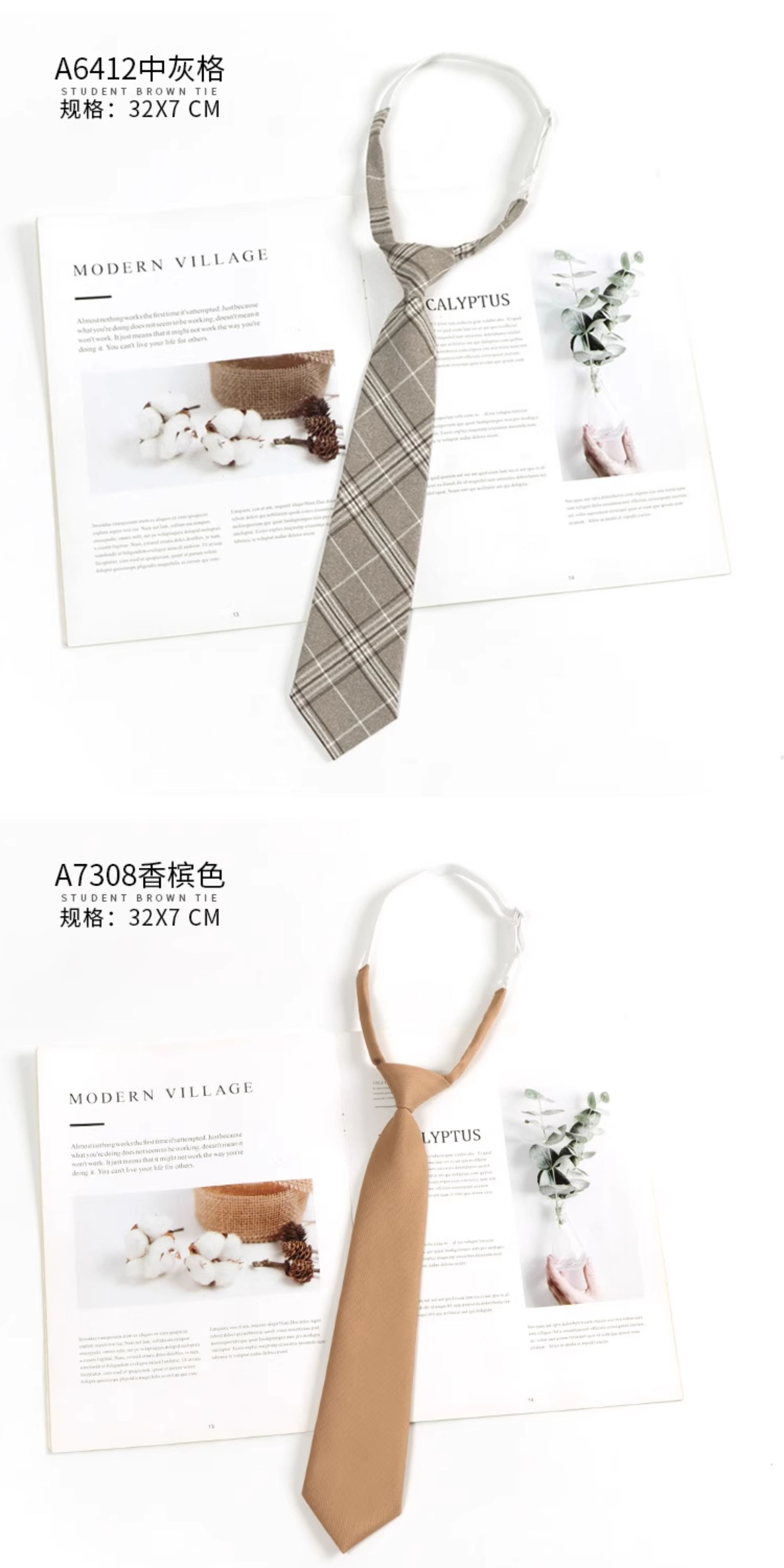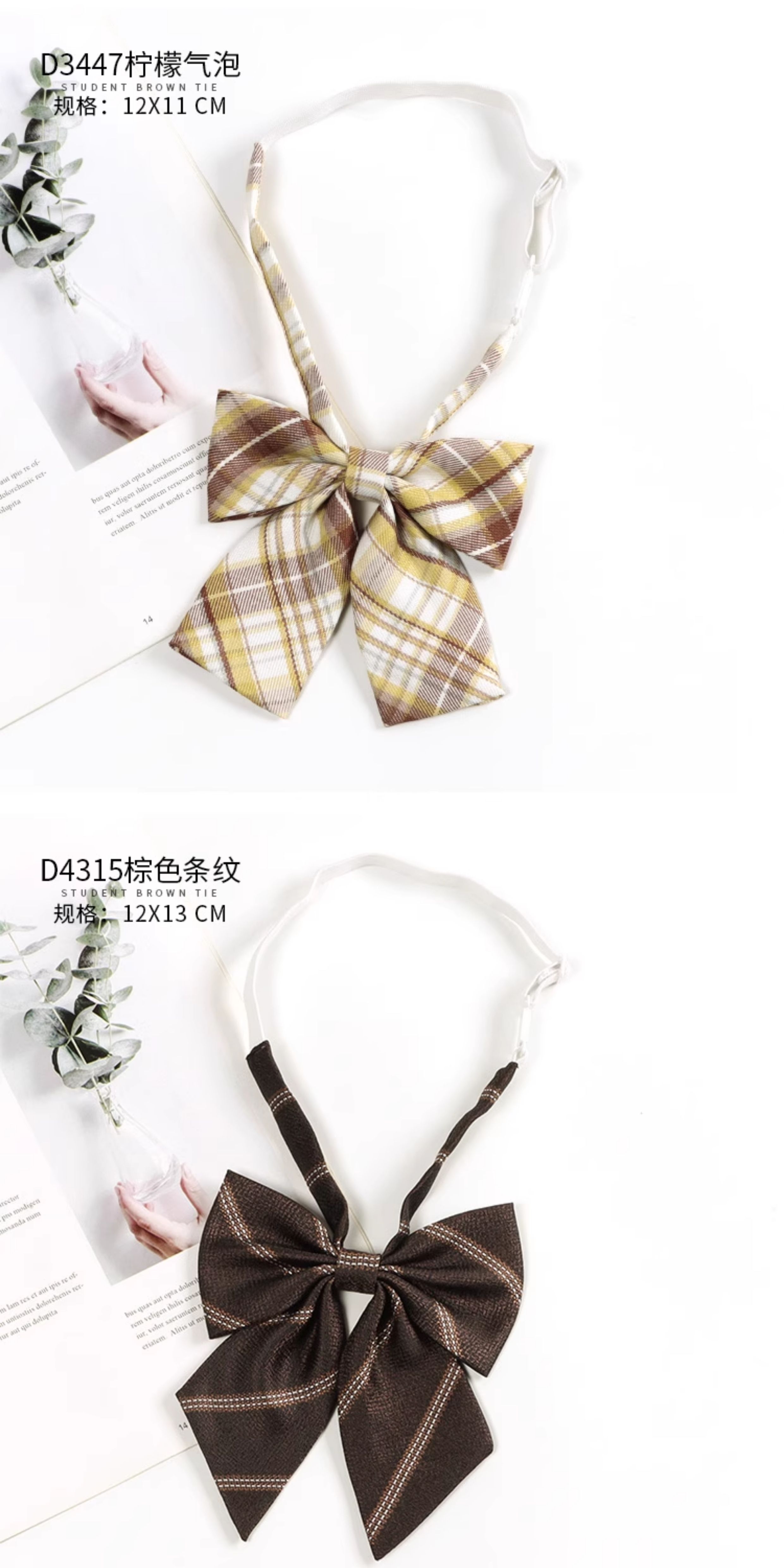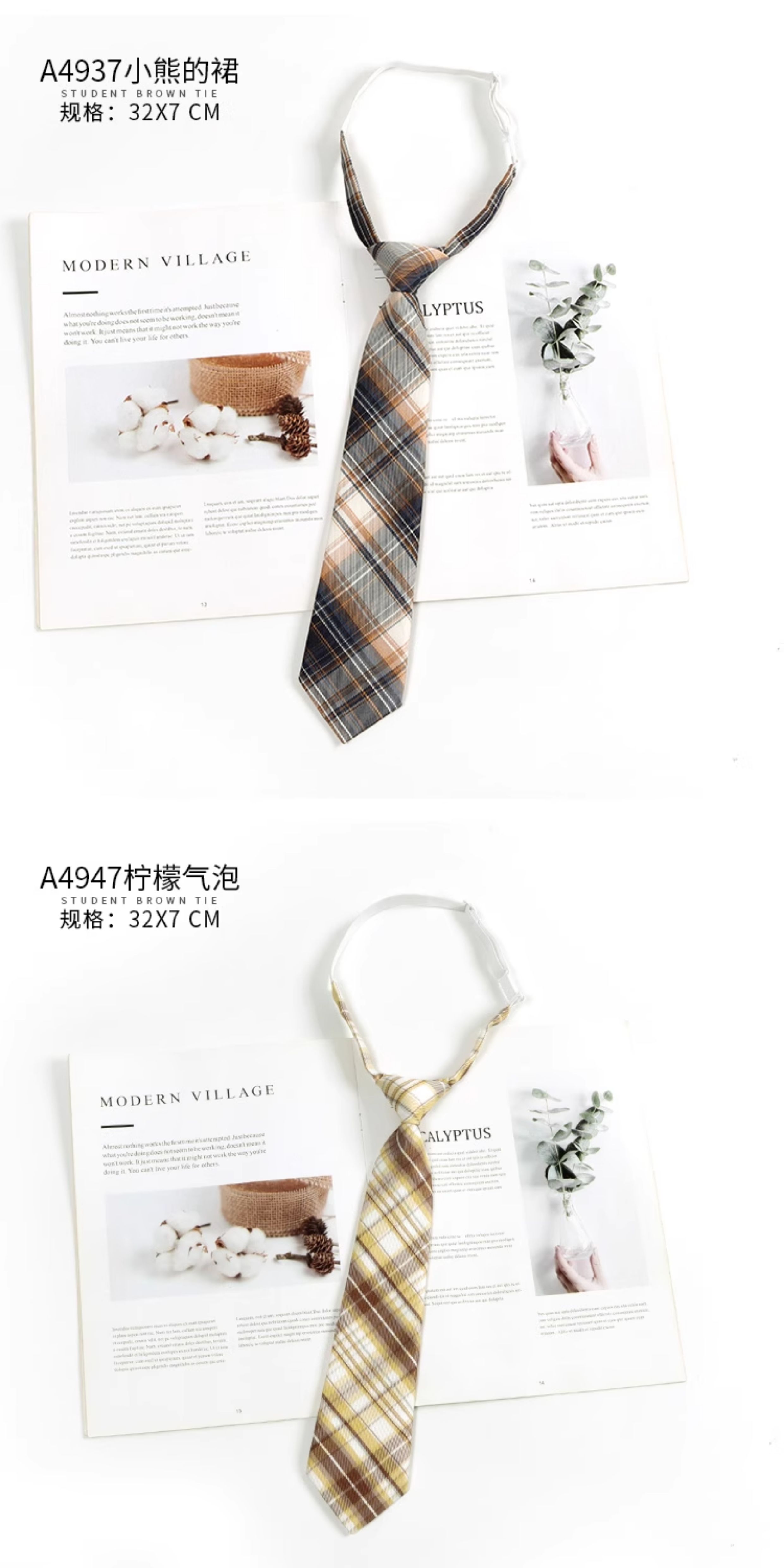 Brown Jk Plaid Striped Lazy Tie-Free College Style Tie for Women, Retro Academic Uniform Bow Tie Accessory