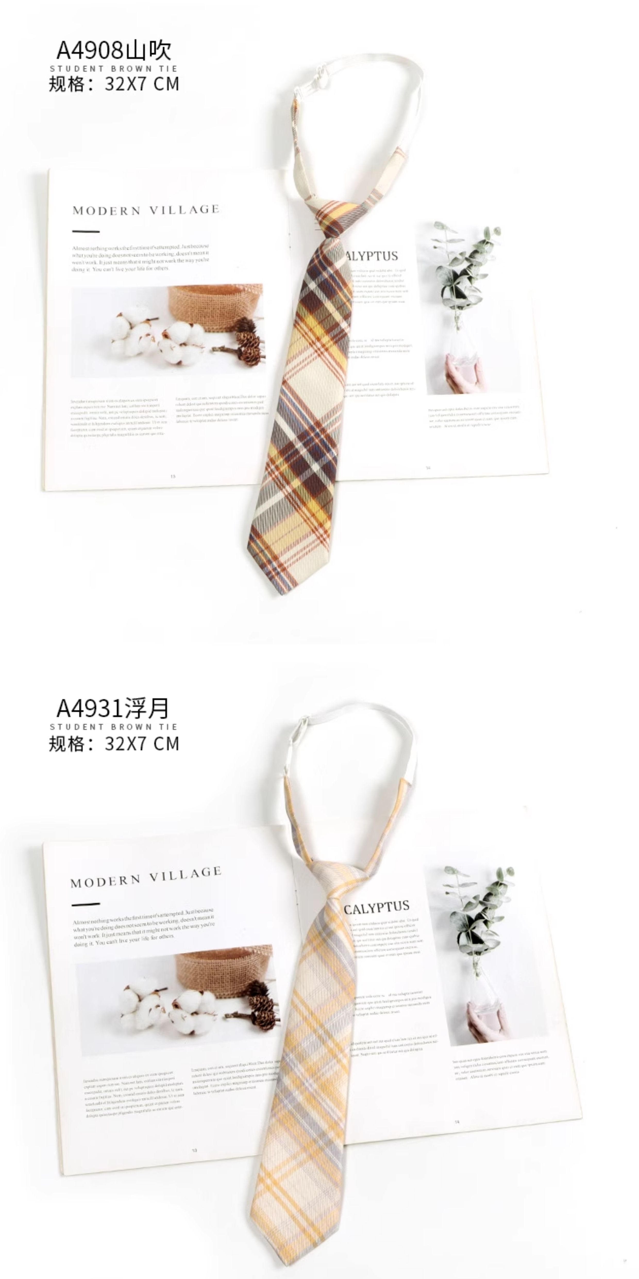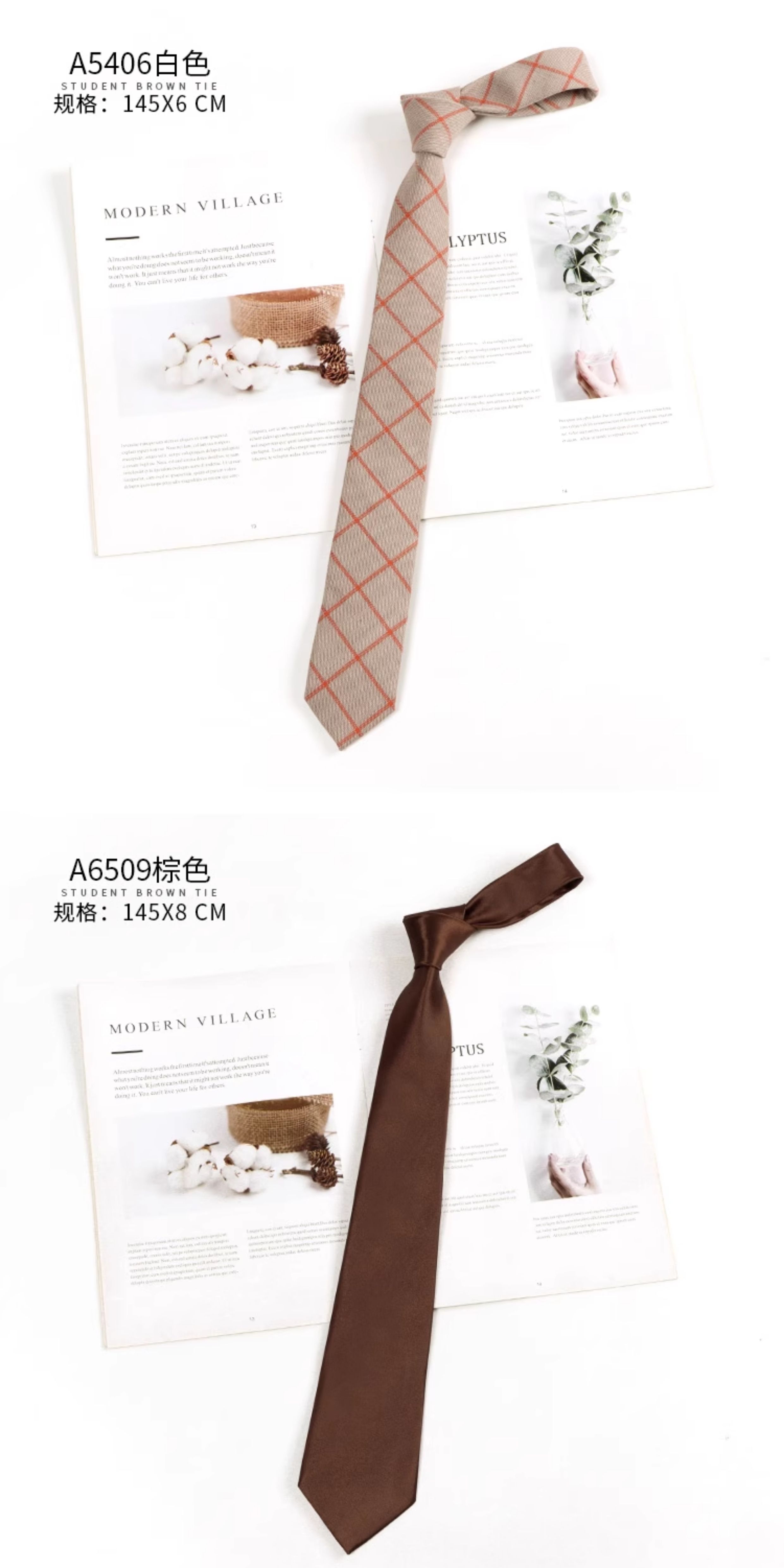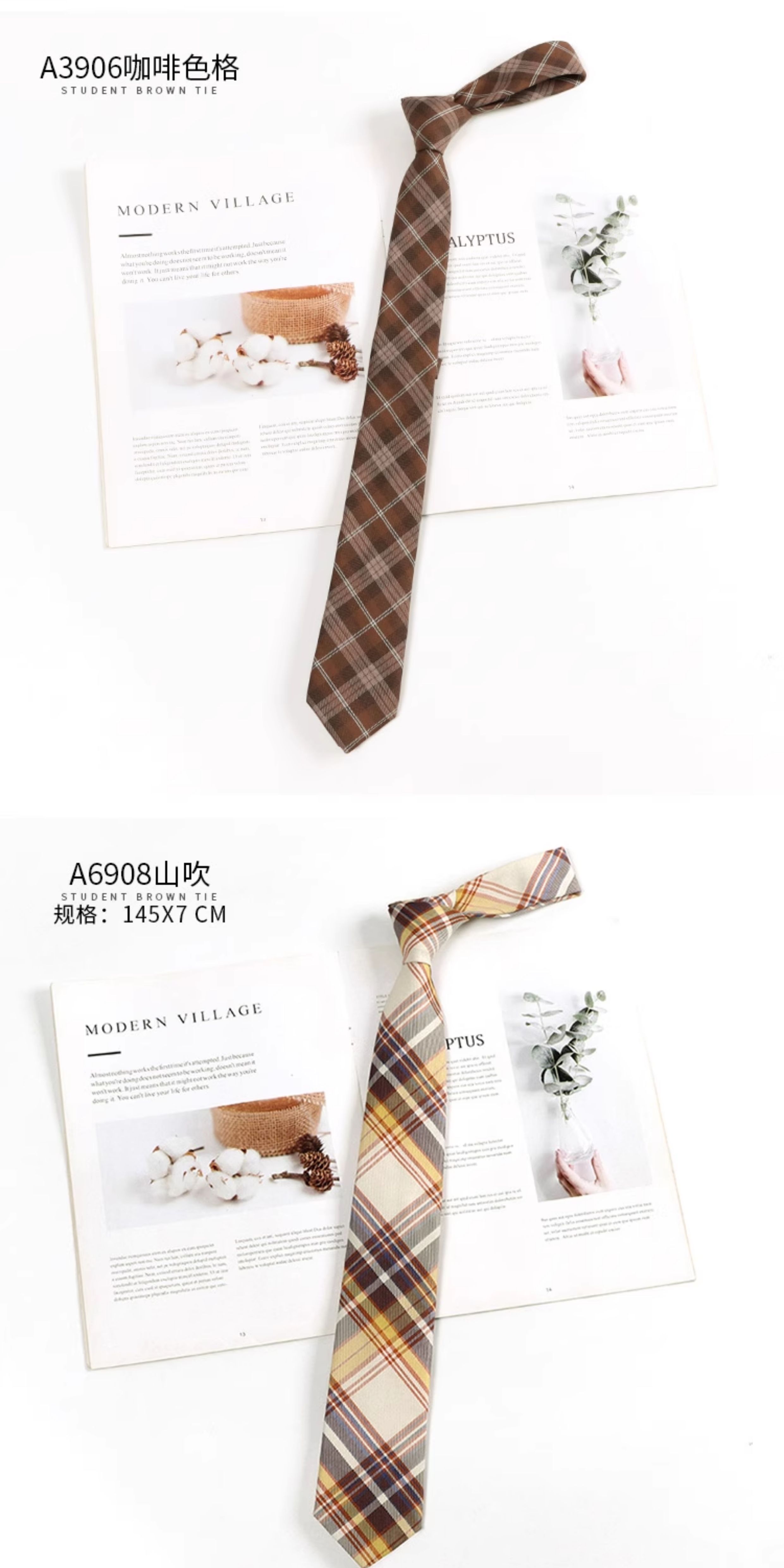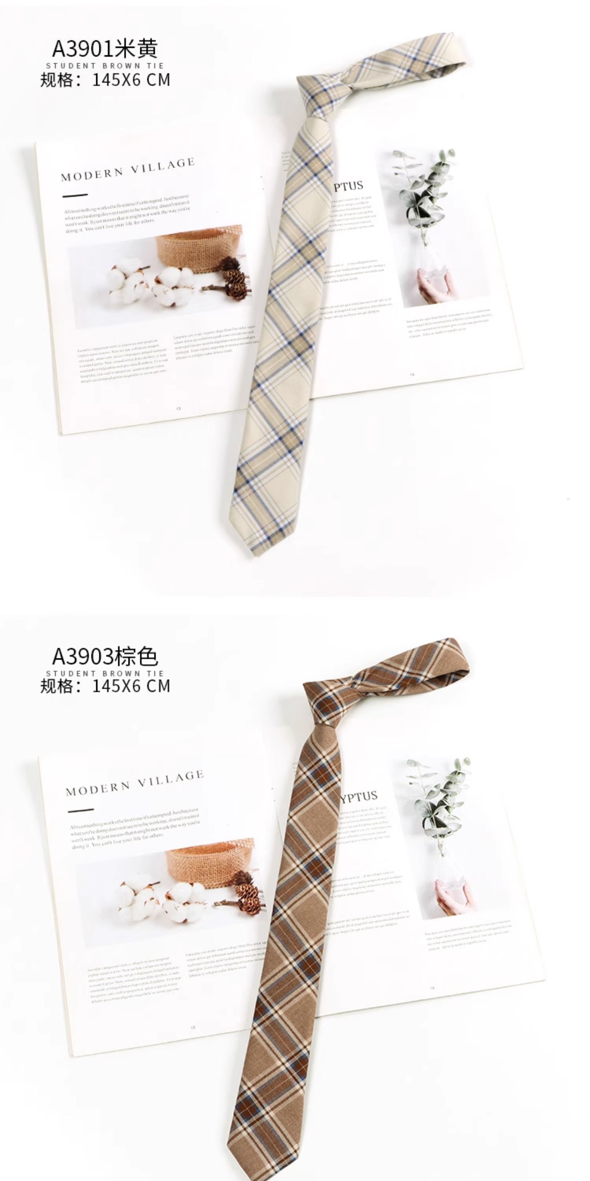 Brown Jk Plaid Striped Lazy Tie-Free College Style Tie for Women, Retro Academic Uniform Bow Tie Accessory