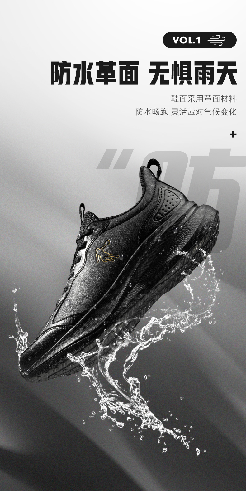 Jordan Leather-Covered Fleece-Lined Waterproof Winter Sports Shoes Men's Running Shoes Lightweight Soft-Soled Shock-Absorbing Casual Black Running Shoes