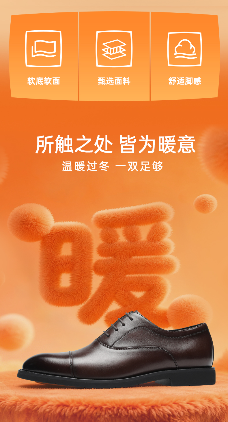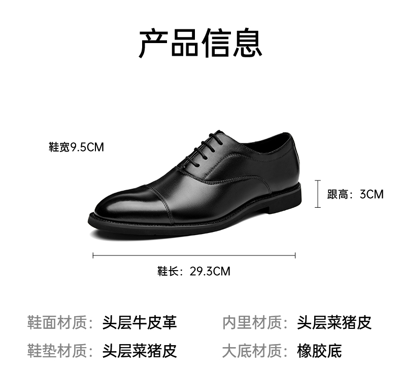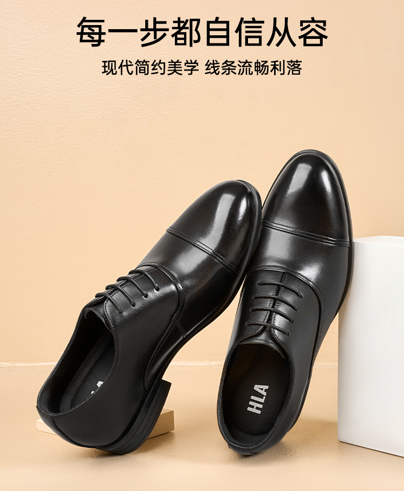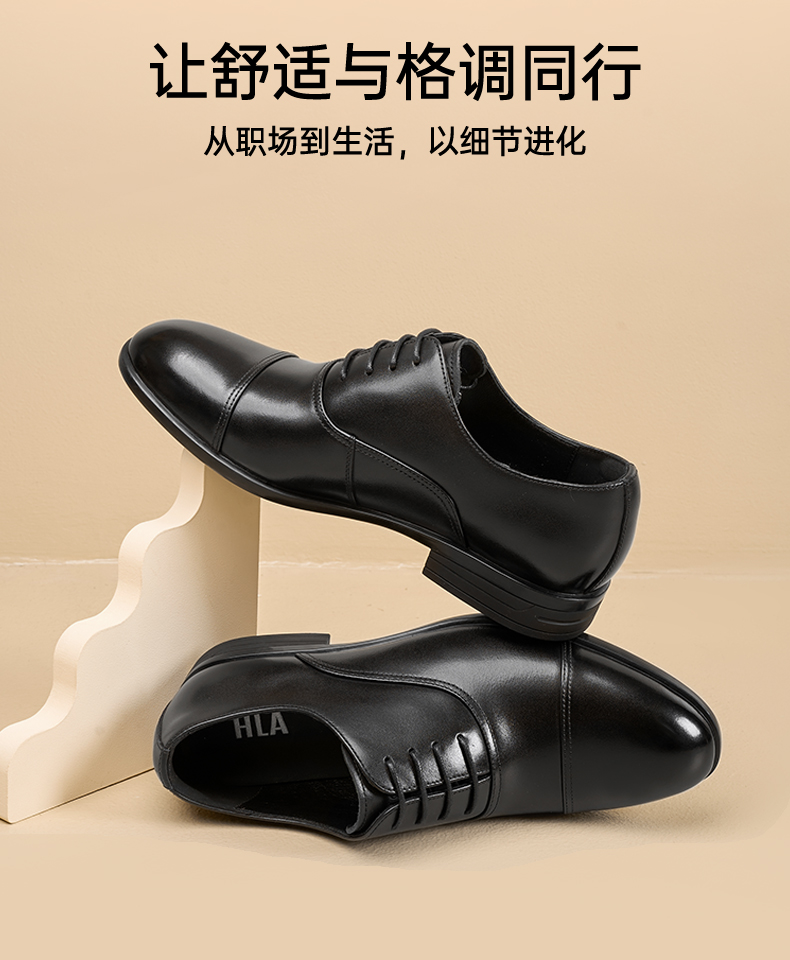 Hla/Heilan House Men's Genuine Leather Shoes New Autumn and Winter Fleece-Lined Business Three-Joint Leather Shoes Formal Wedding Groom Shoes
