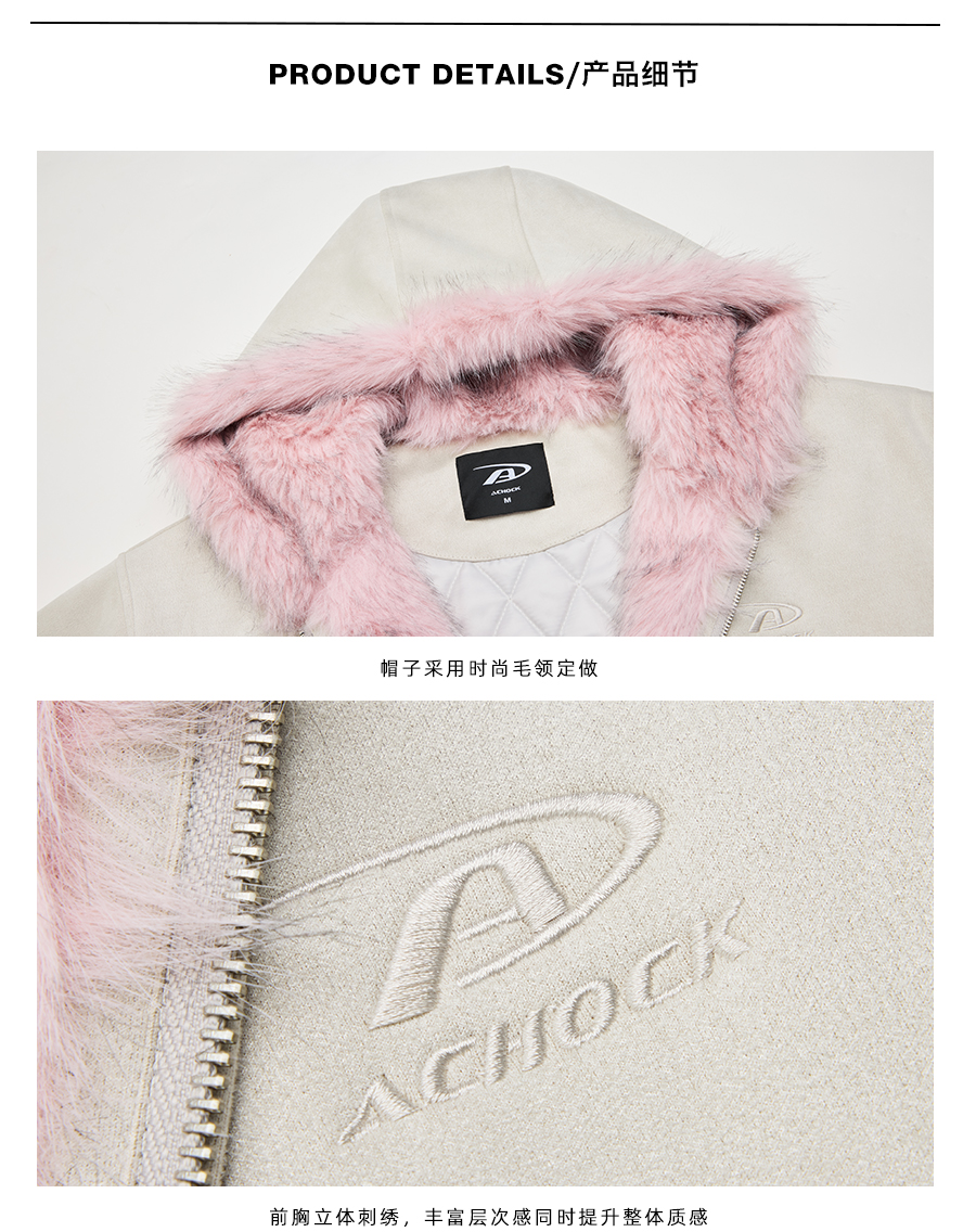 【Achock Official Store】Suede Thickened Warm Fur Collar Mountain Carving Cotton Jacket Heavy Cotton Coat Windproof Outerwear for Men