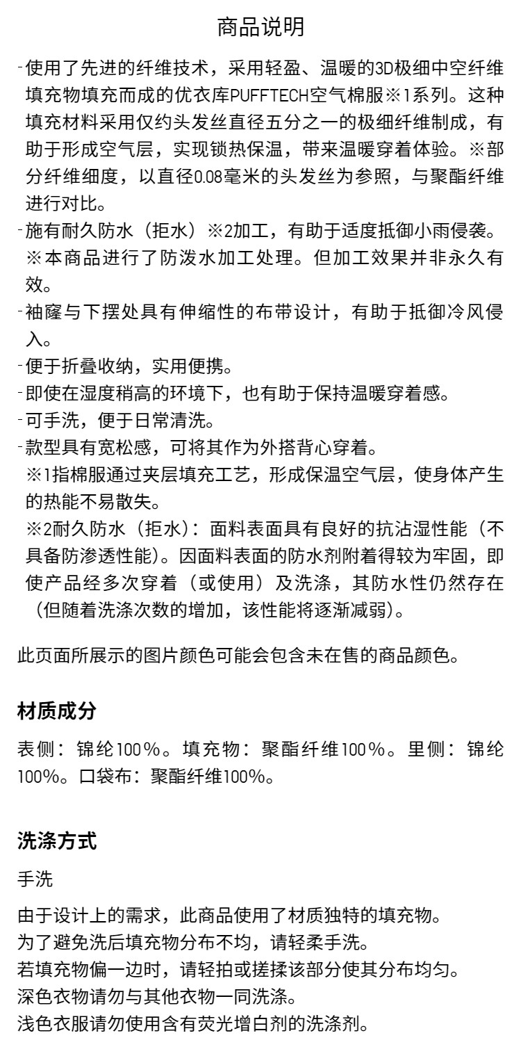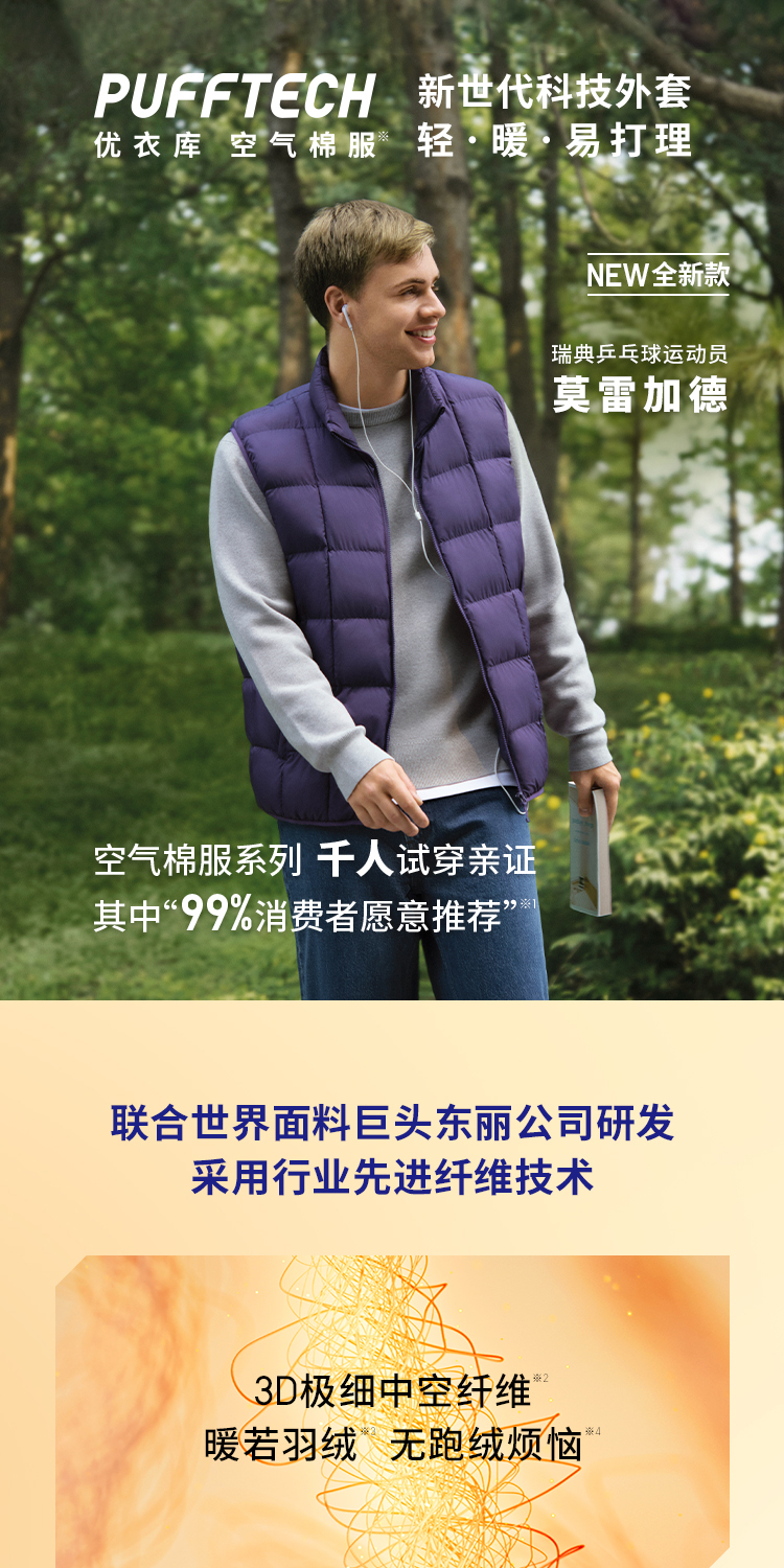 Uniqlo Moregard Same Style Unisex Pufftech Air Cotton Vest Portable Vest 483632