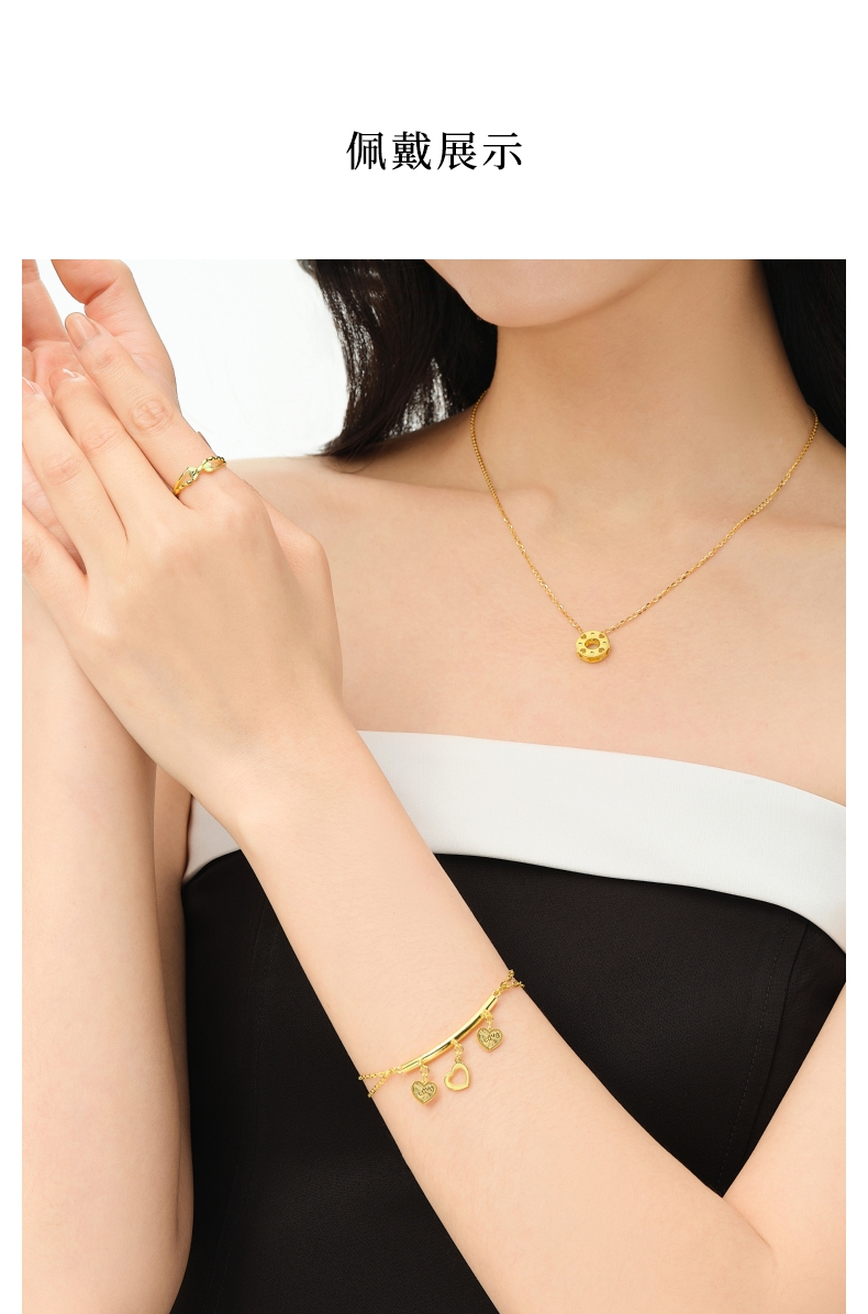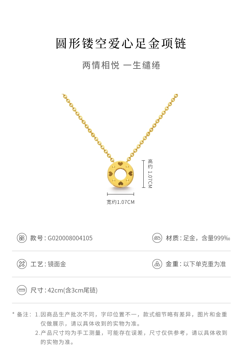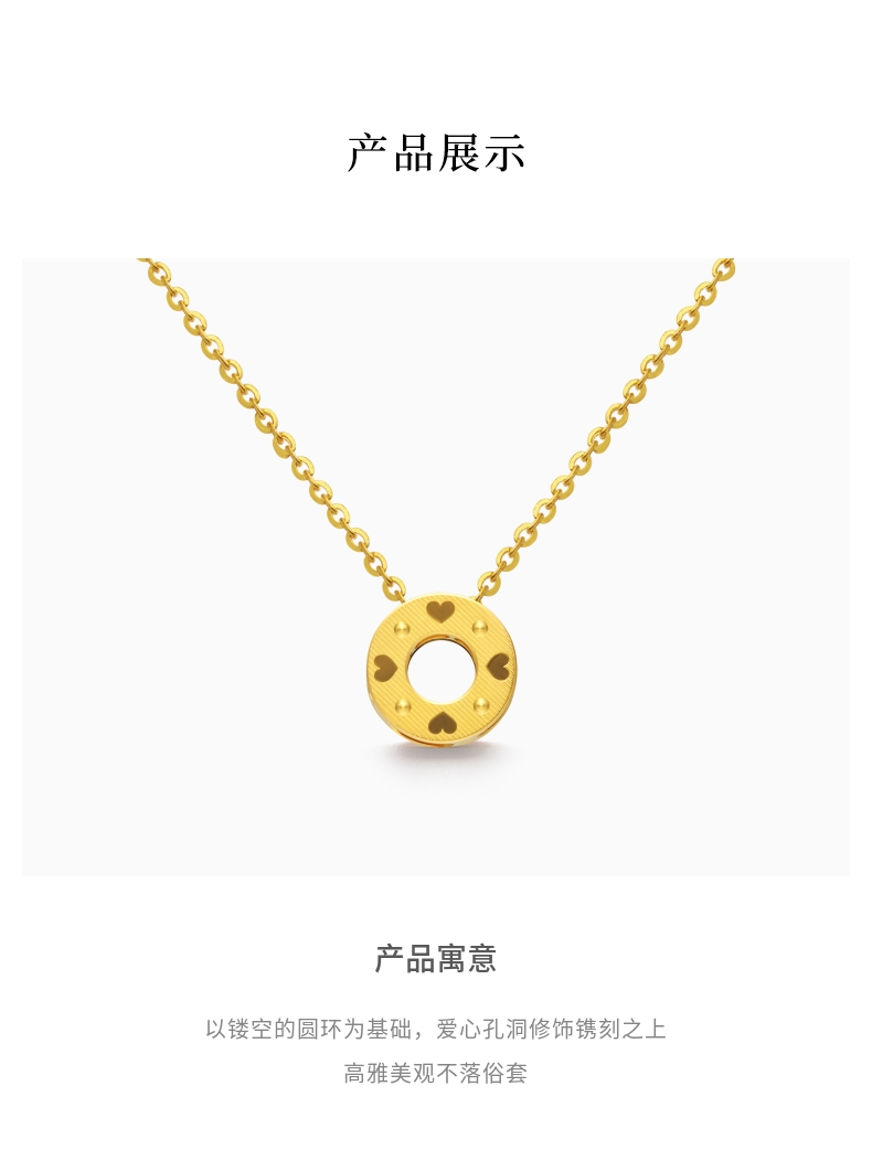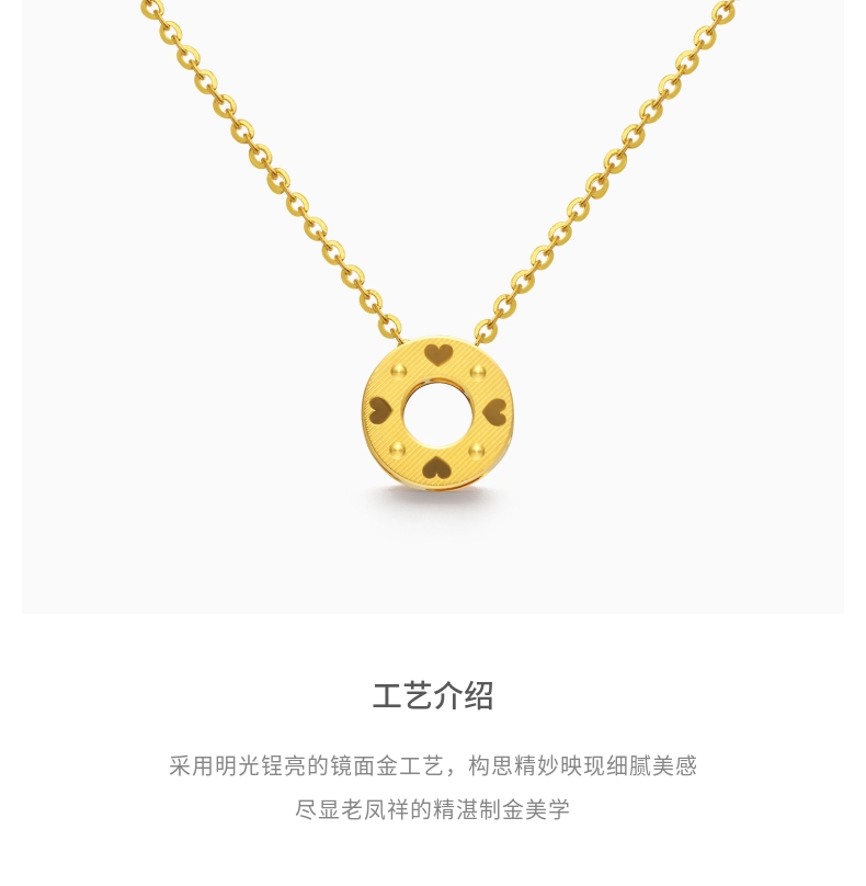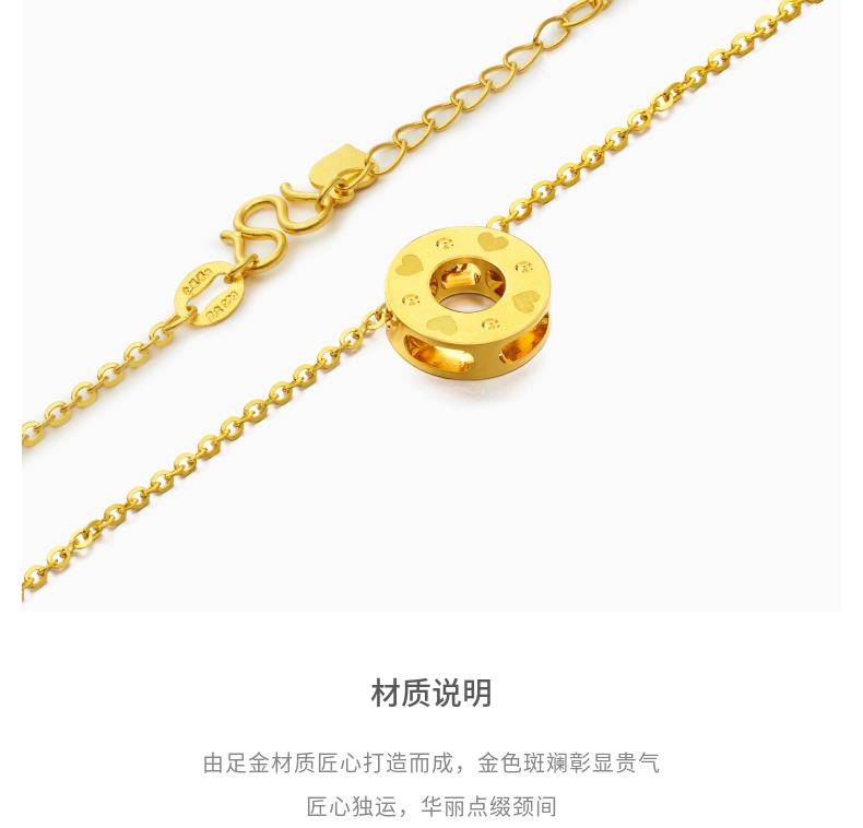 Lao Fengxiang Round Hollow Heart-Shaped Gold Necklace, Pure Gold, Priced as a Gift for Women