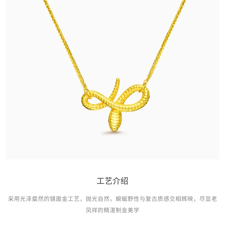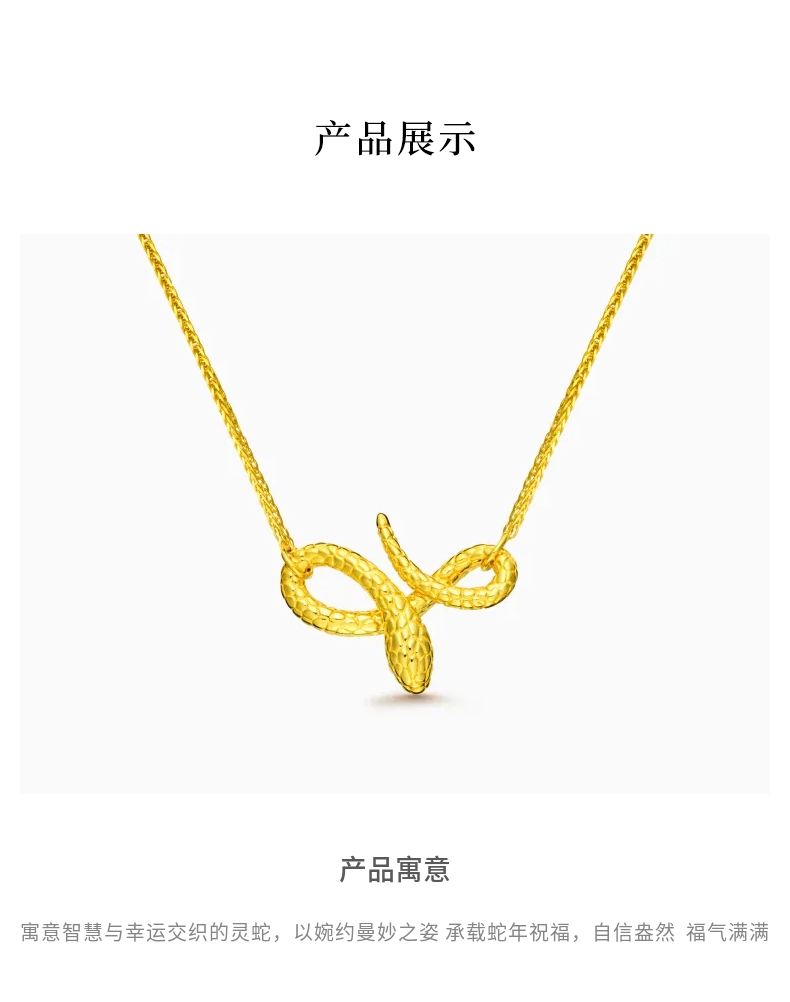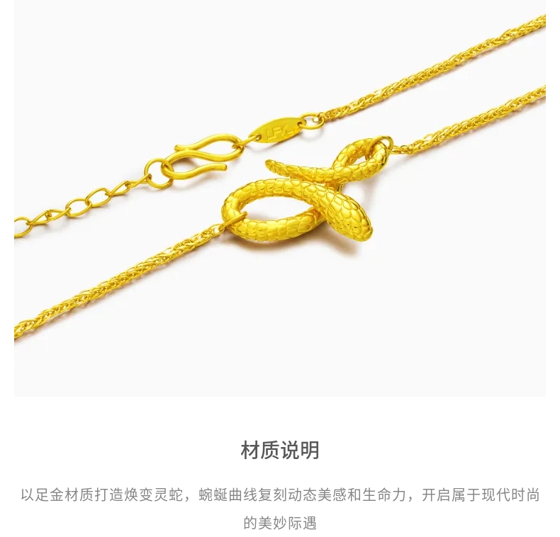Lao Fengxiang She Snake Series Gold Necklace Made of Pure Gold, Zodiac Snake Gift