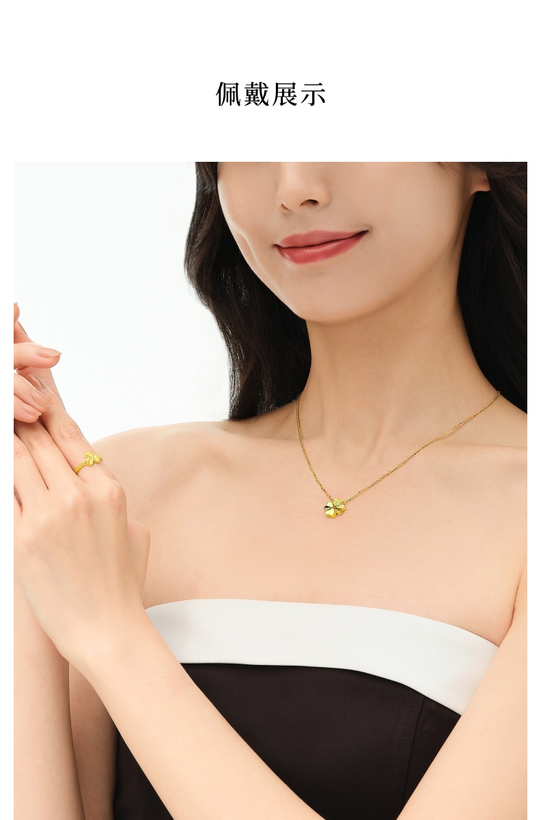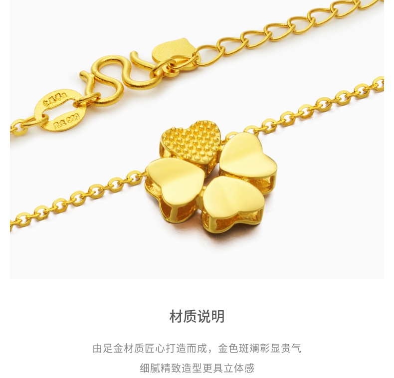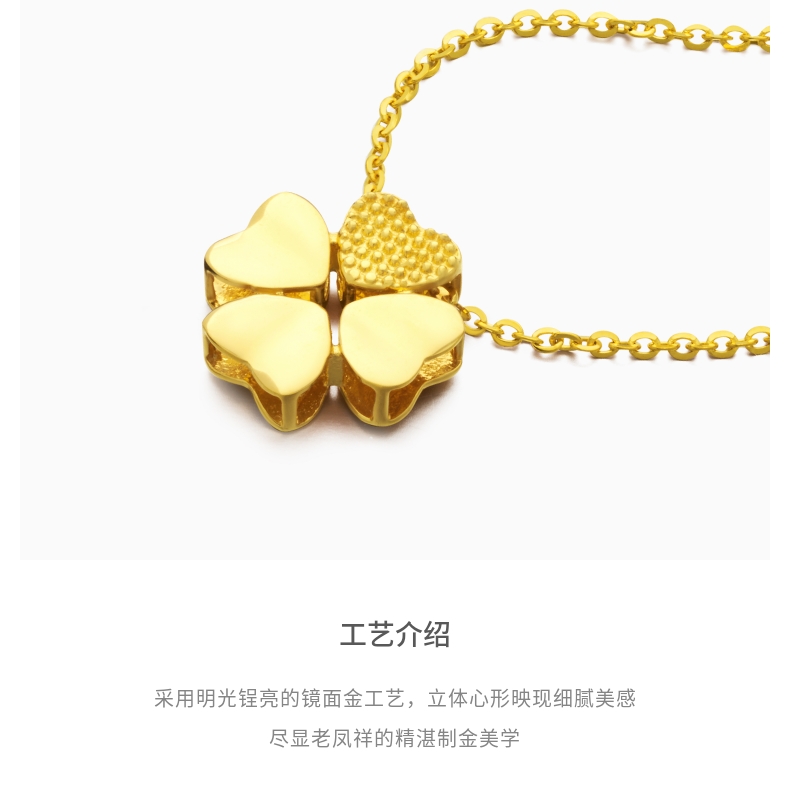 Lao Fengxiang Heart-Shaped Flower Leaf Grass Gold Necklace, Pure Gold, Women's Gift