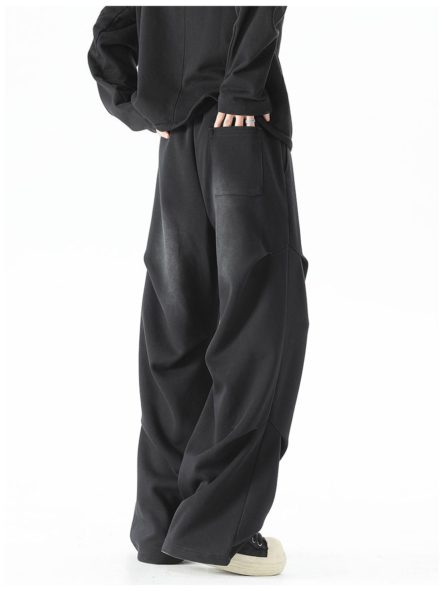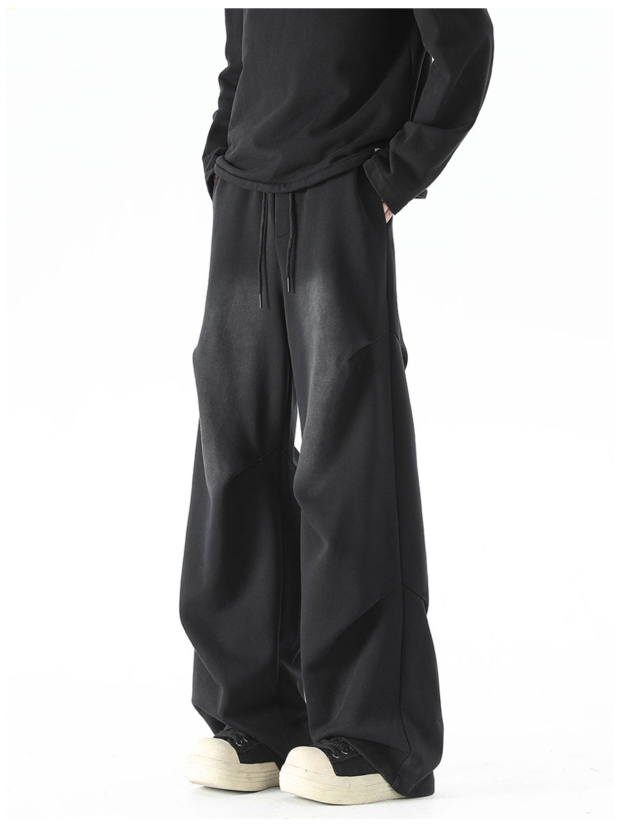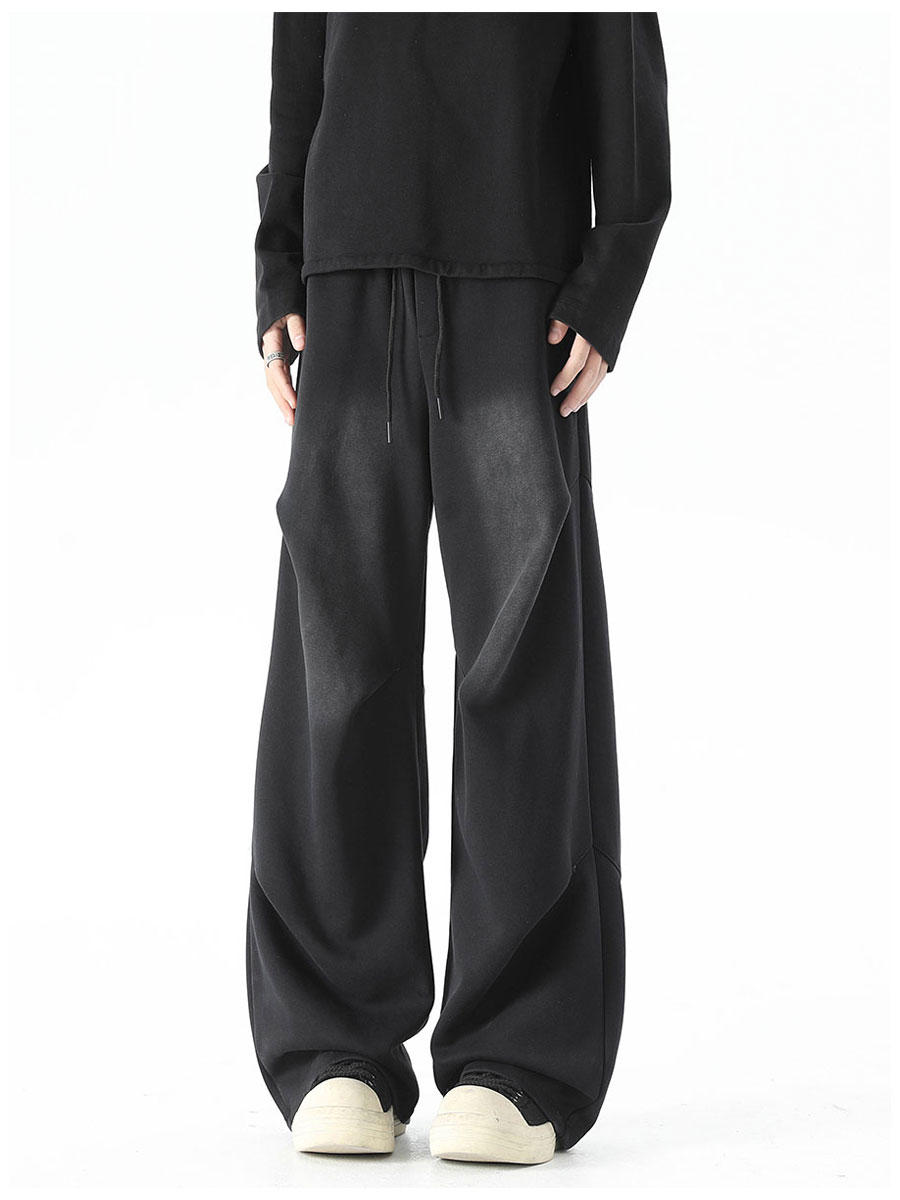 Huitoulv Winter Washed Heavyweight Sweatpants for Men, American Style Trendy Straight-Leg Drape Casual Sports Pants with Fleece Lining