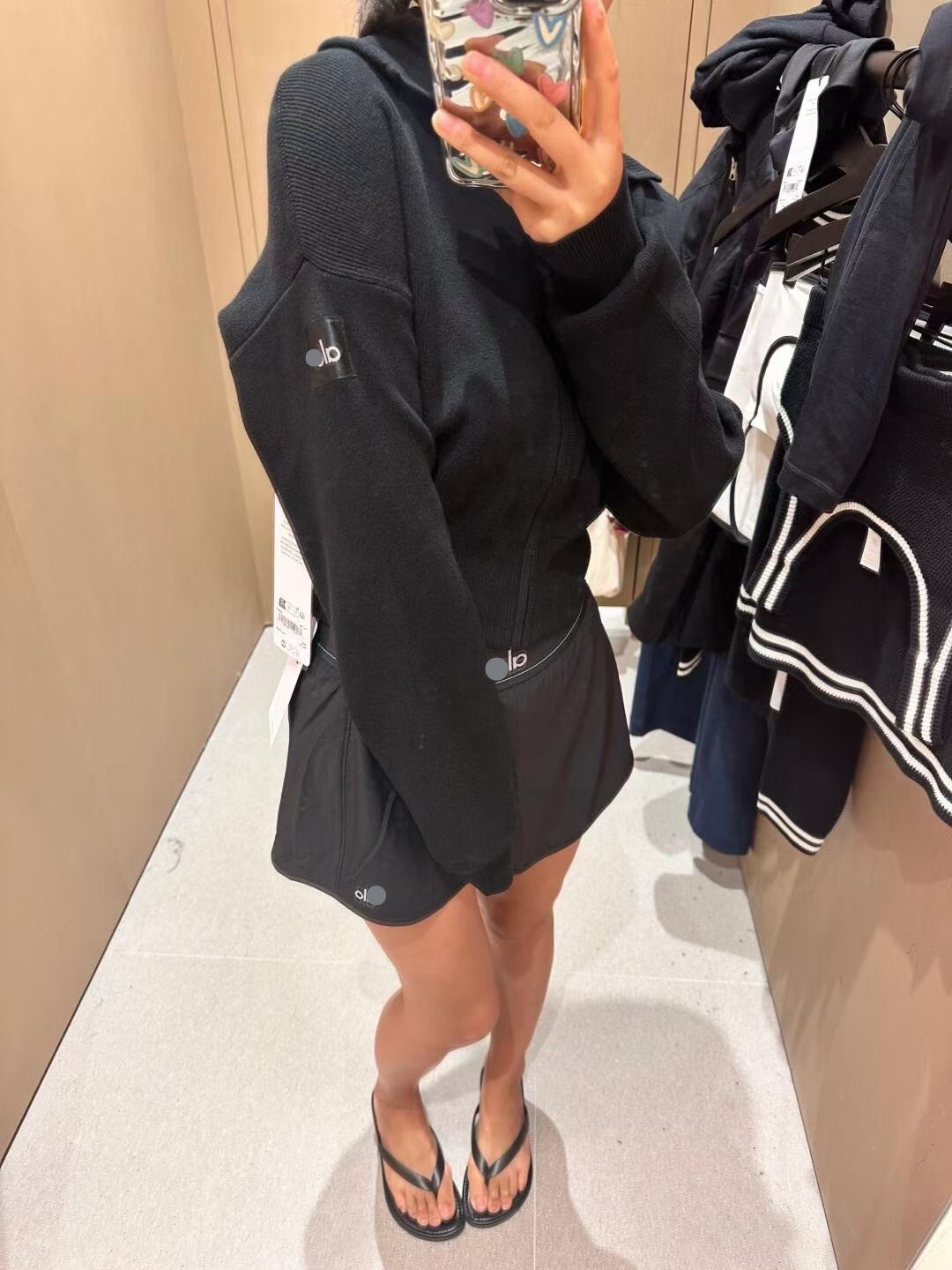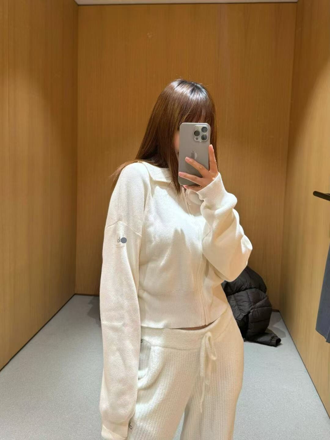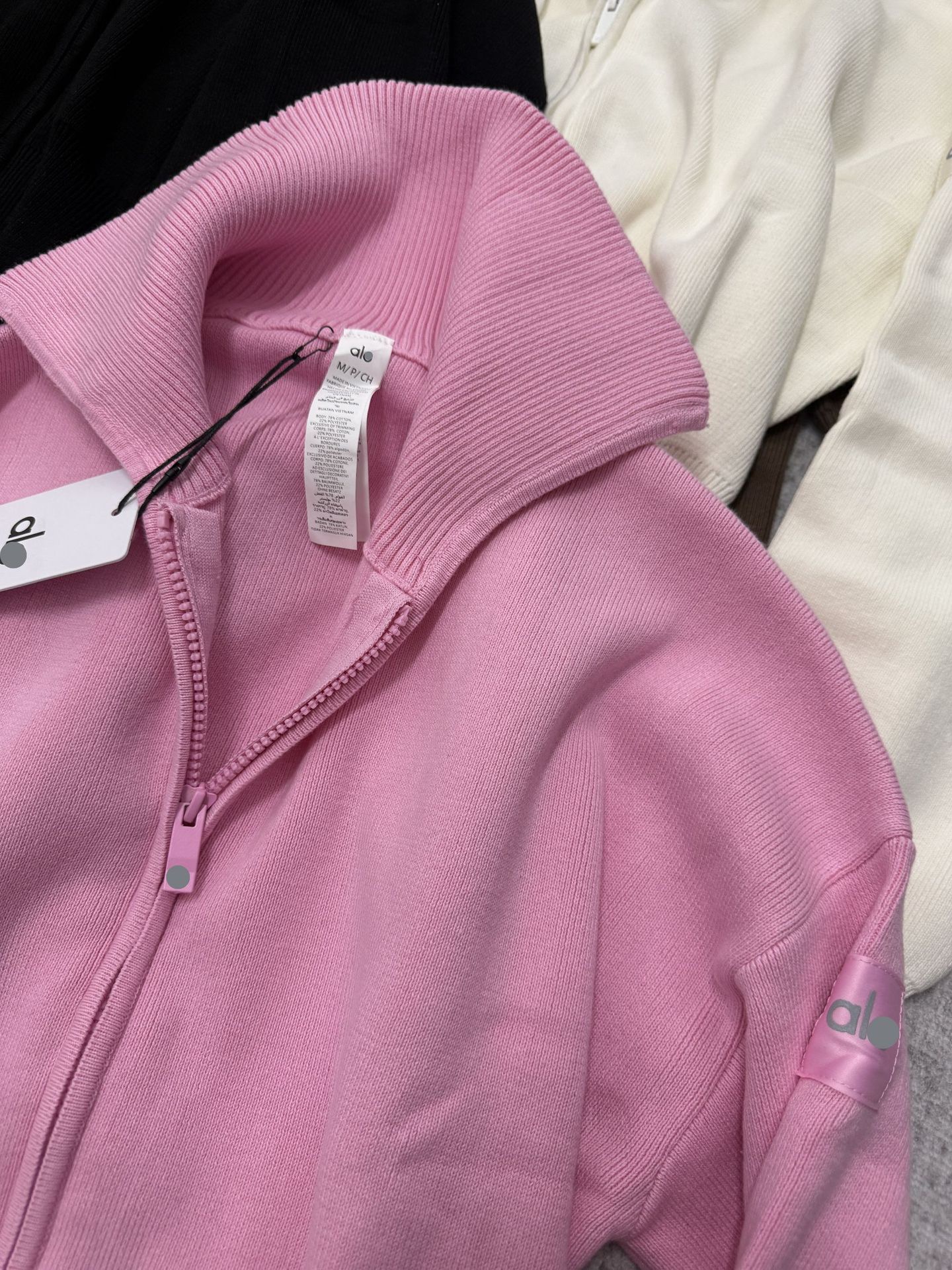 High-End Original Alo New Women's Zip-Up Cardigan Jacket, Knitted Solid Color Loose Casual Short Sweatshirt for Women