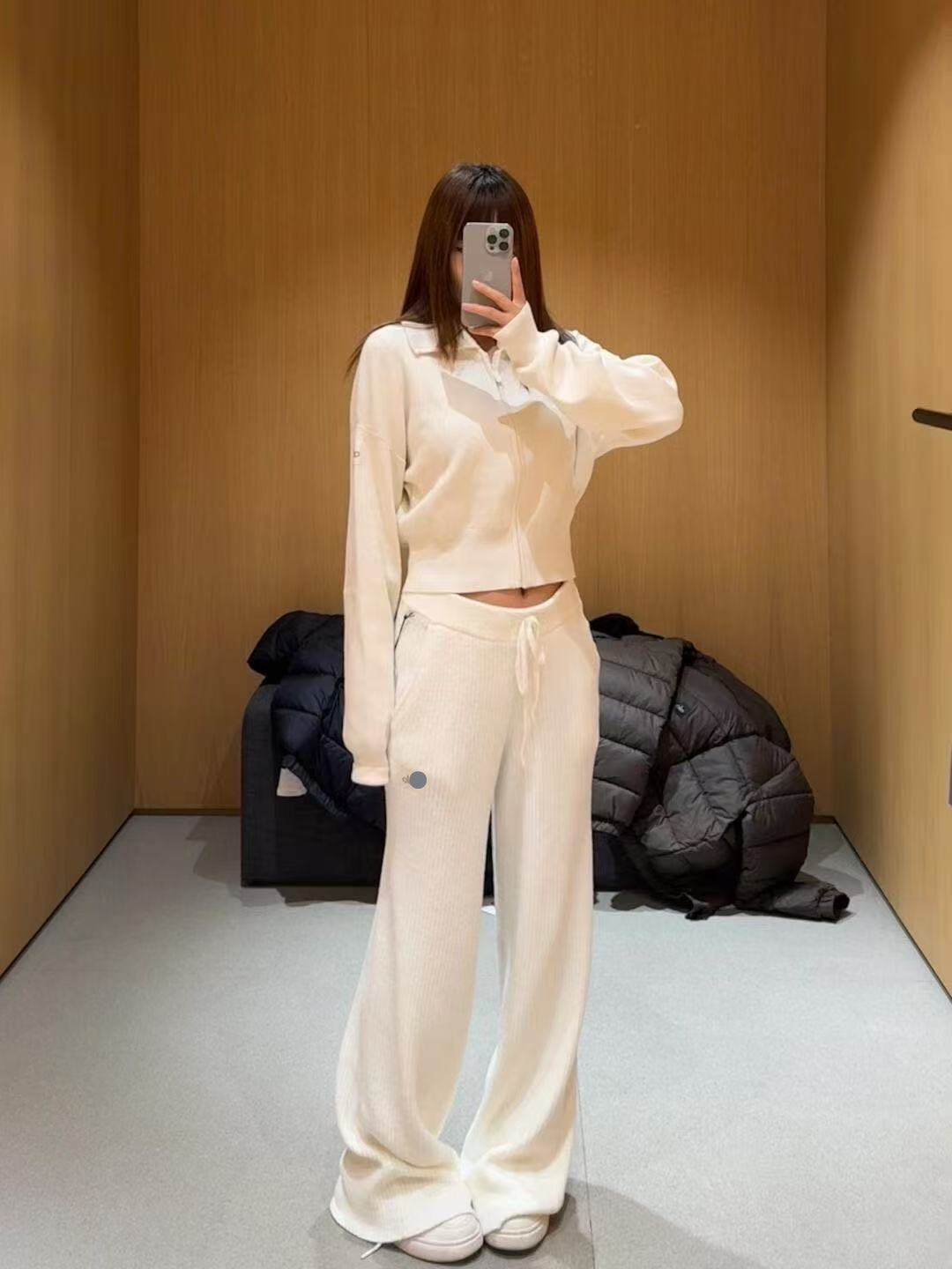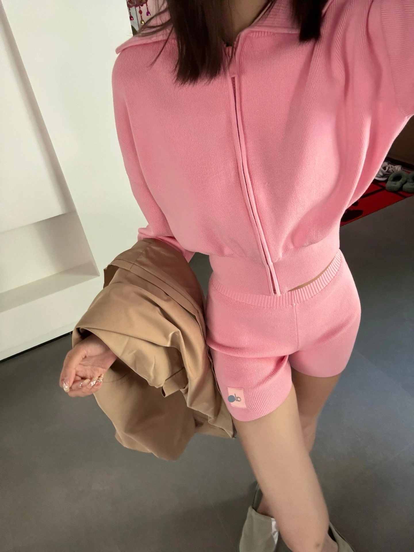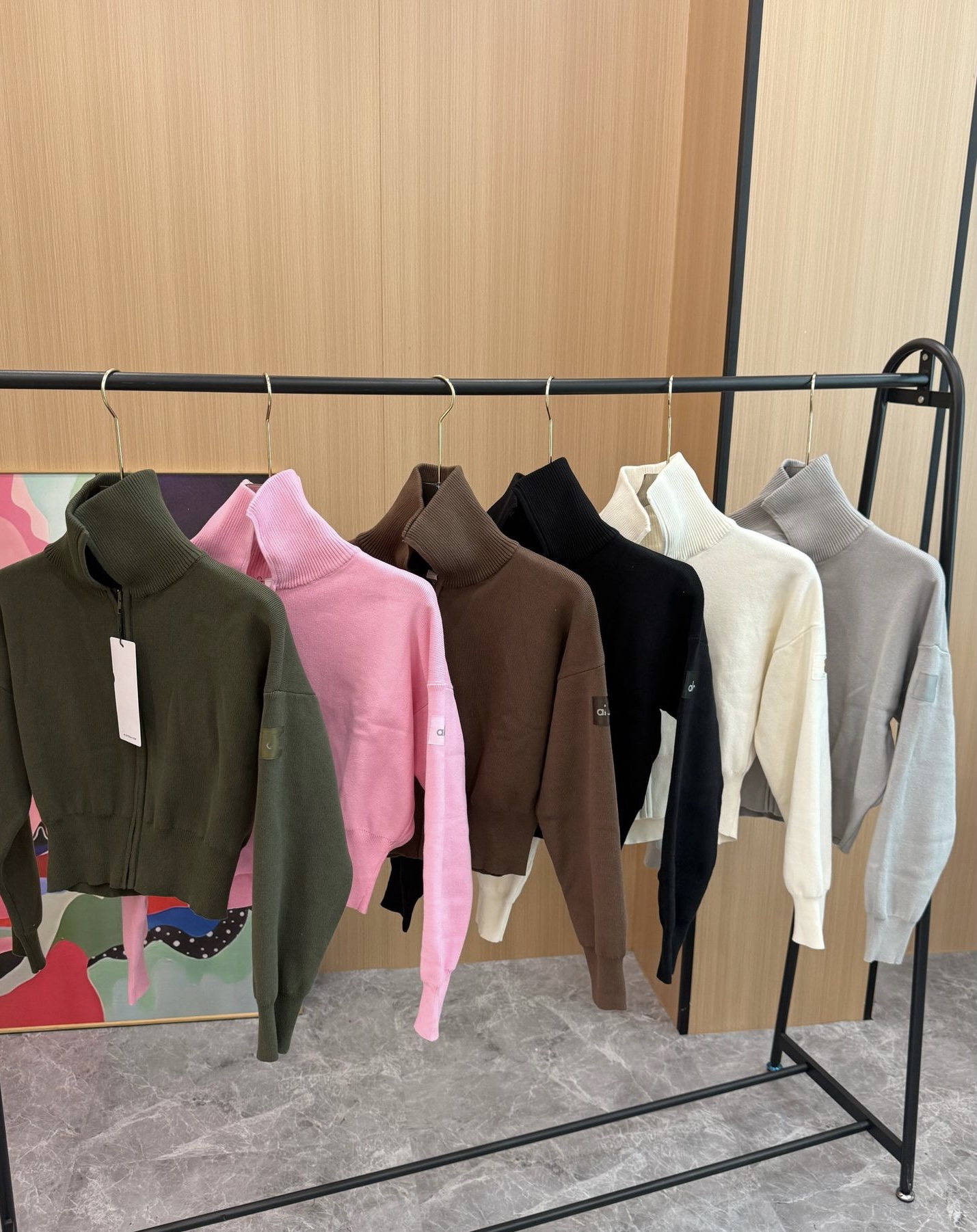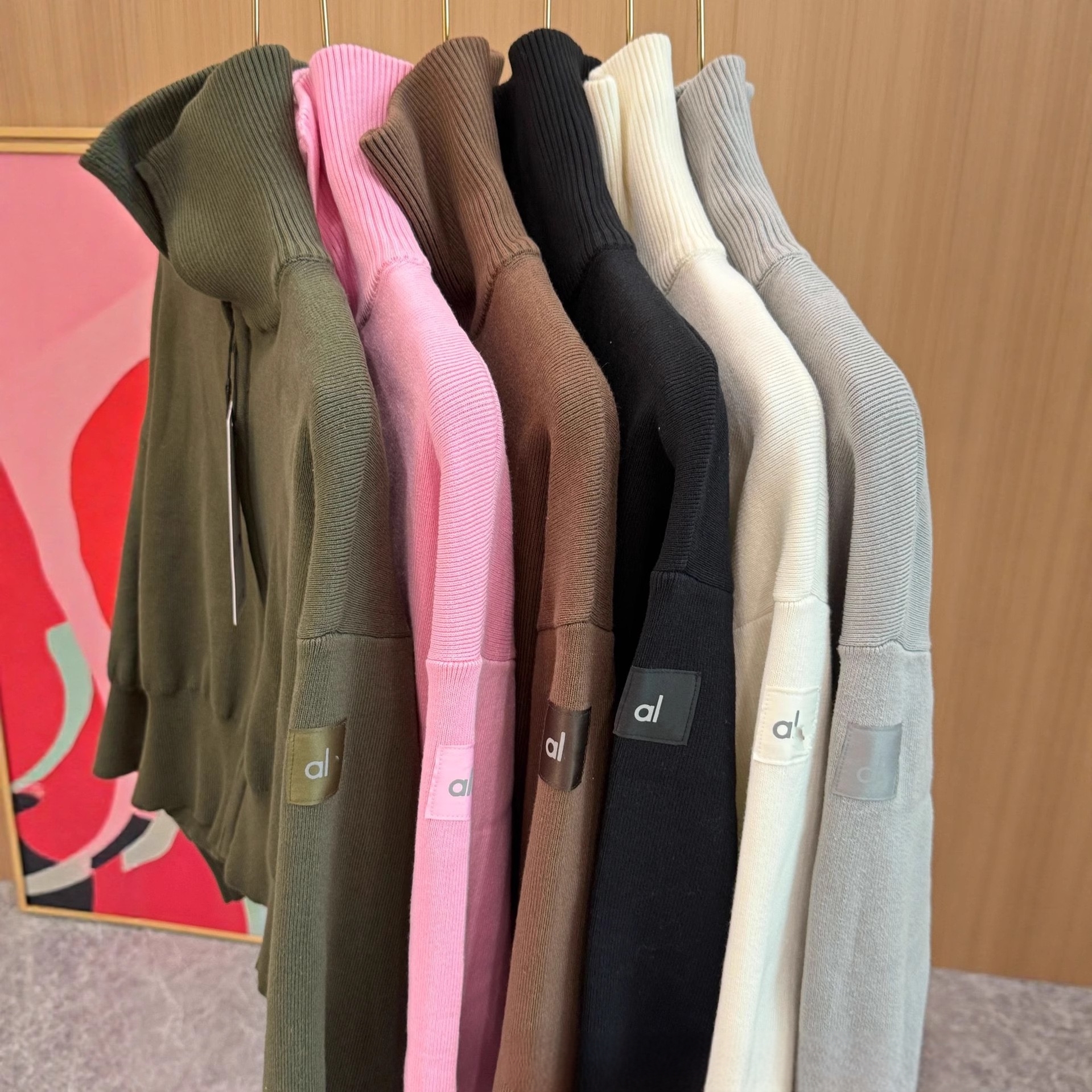 High-End Original Alo New Women's Zip-Up Cardigan Jacket, Knitted Solid Color Loose Casual Short Sweatshirt for Women