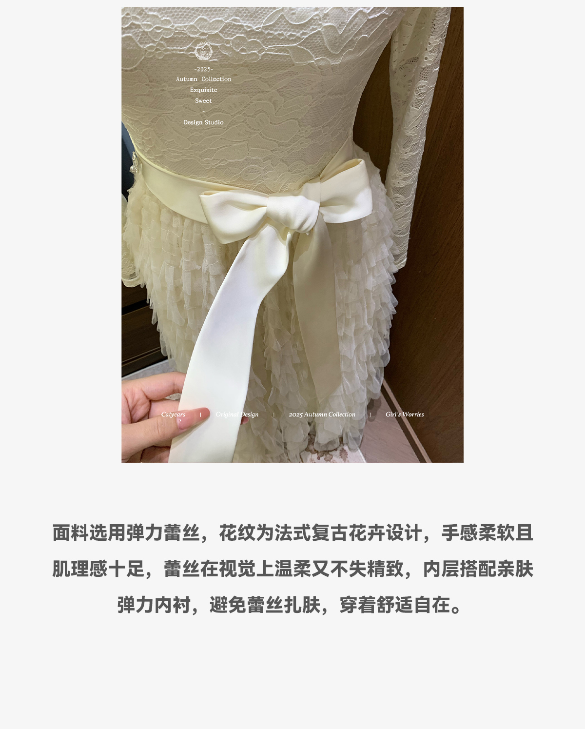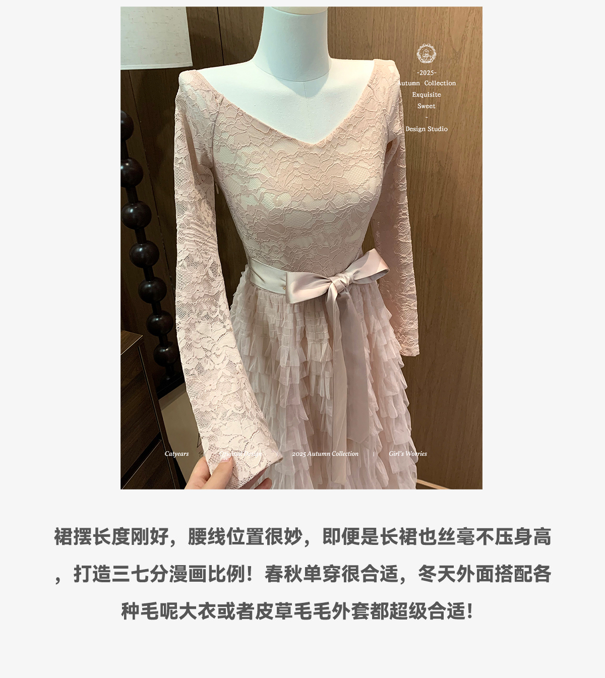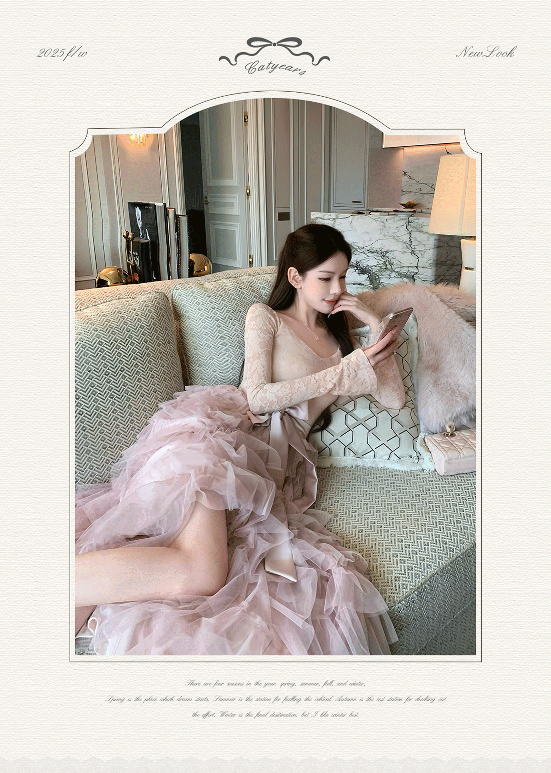 Catyears Year of the Cat Pink Lychee Dance~ Vintage French Lace Fluffy Cake Skirt Dress (Fleece-Lined)