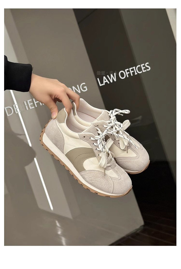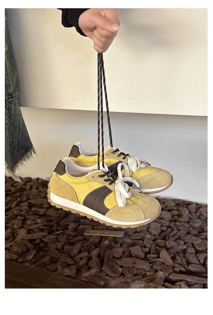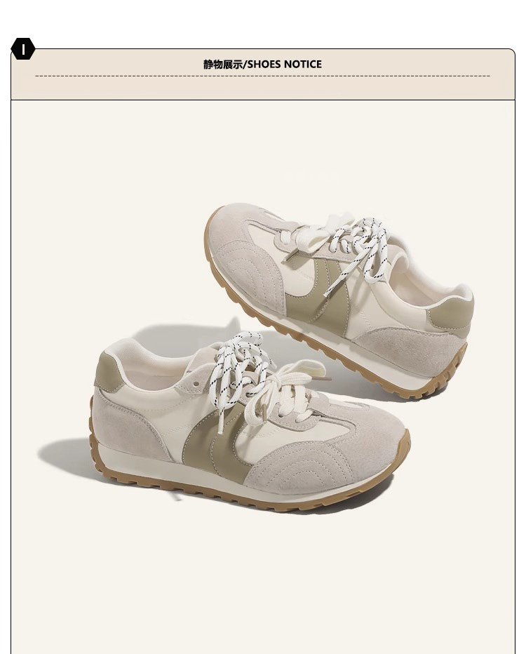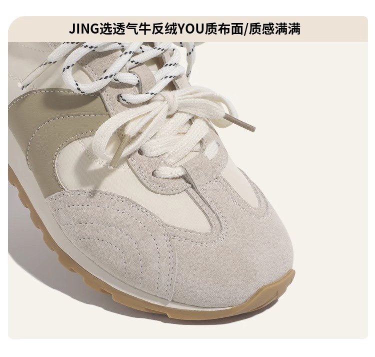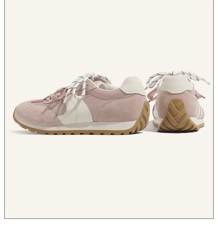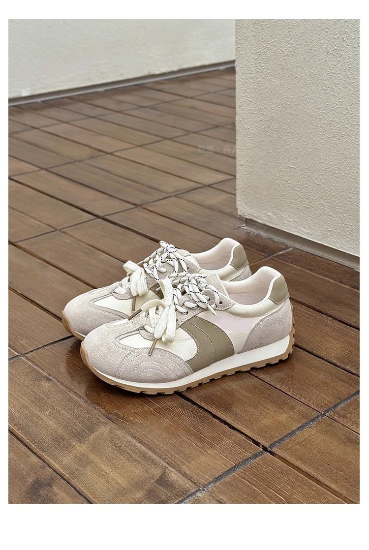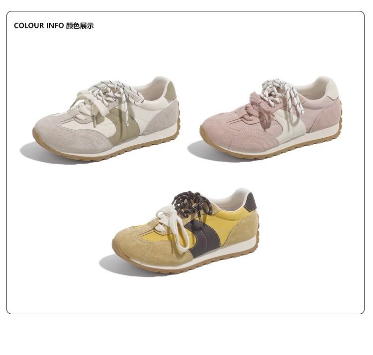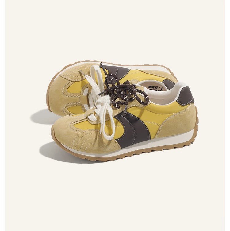 Sanli Genuine Leather Thick-Soled German Training Shoes for Women, 2025 Spring and Autumn New Lace-Up Sports Casual Shoes, Versatile Color-Blocked Sneakers