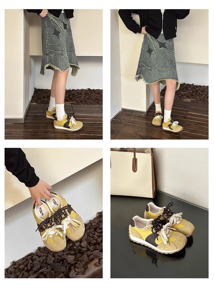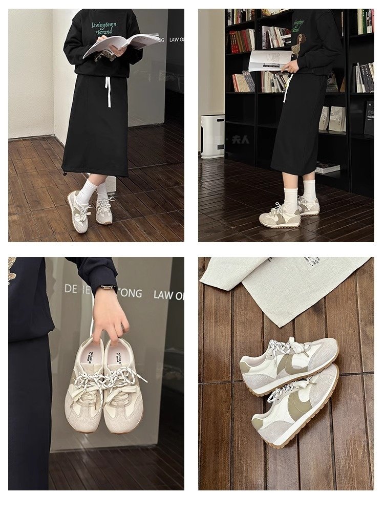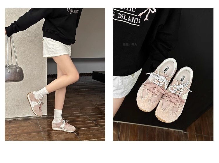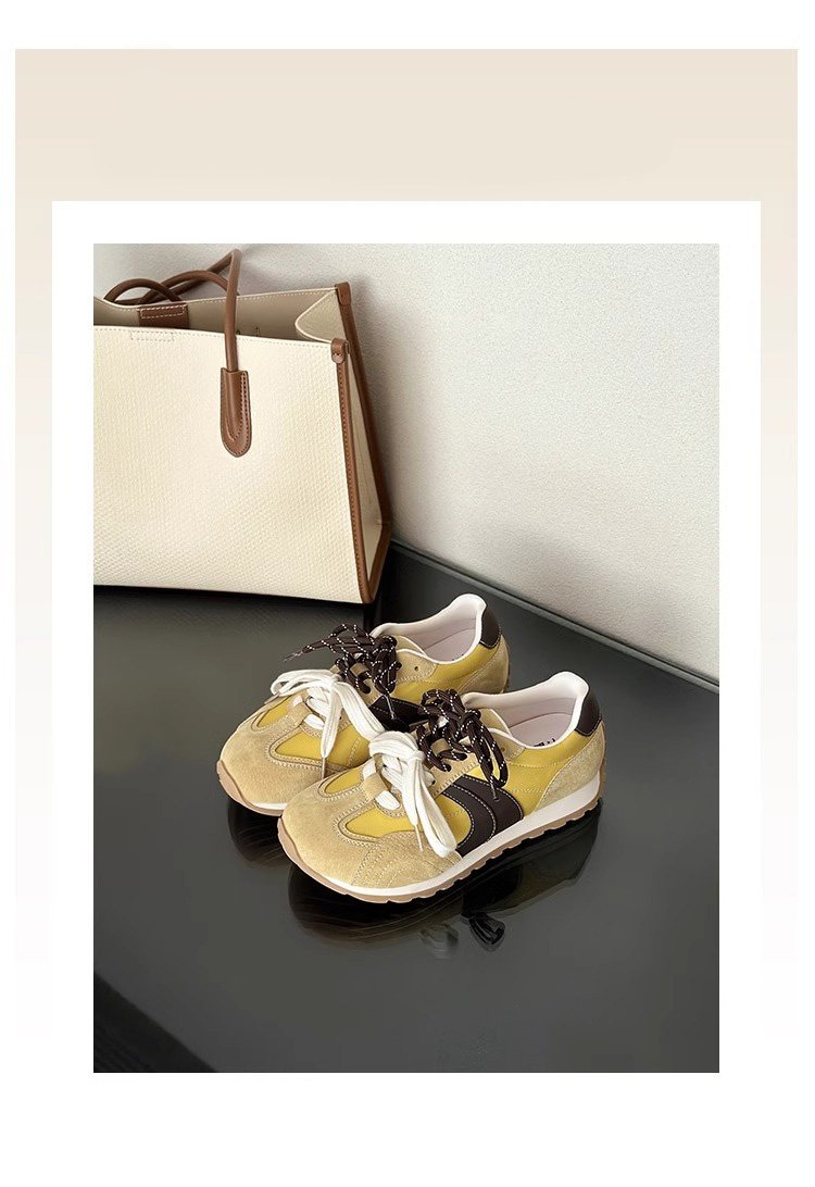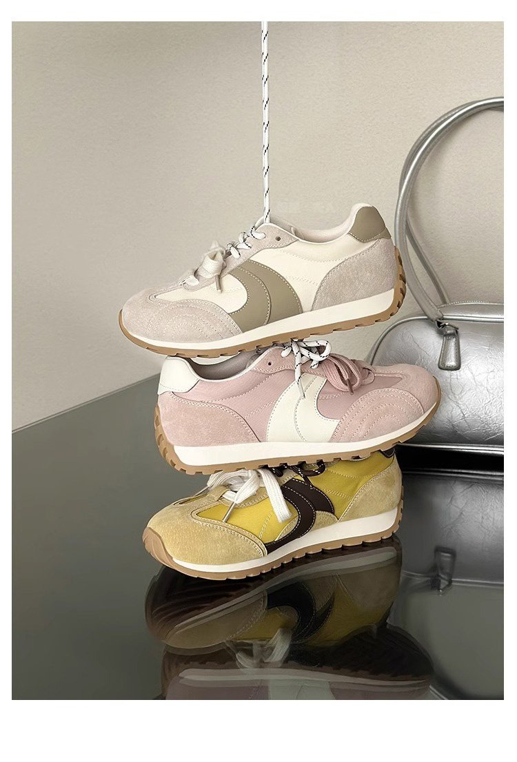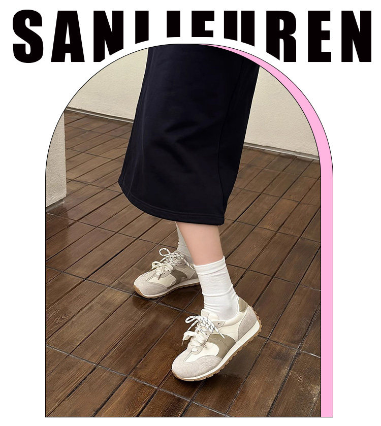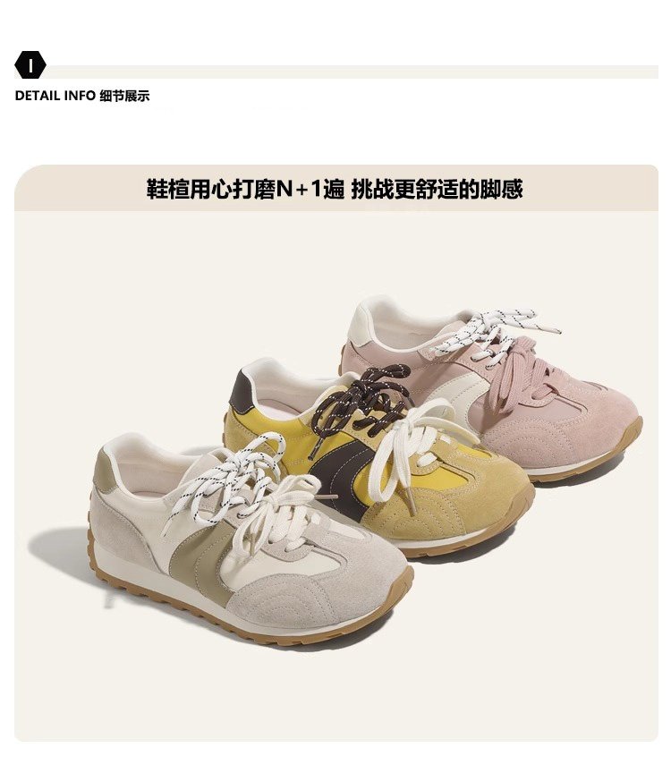 Sanli Genuine Leather Thick-Soled German Training Shoes for Women, 2025 Spring and Autumn New Lace-Up Sports Casual Shoes, Versatile Color-Blocked Sneakers