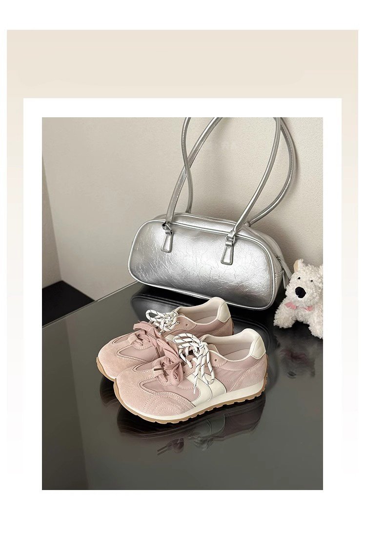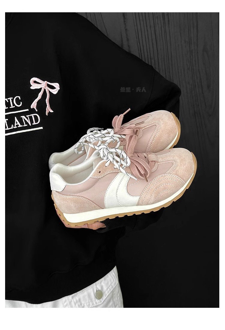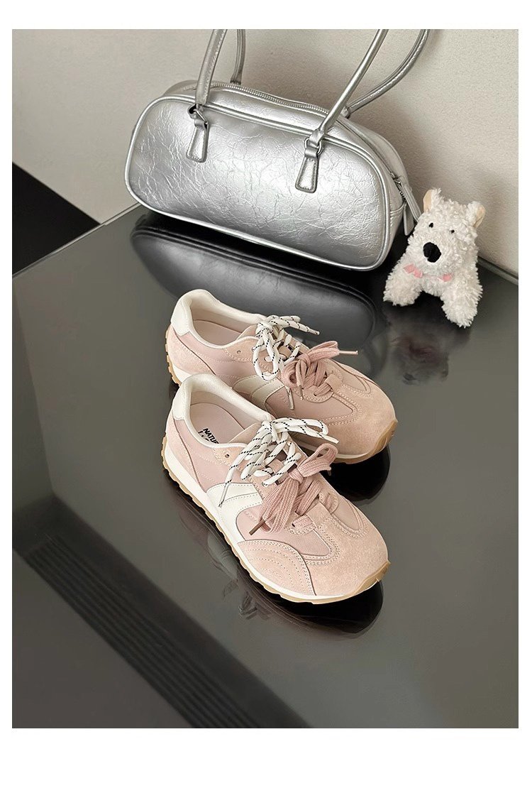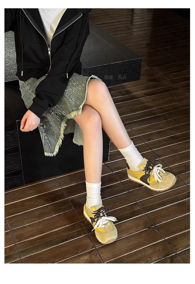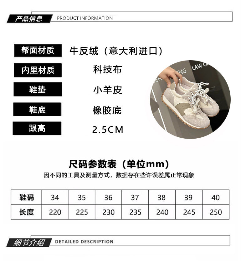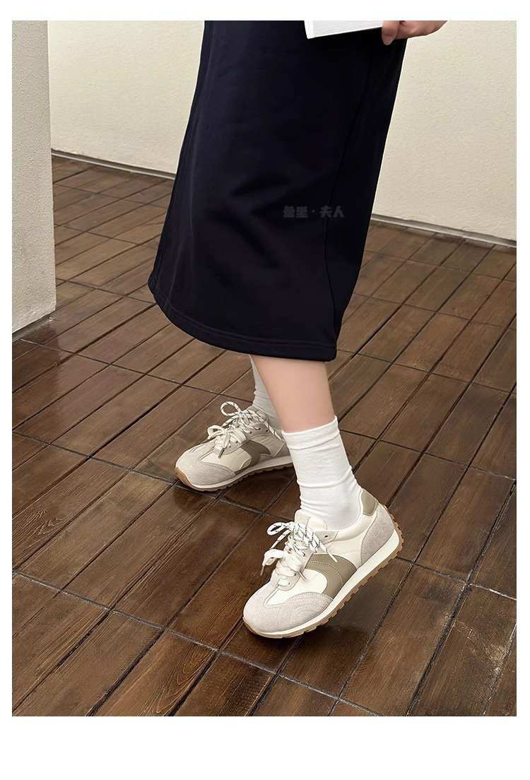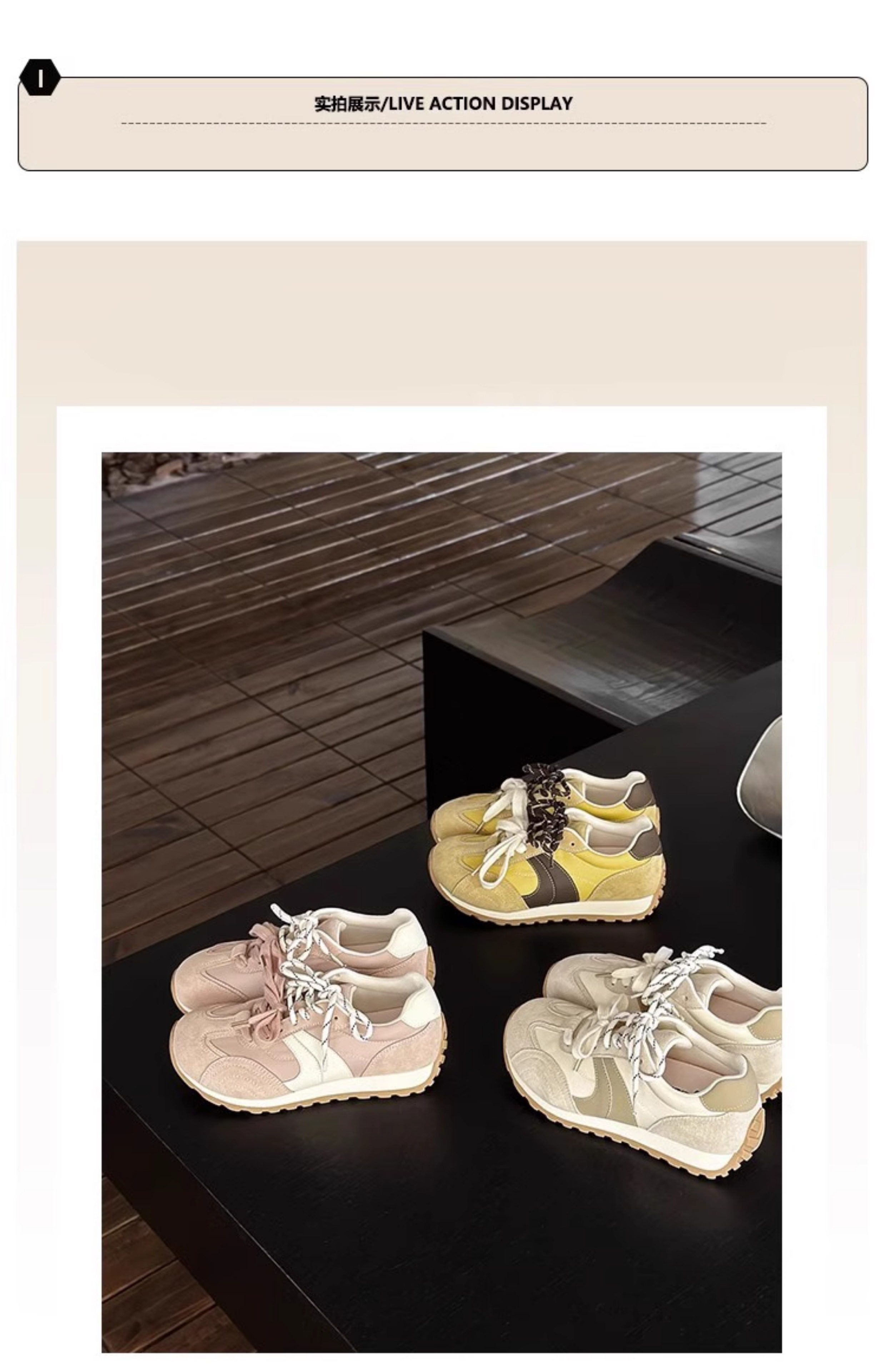 Sanli Genuine Leather Thick-Soled German Training Shoes for Women, 2025 Spring and Autumn New Lace-Up Sports Casual Shoes, Versatile Color-Blocked Sneakers