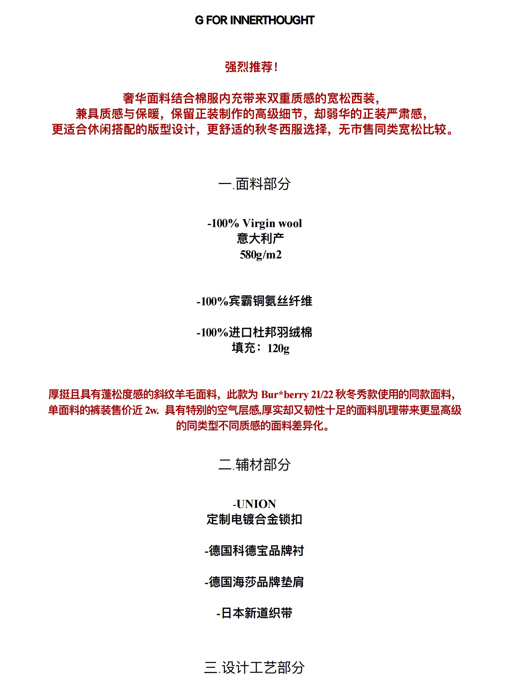 G for Inner Thought | Italian Twill Wool 580g Loose-Fitting Suit Cotton Jacket for Men