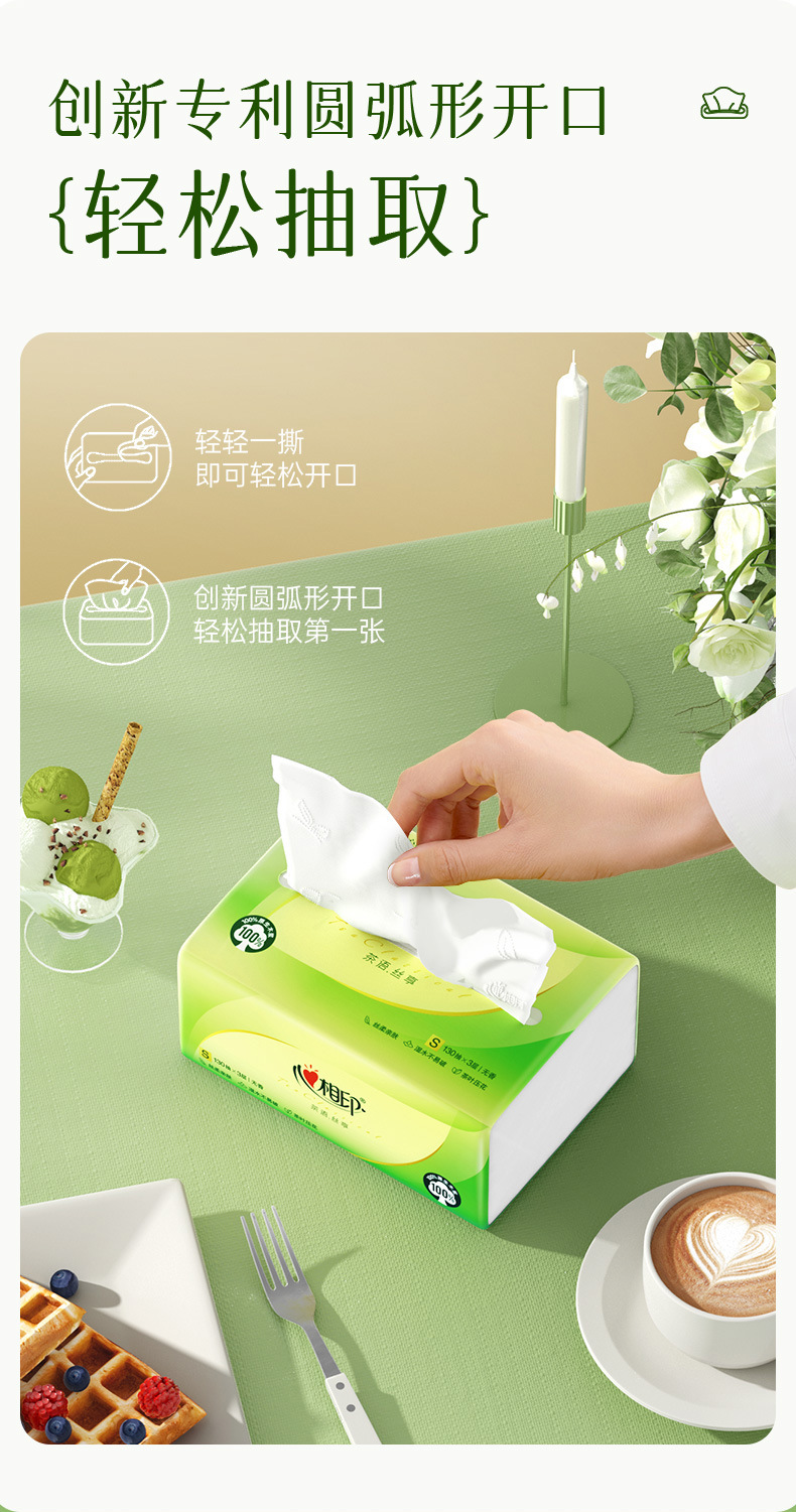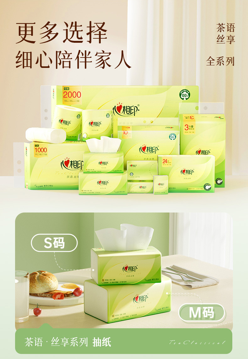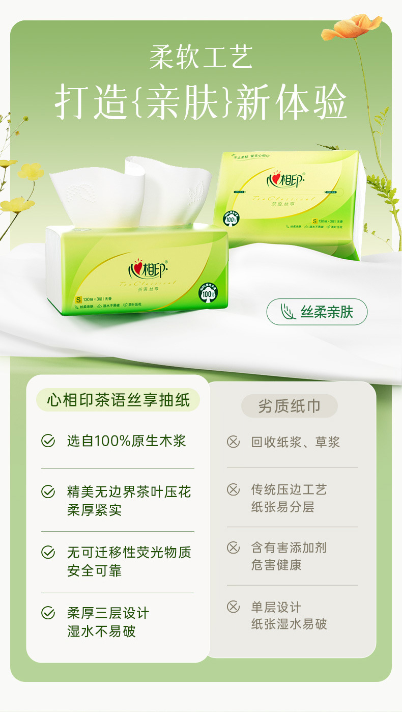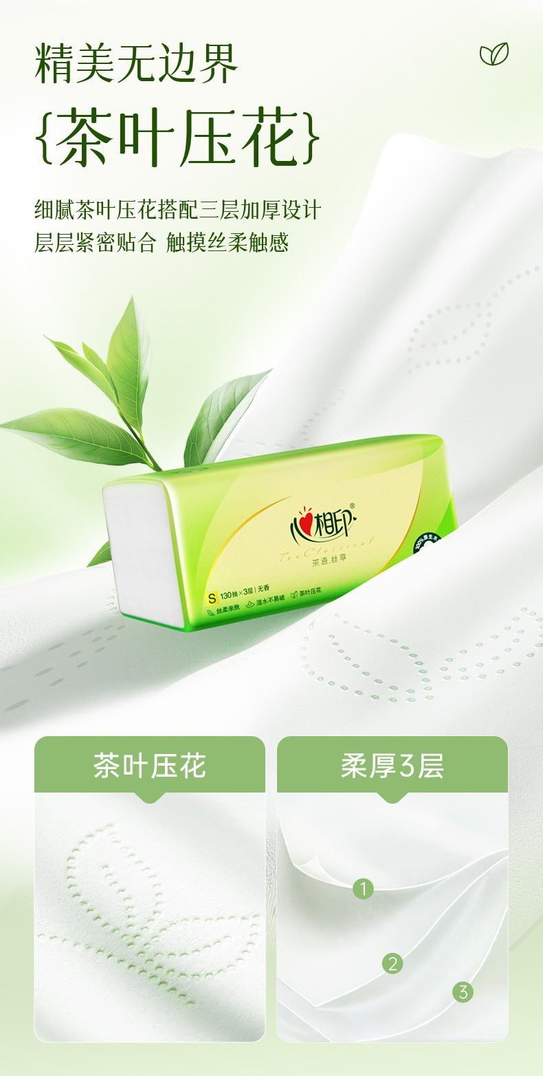 Xinxiangyin Tissue Paper, Tea-Themed Tissues, 130 Sheets, Household Tissue, Three-Layer Thickened, Whole Box of Tissues