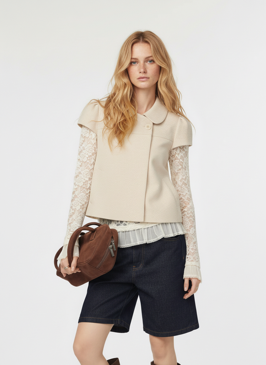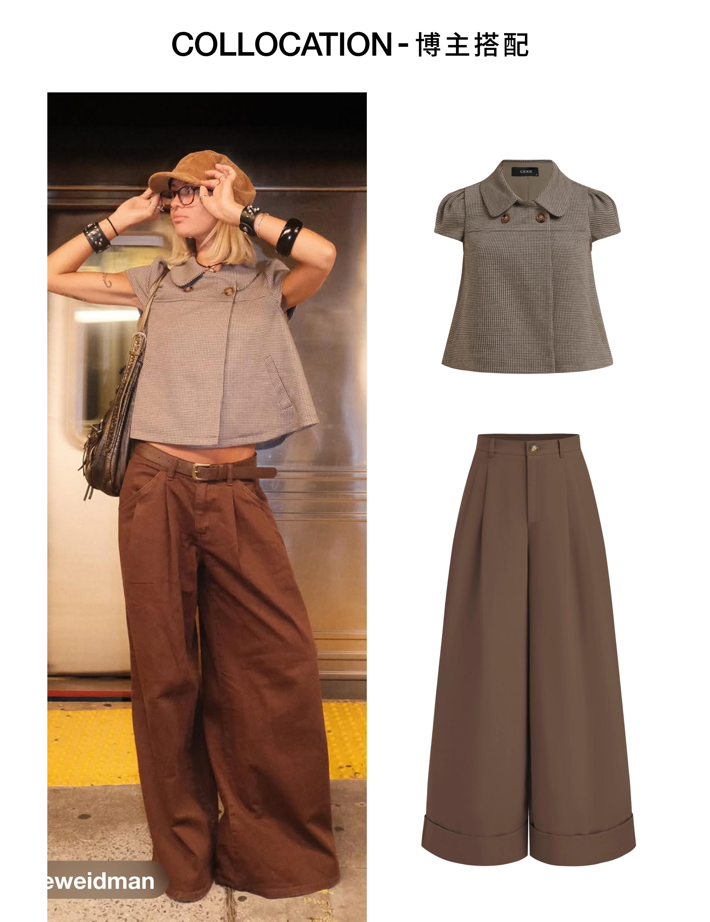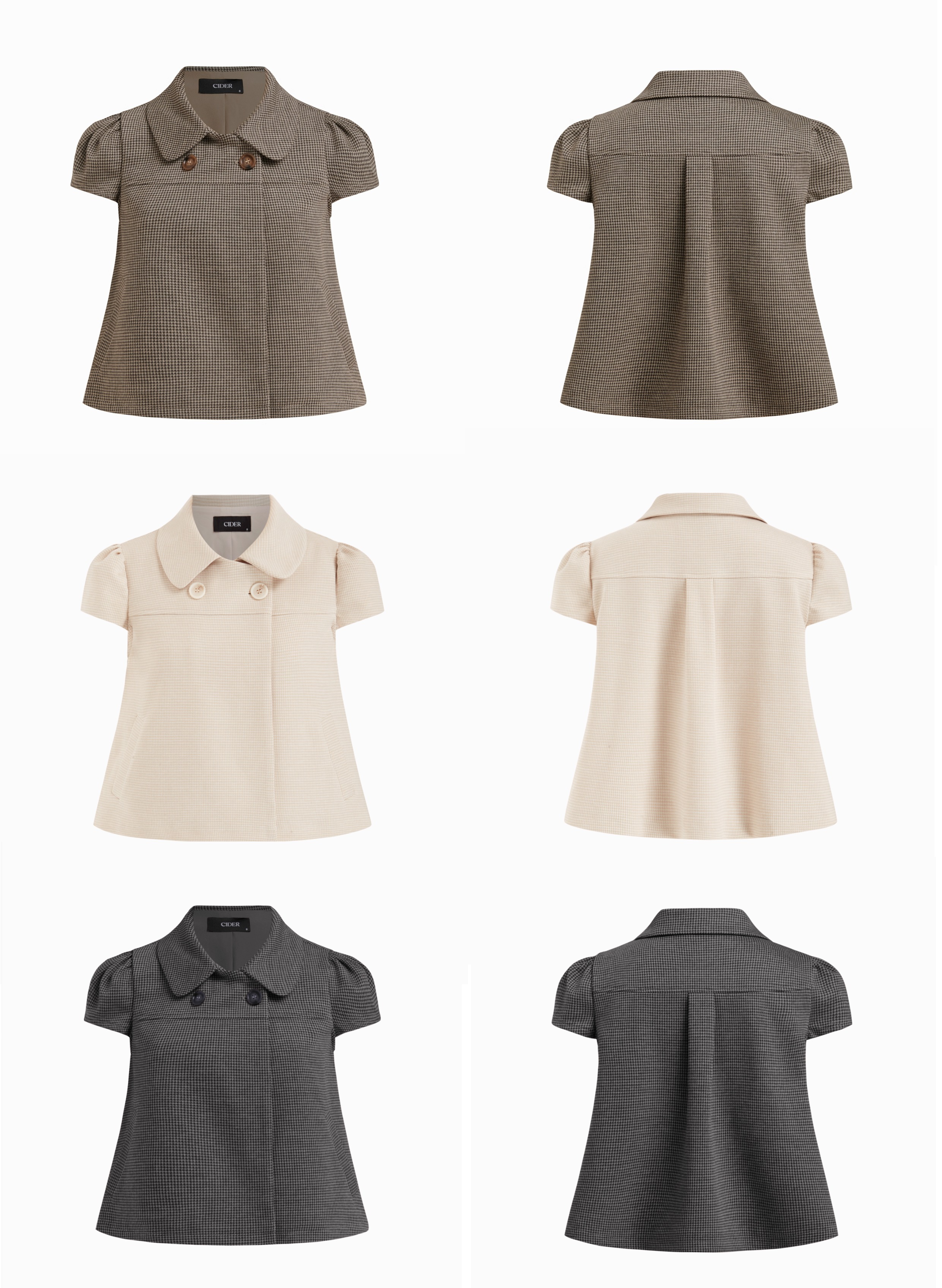 Cider Peter Pan Collar Jacket Plaid Shirt Retro Lapel Plaid Casual Short-Sleeved Top 114740919