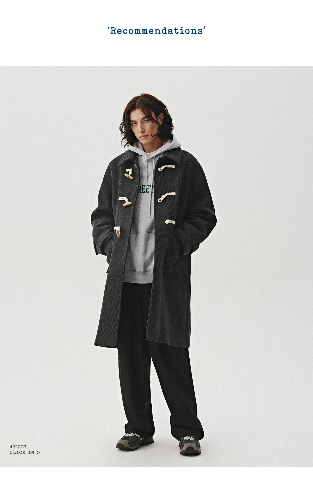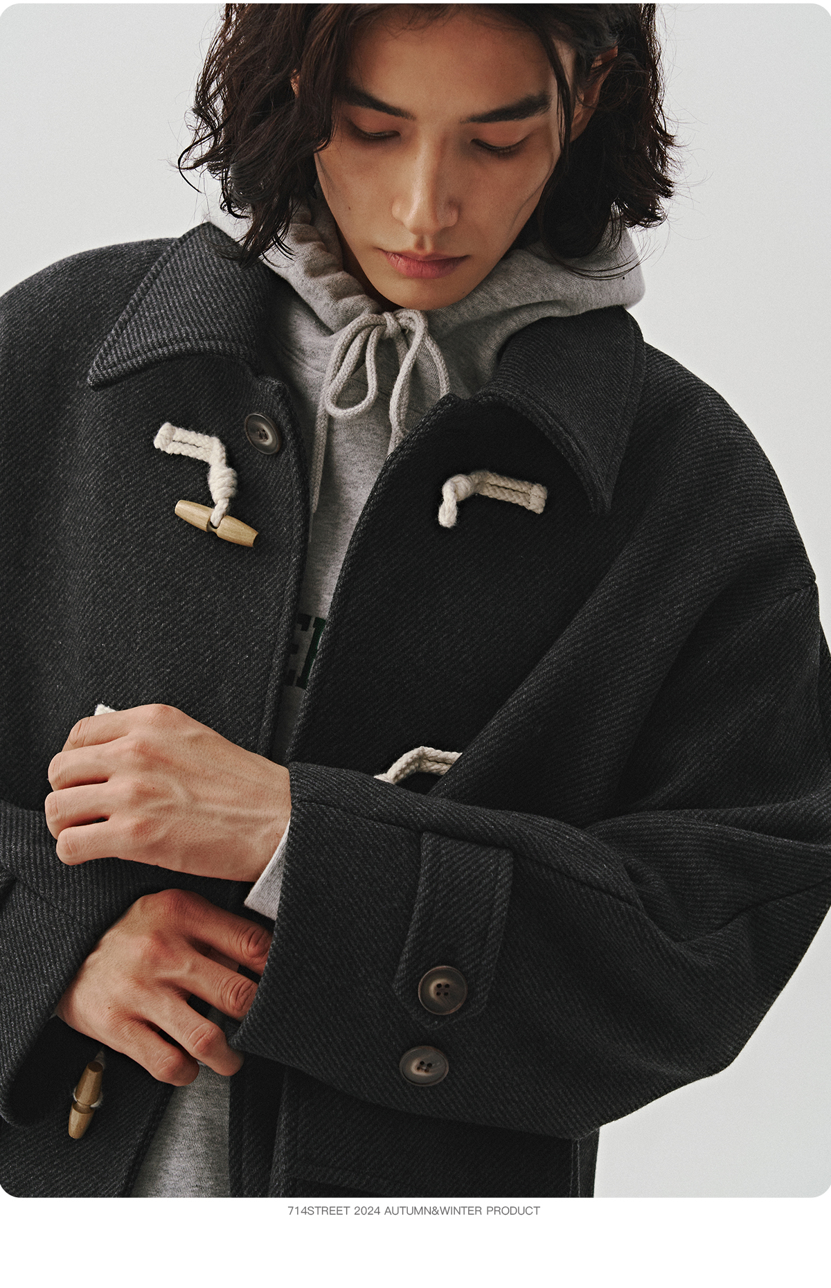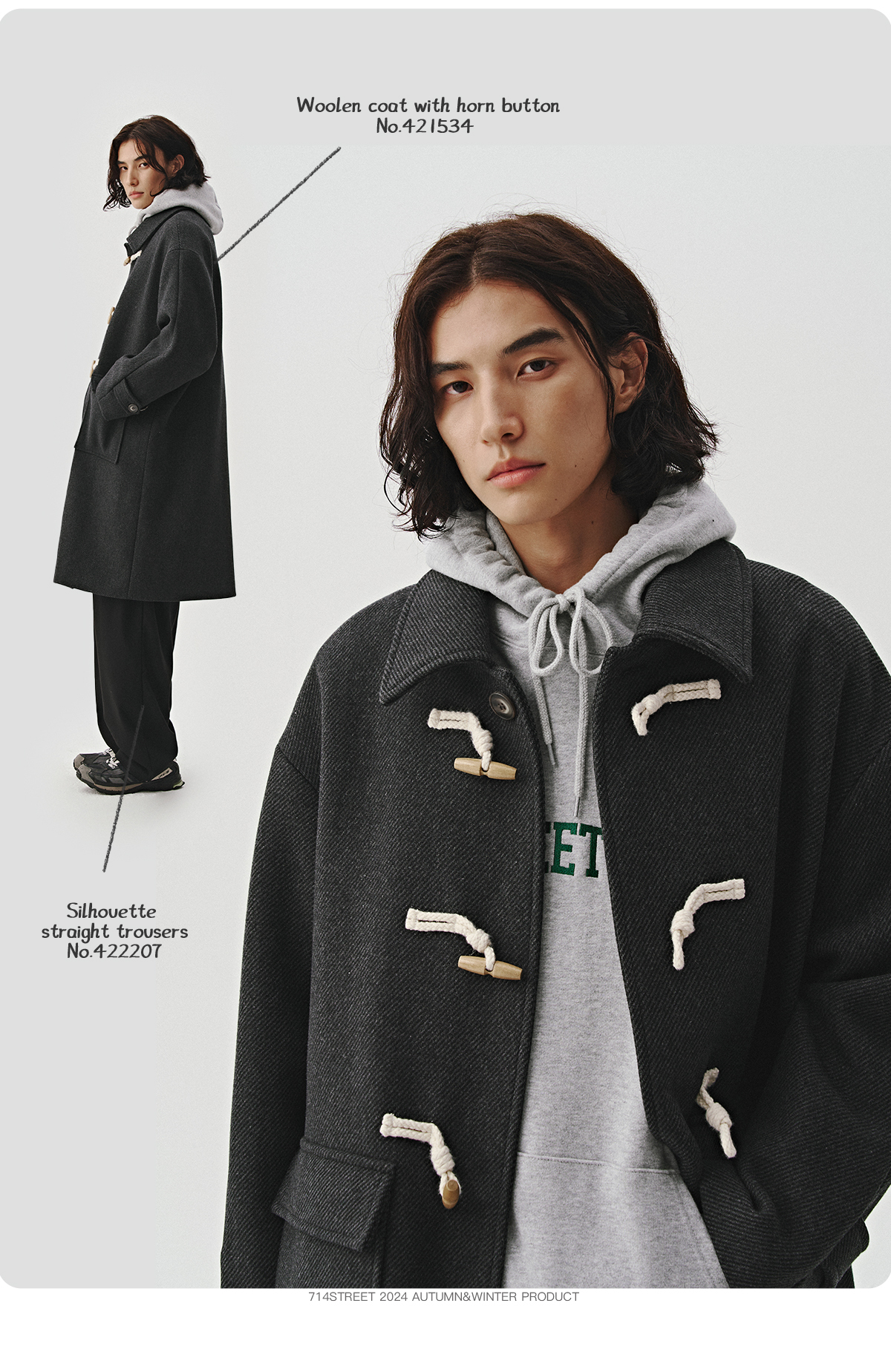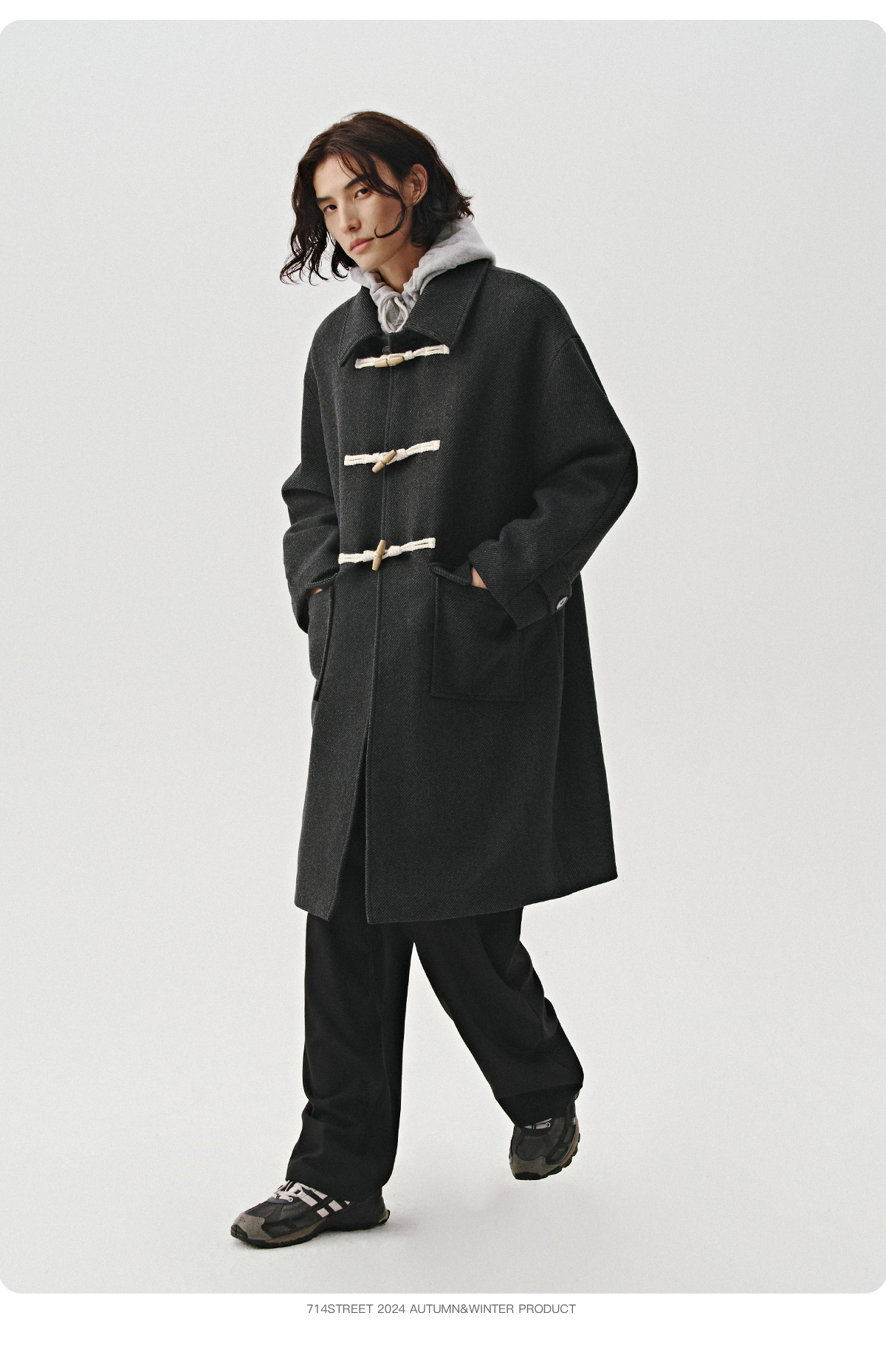 714Street Wool Blend Toggle Button Woolen Coat Men's New Winter Loose Long Woolen Coat