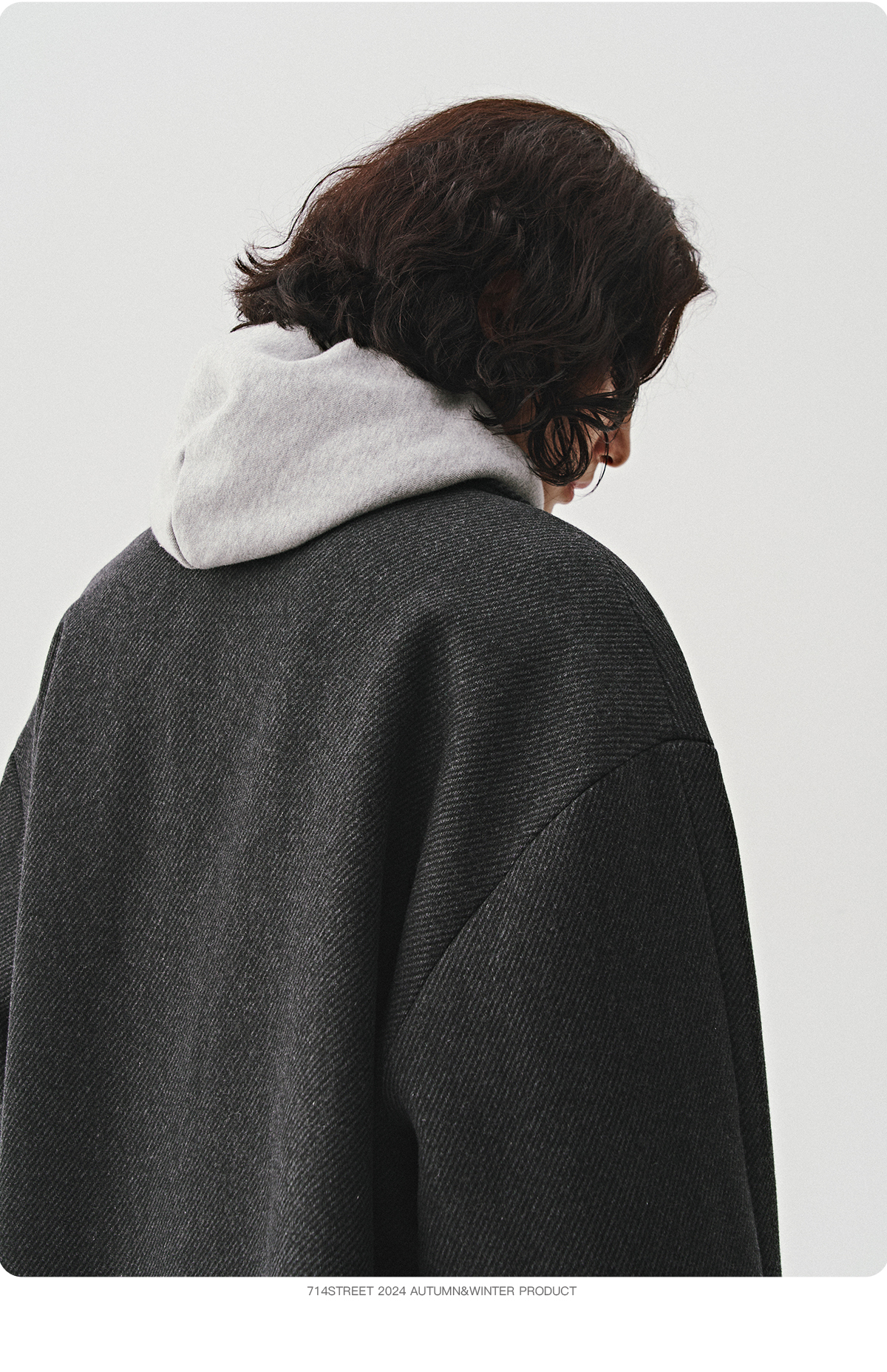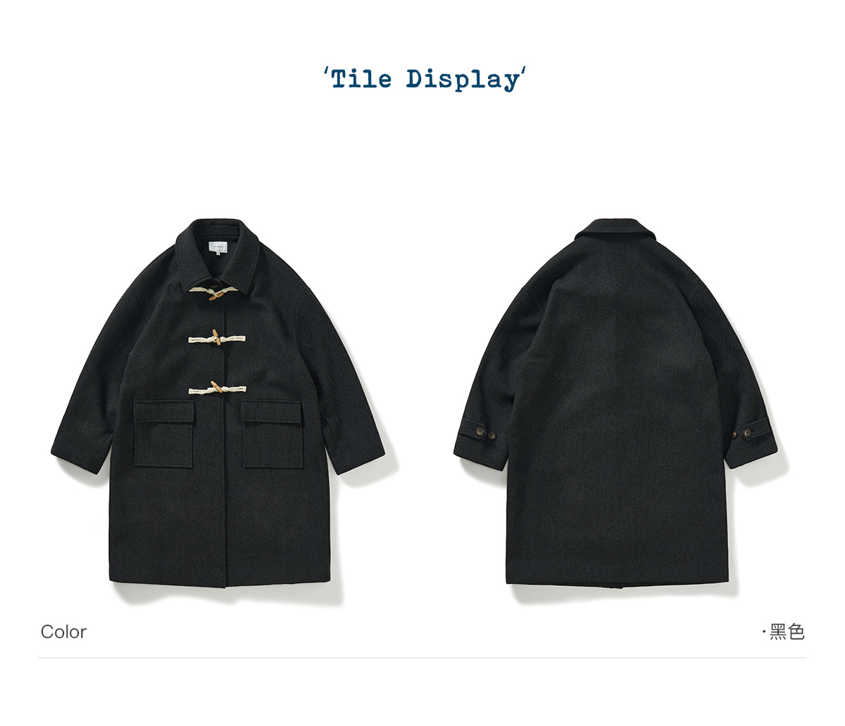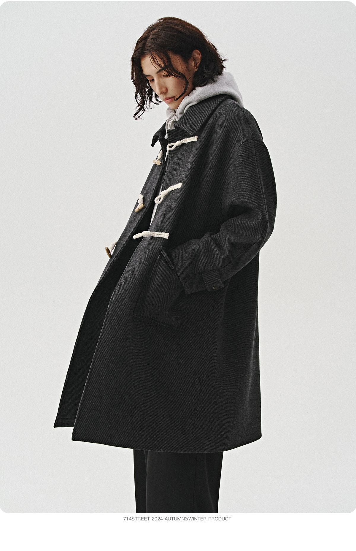 714Street Wool Blend Toggle Button Woolen Coat Men's New Winter Loose Long Woolen Coat