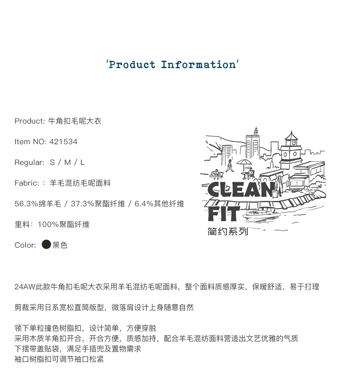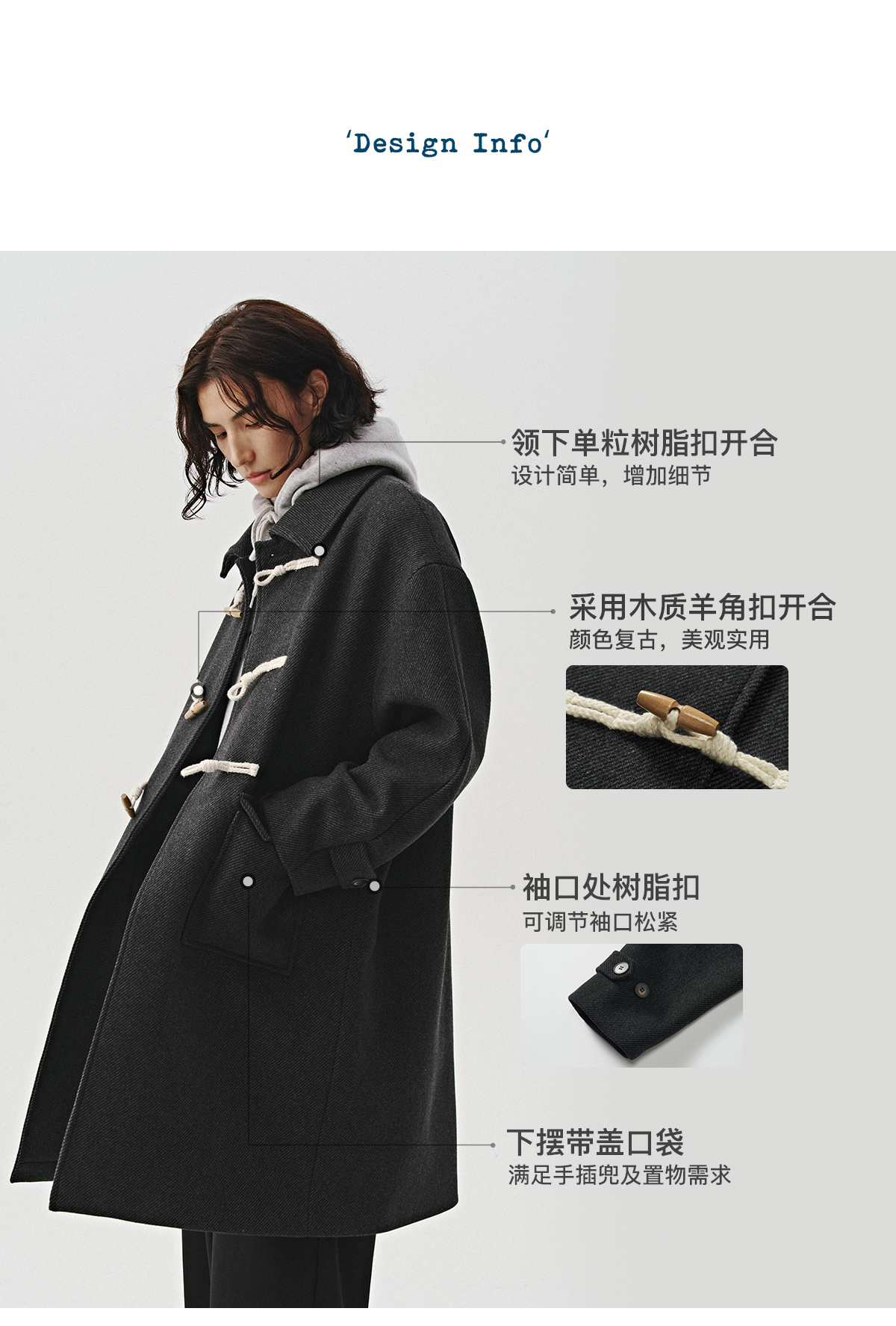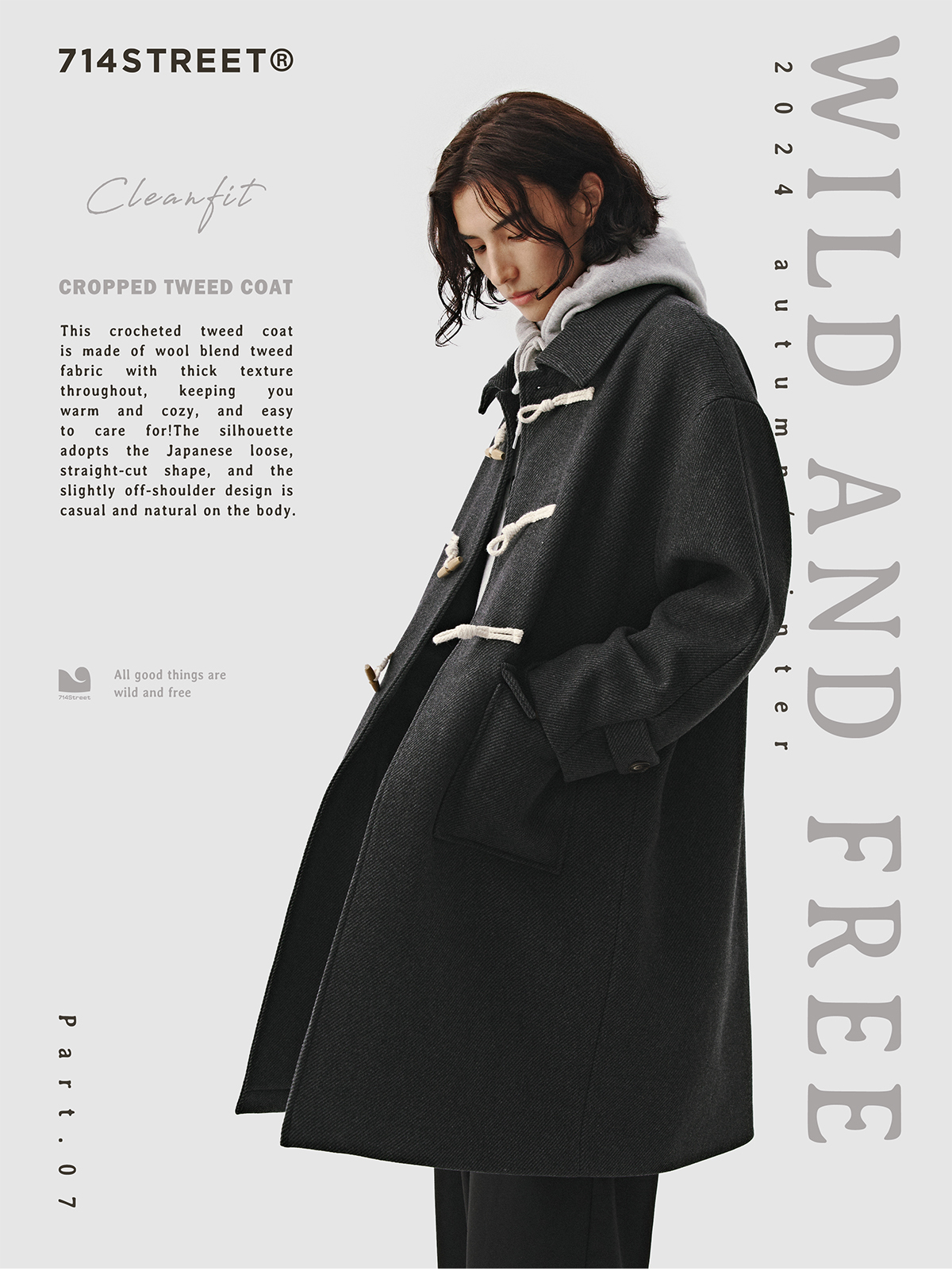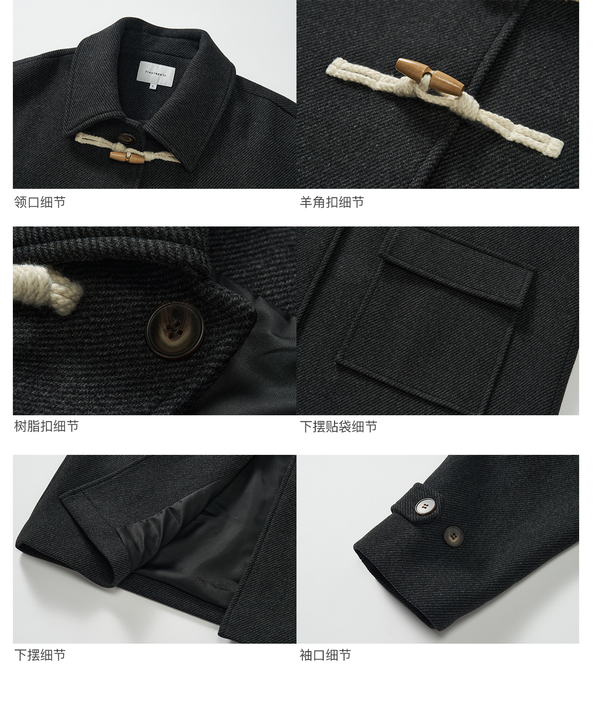 714Street Wool Blend Toggle Button Woolen Coat Men's New Winter Loose Long Woolen Coat