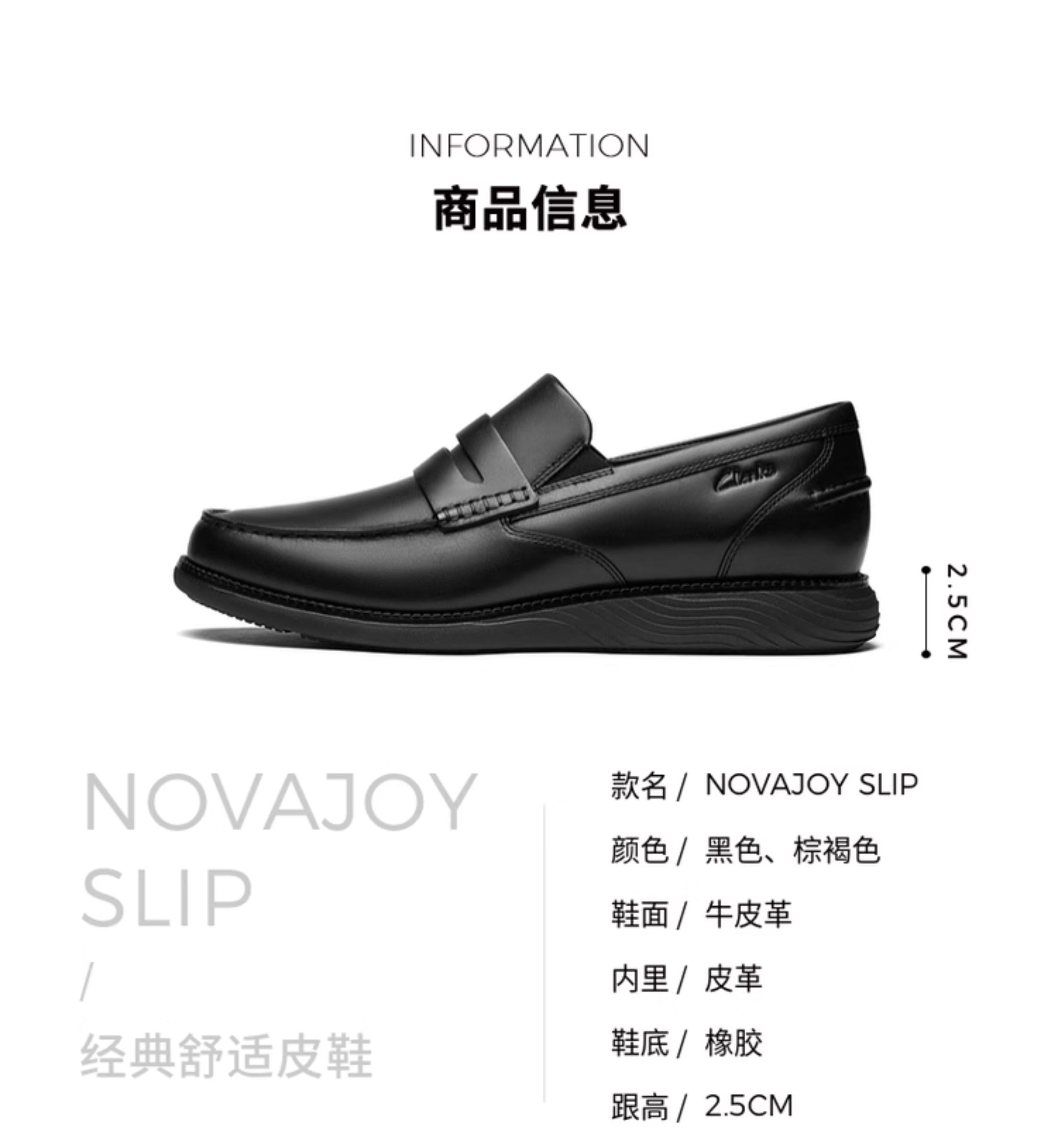 Clarks Novajoy Slip Men's Shoes New Classic Comfortable Slip-On Business Commuting Formal Leather Shoes